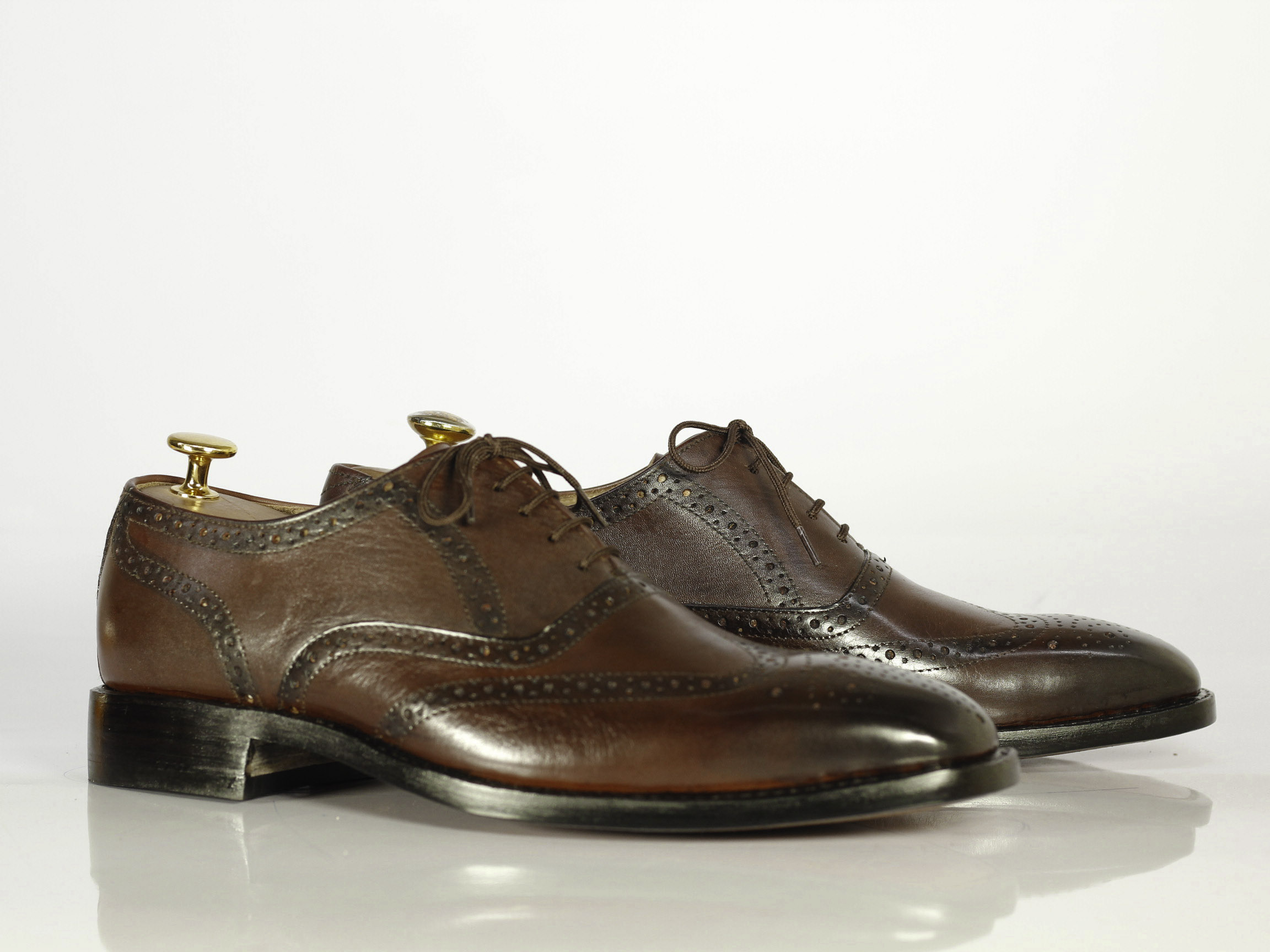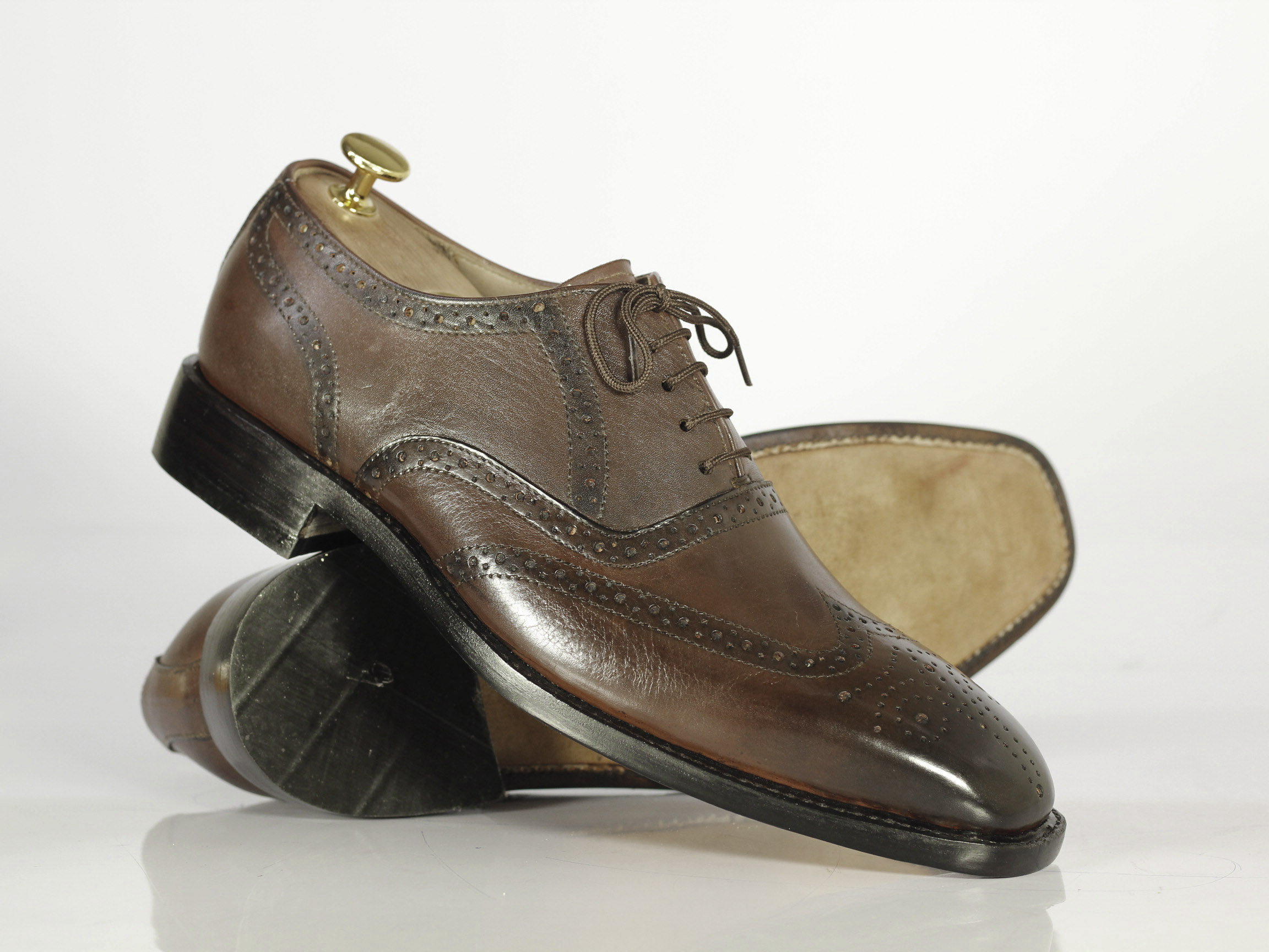 Brown Wing Tip Brogue Lace up Leather Shoes For Men