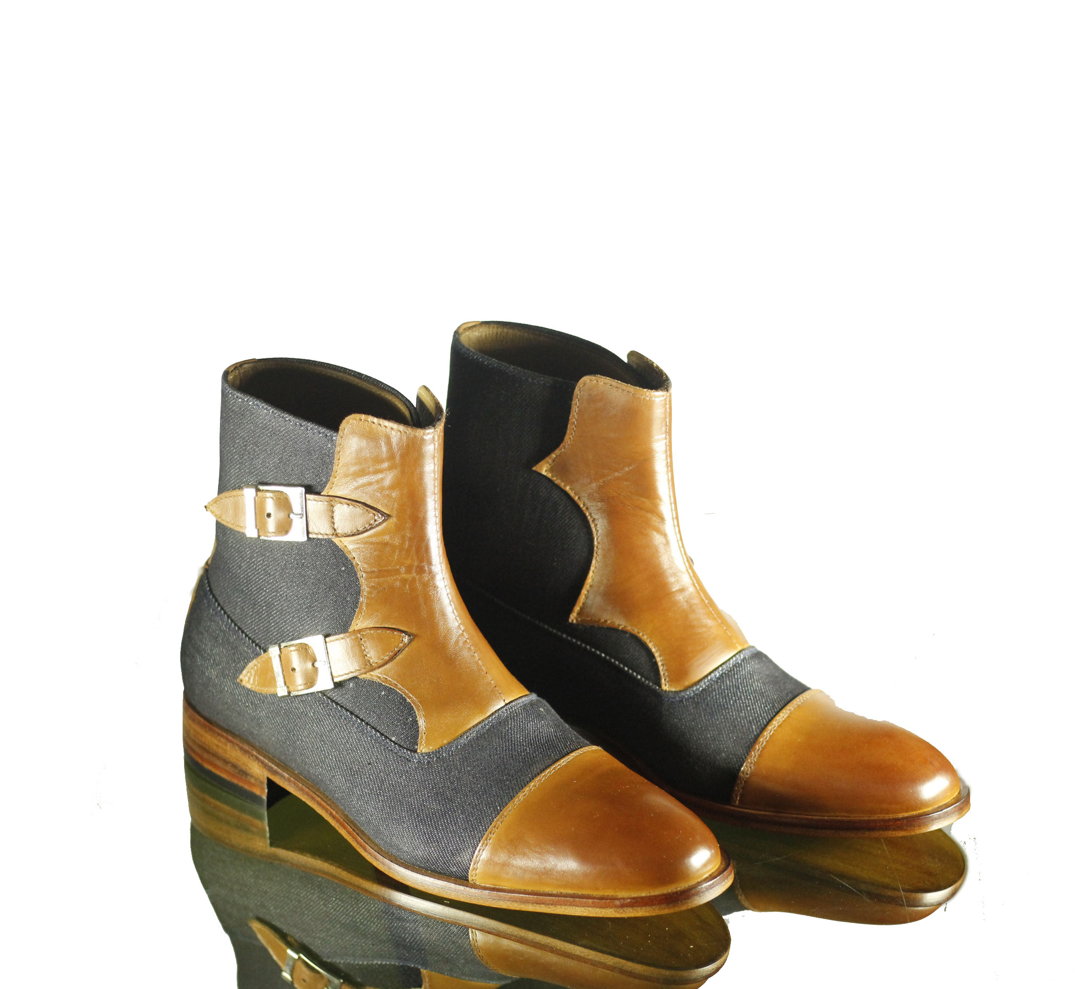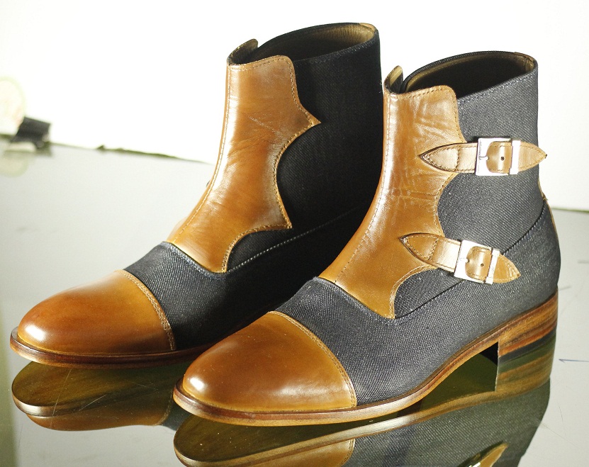 Denim Brown Double Monk Style Leather Men's Boot