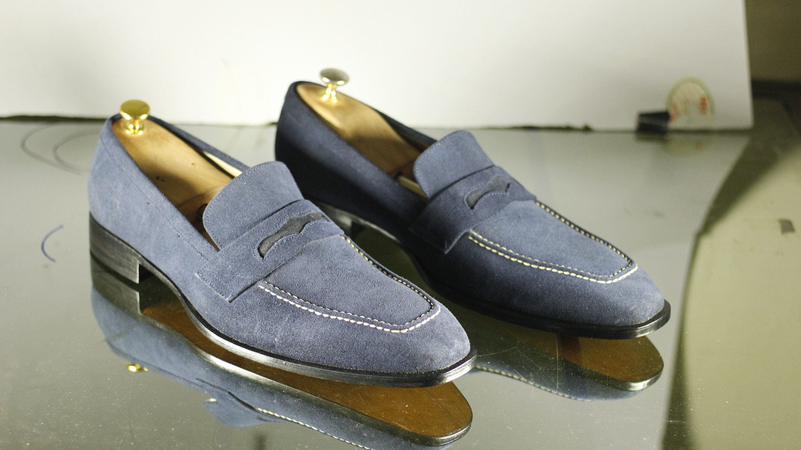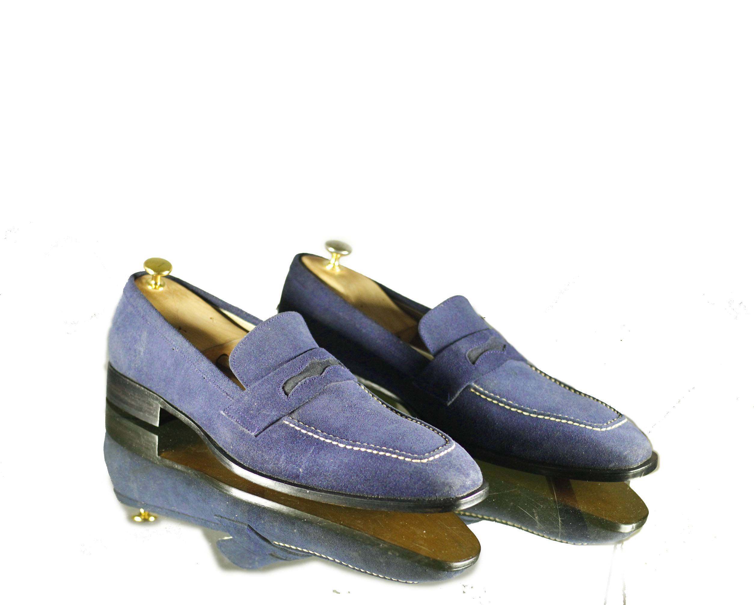Men's Designer Blue Square Toe Penny Suede Leather Loafers
