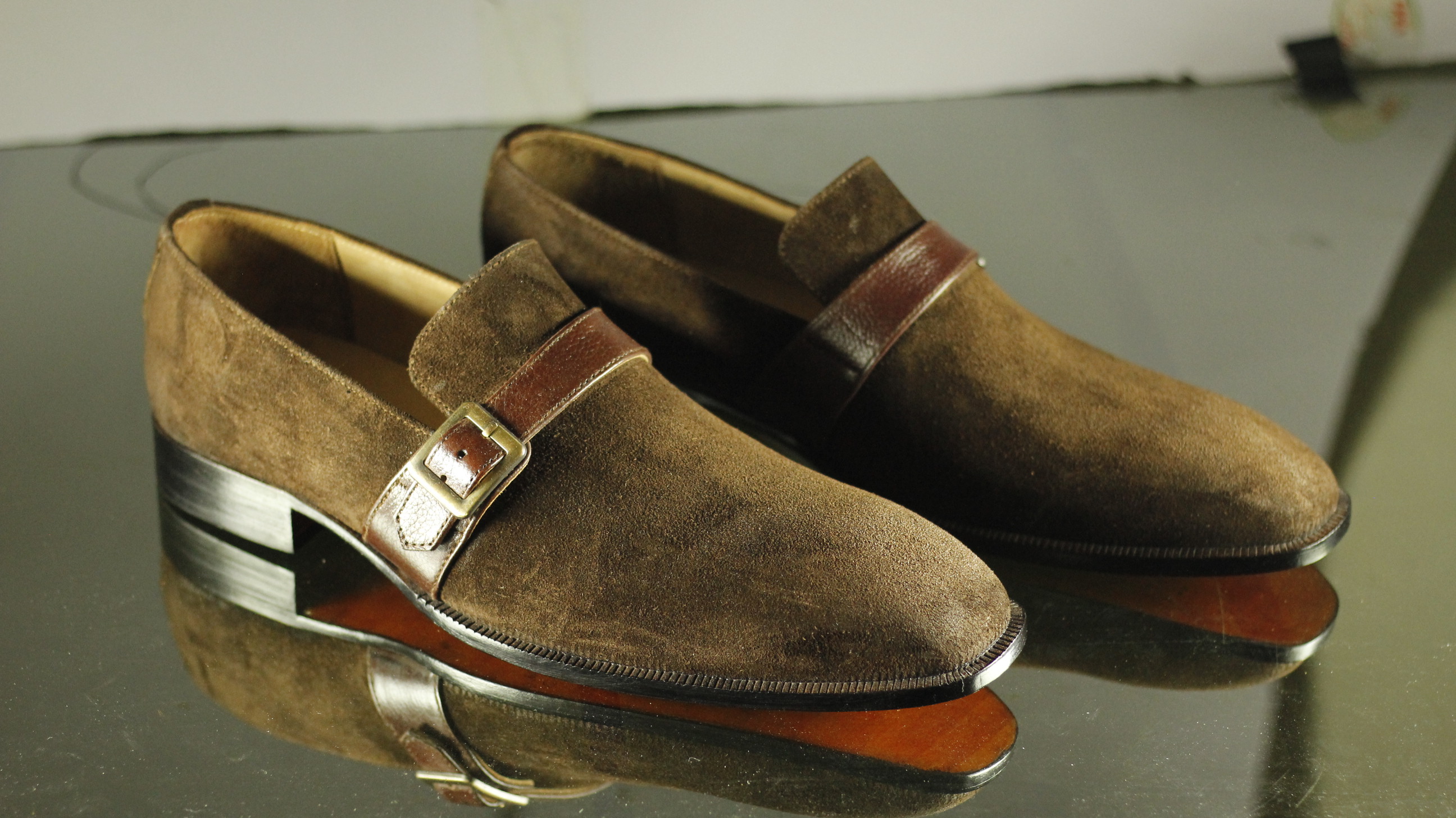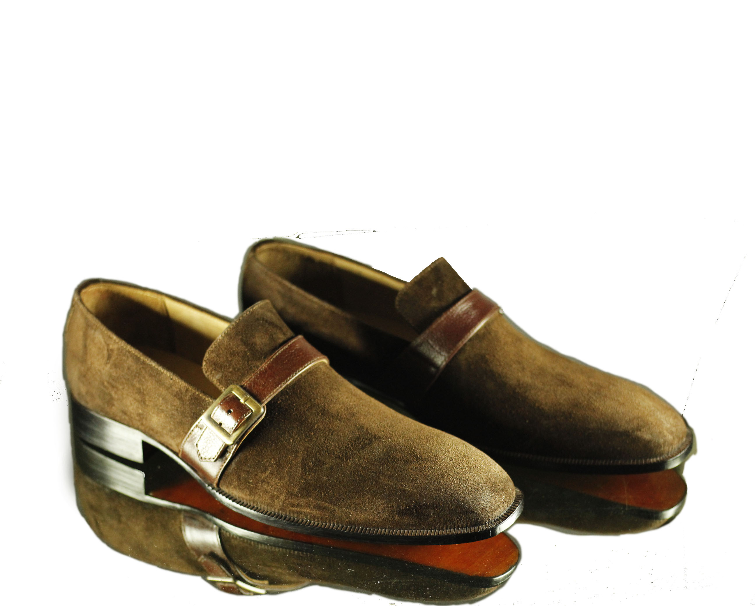 Buckle Strap Brown Suede Leather Slip On Shoes