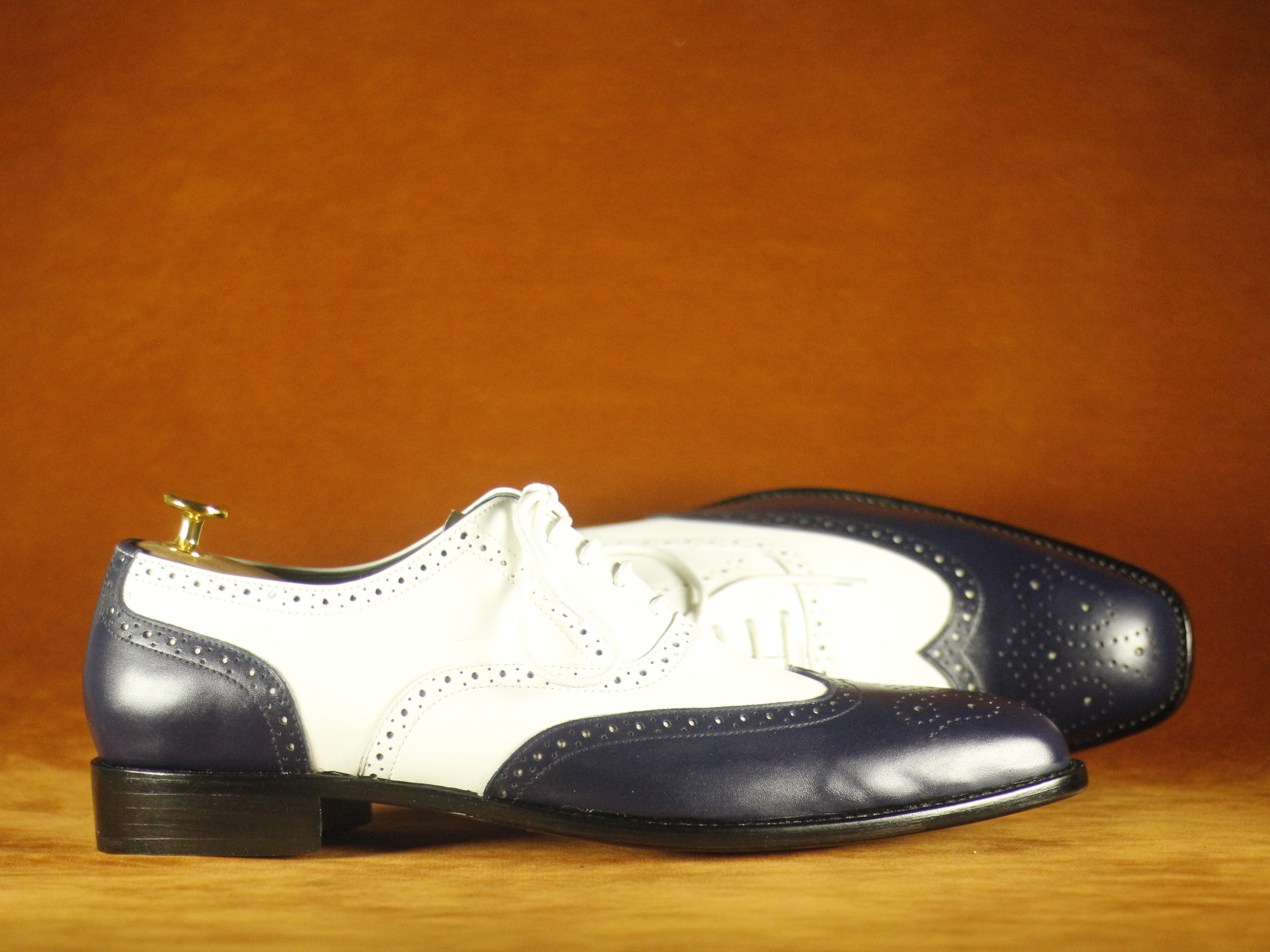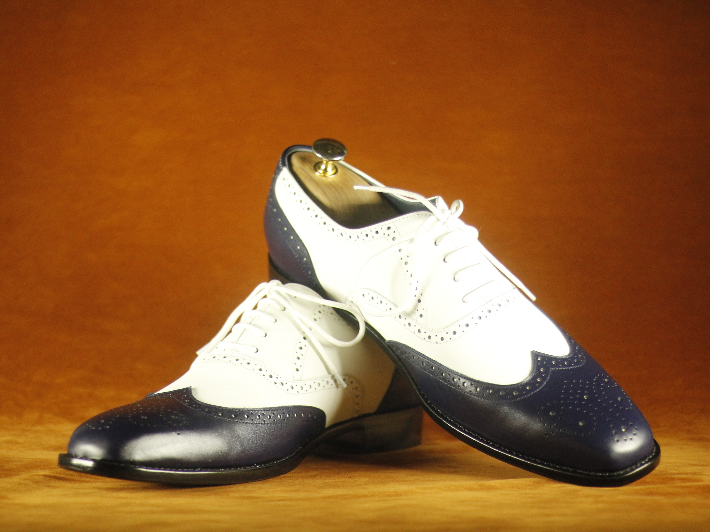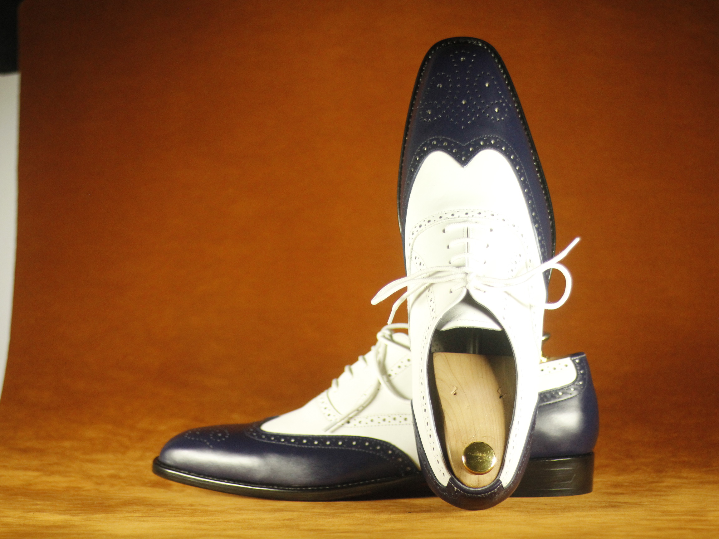Black & White Wing Tip Brogue Leather Shoes For Men