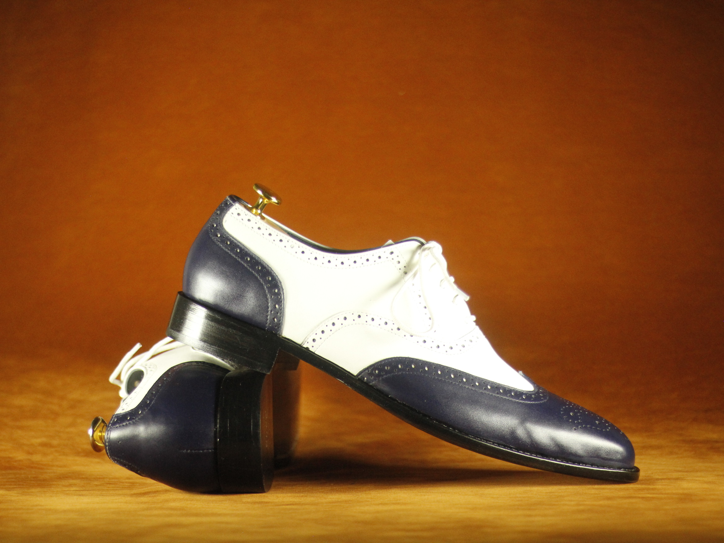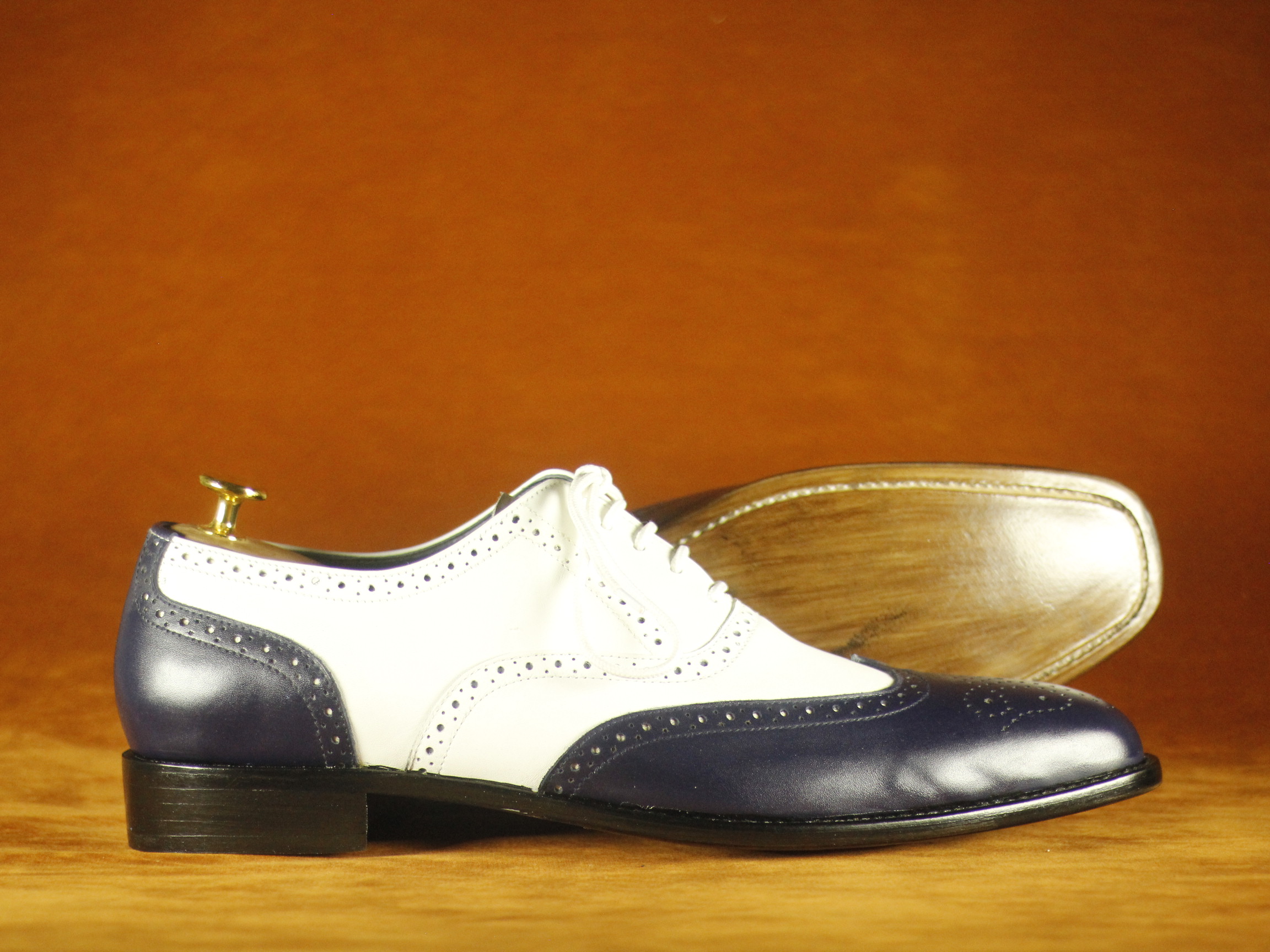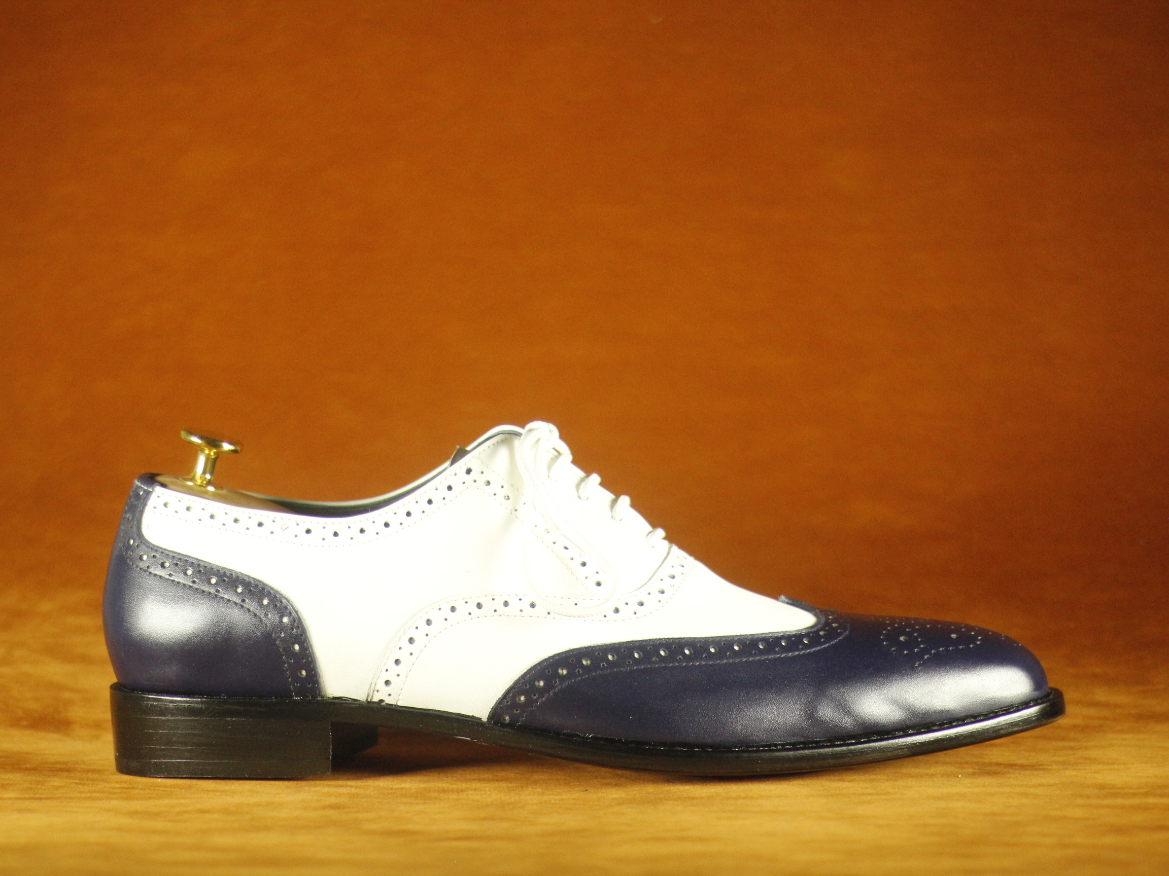Black & White Wing Tip Brogue Leather Shoes For Men