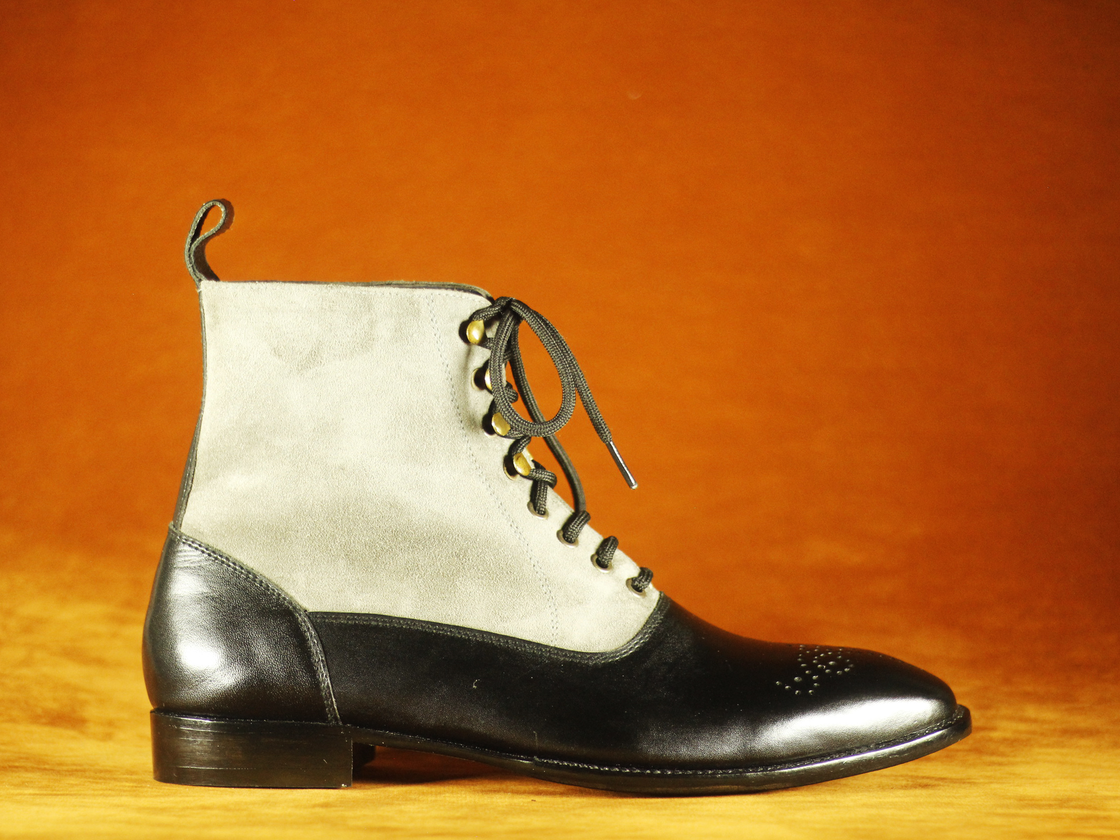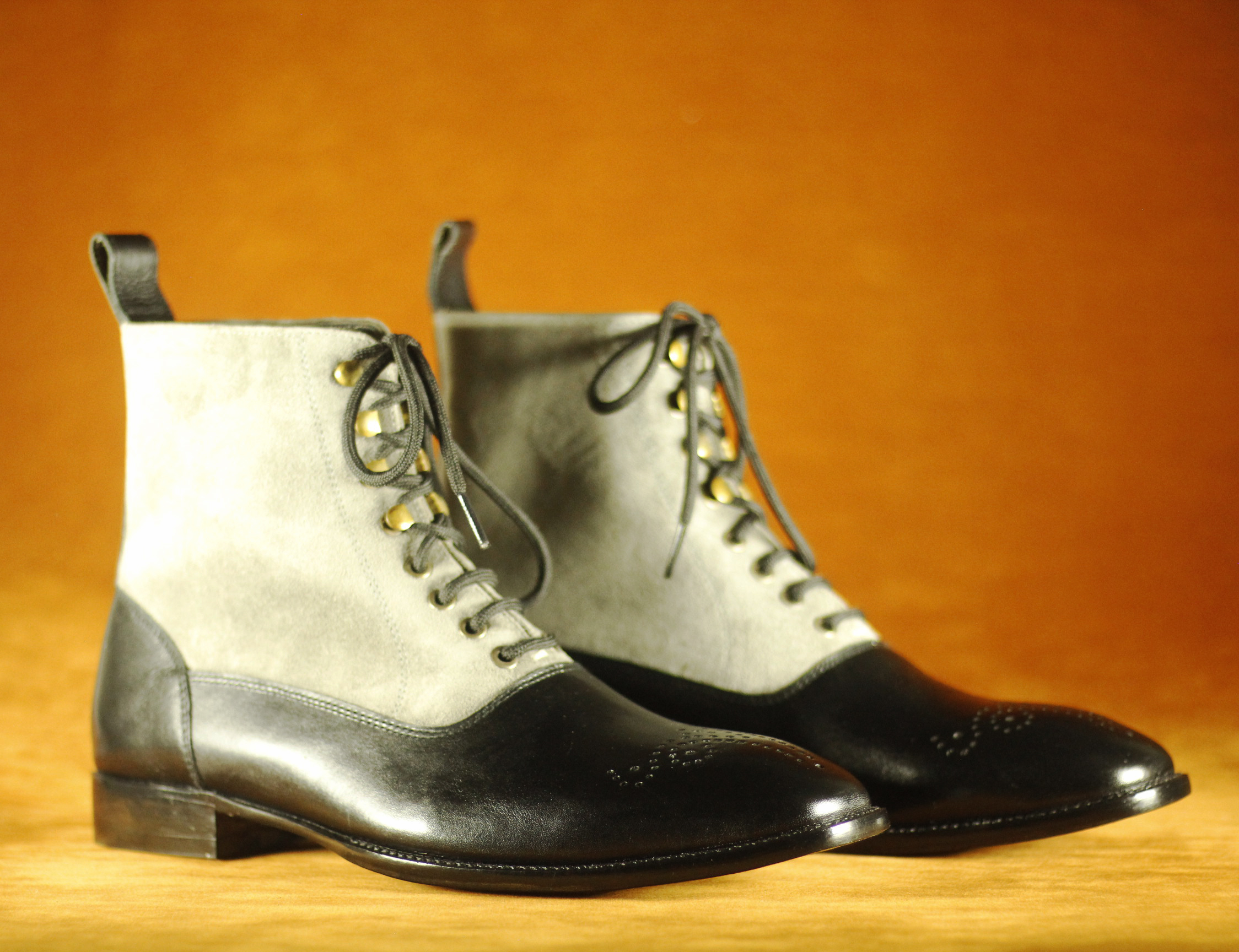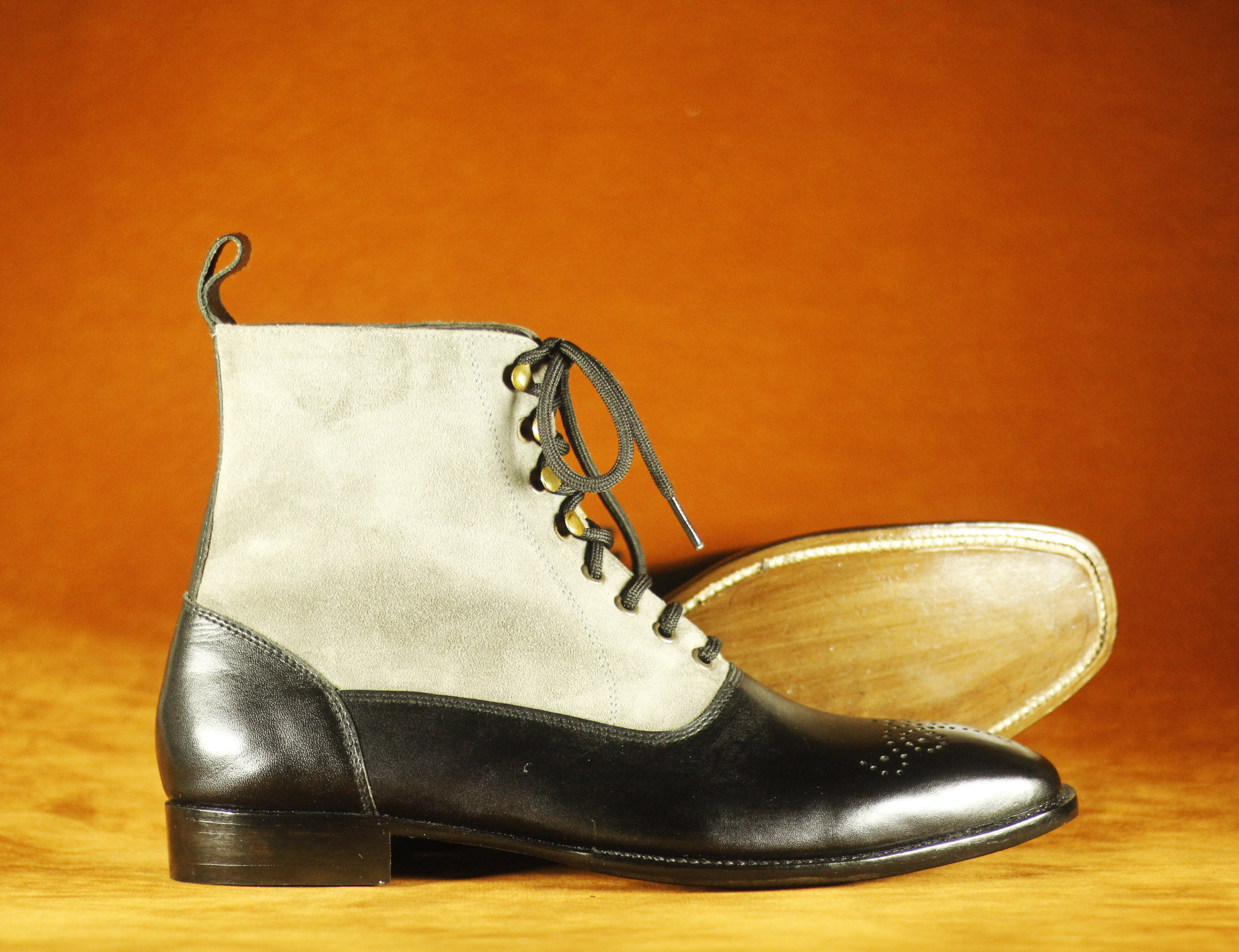 Lace Up Ankle High Gray & Black Suede Leather Men's Formal Dress Boot
