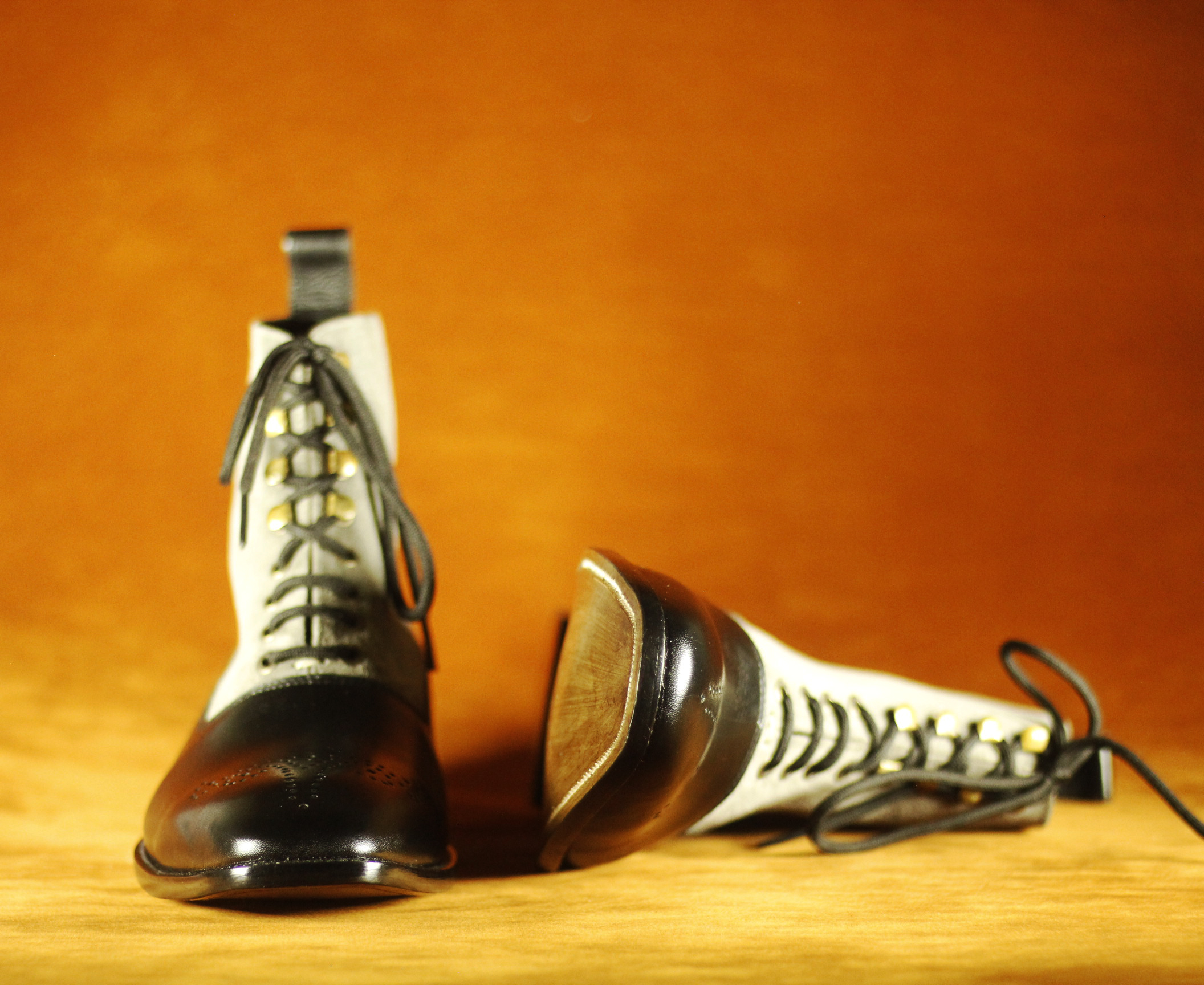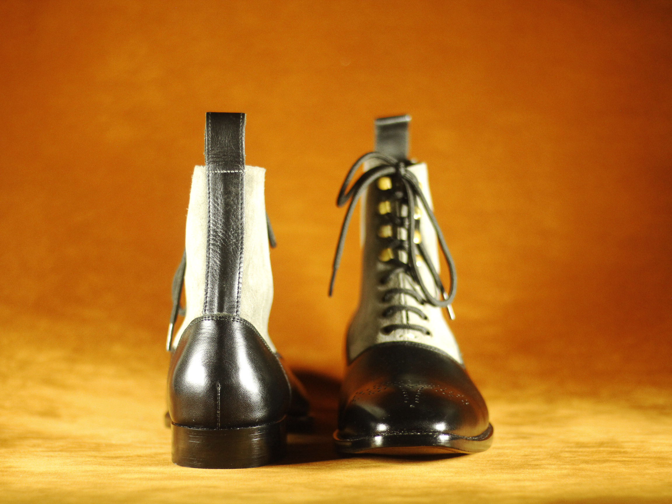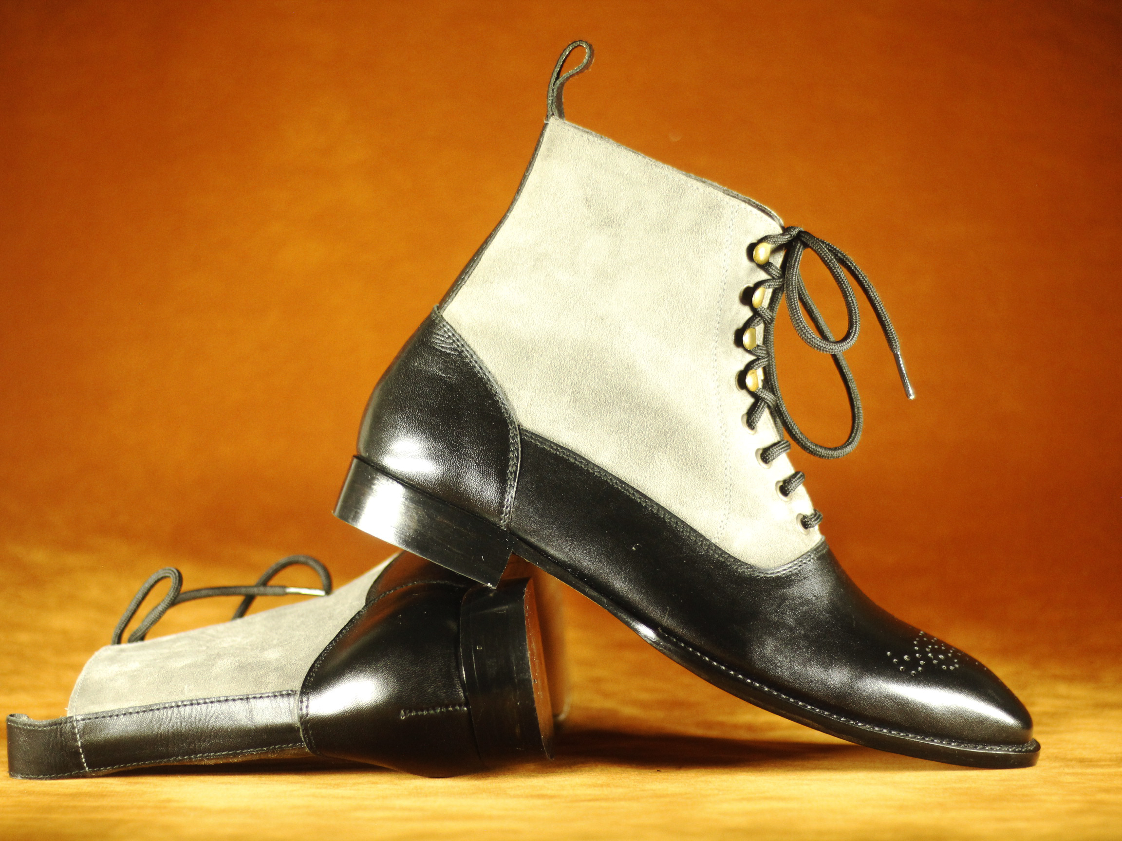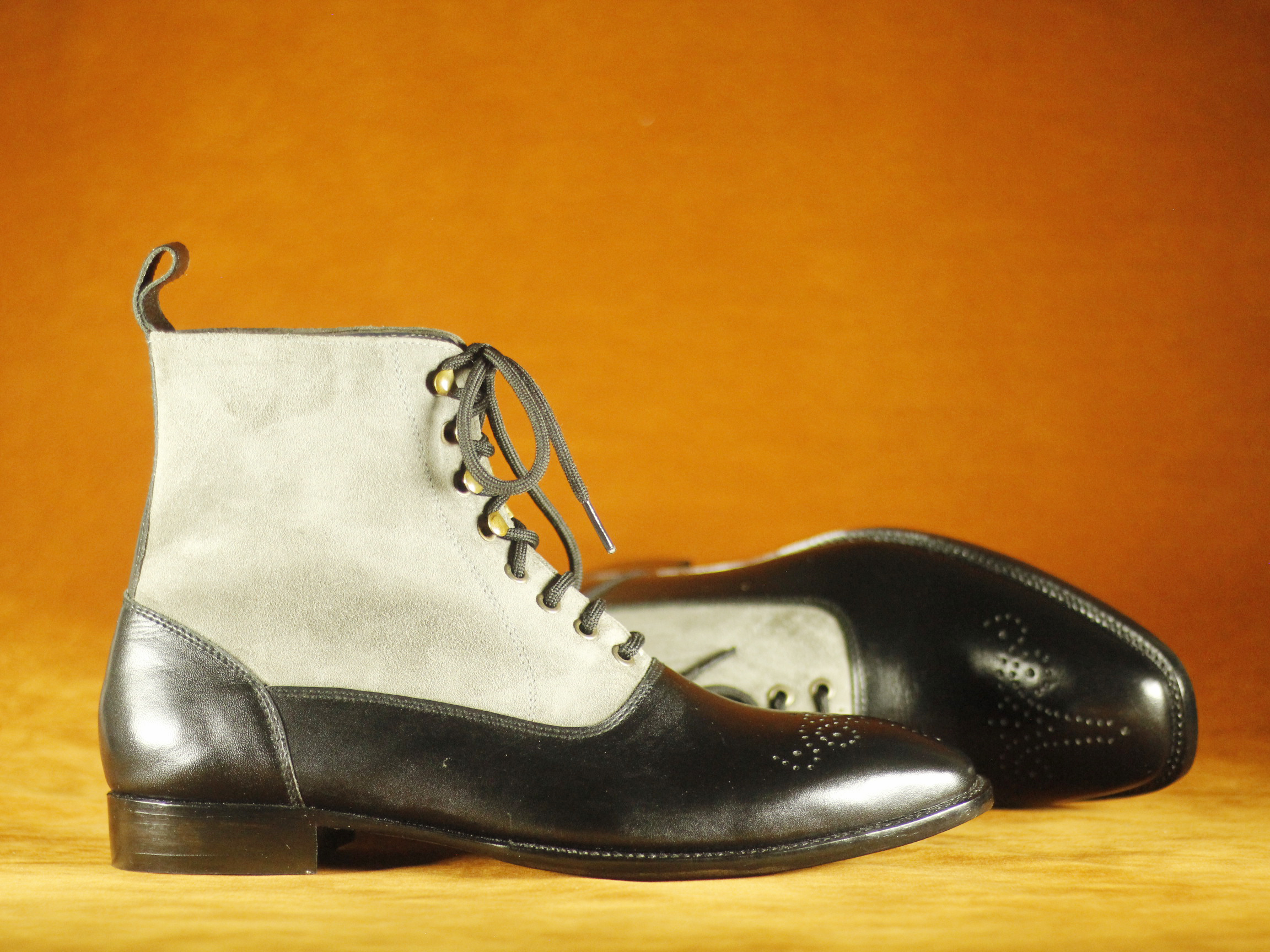 Lace Up Ankle High Gray & Black Suede Leather Men's Formal Dress Boot
