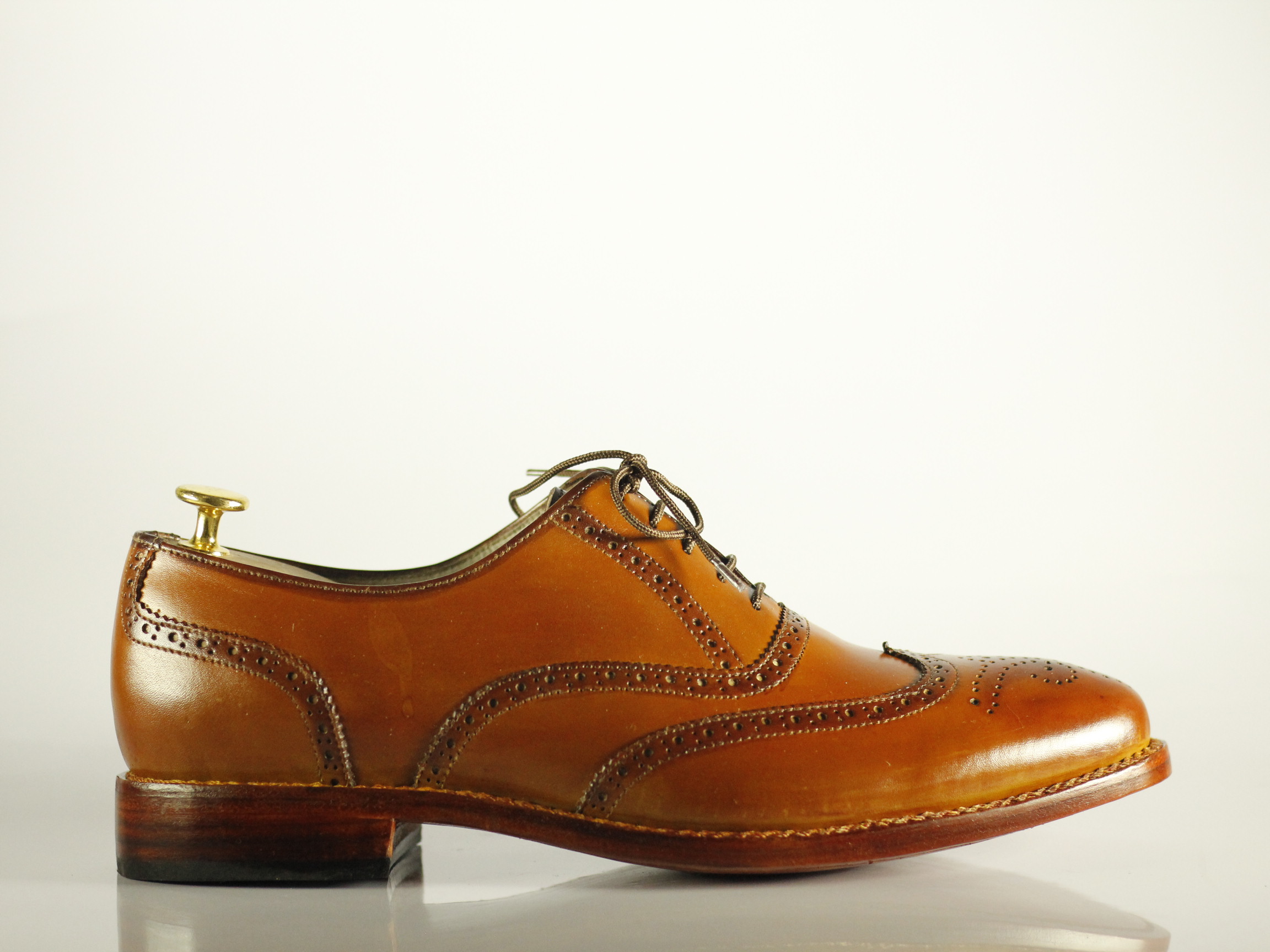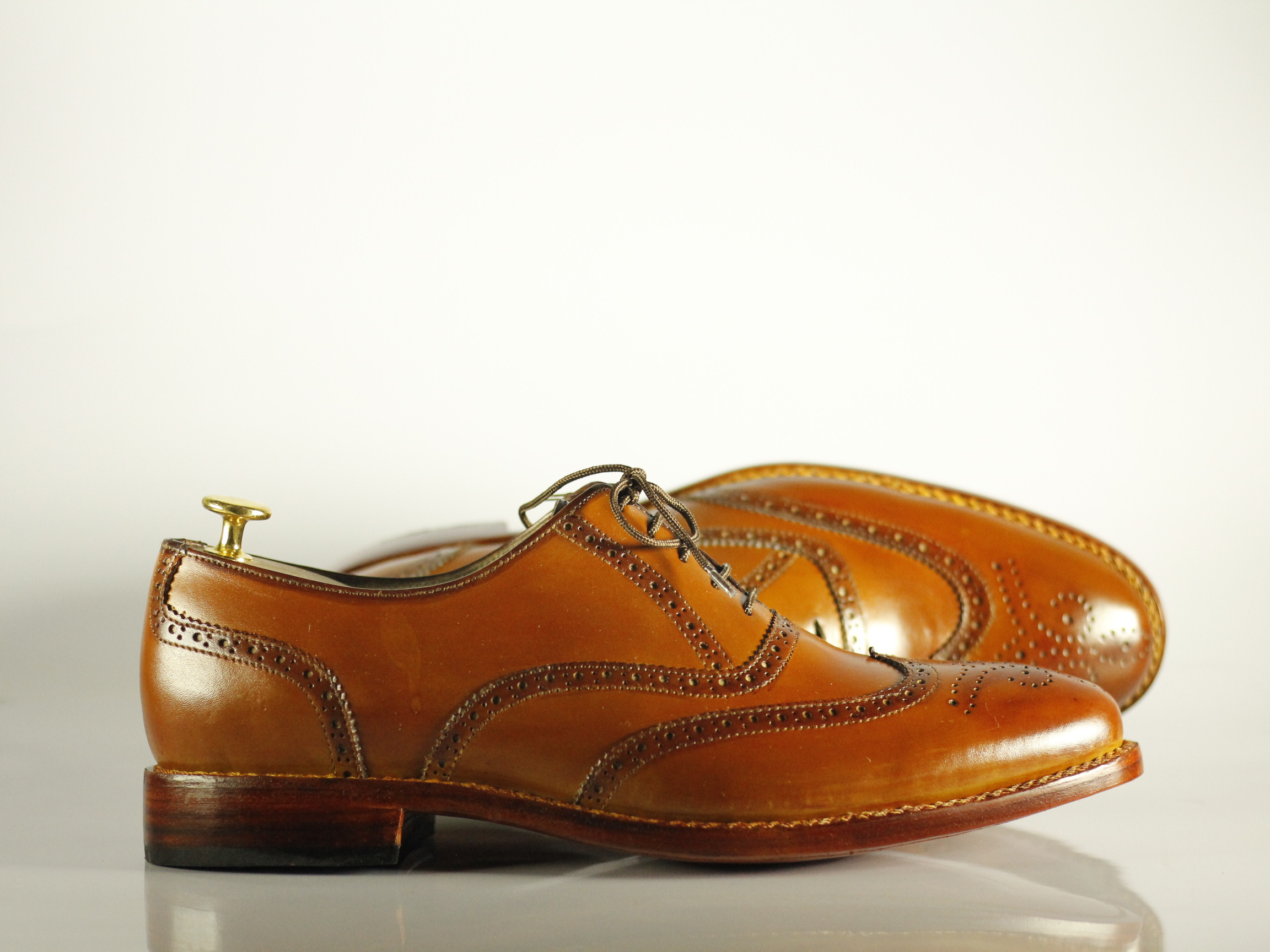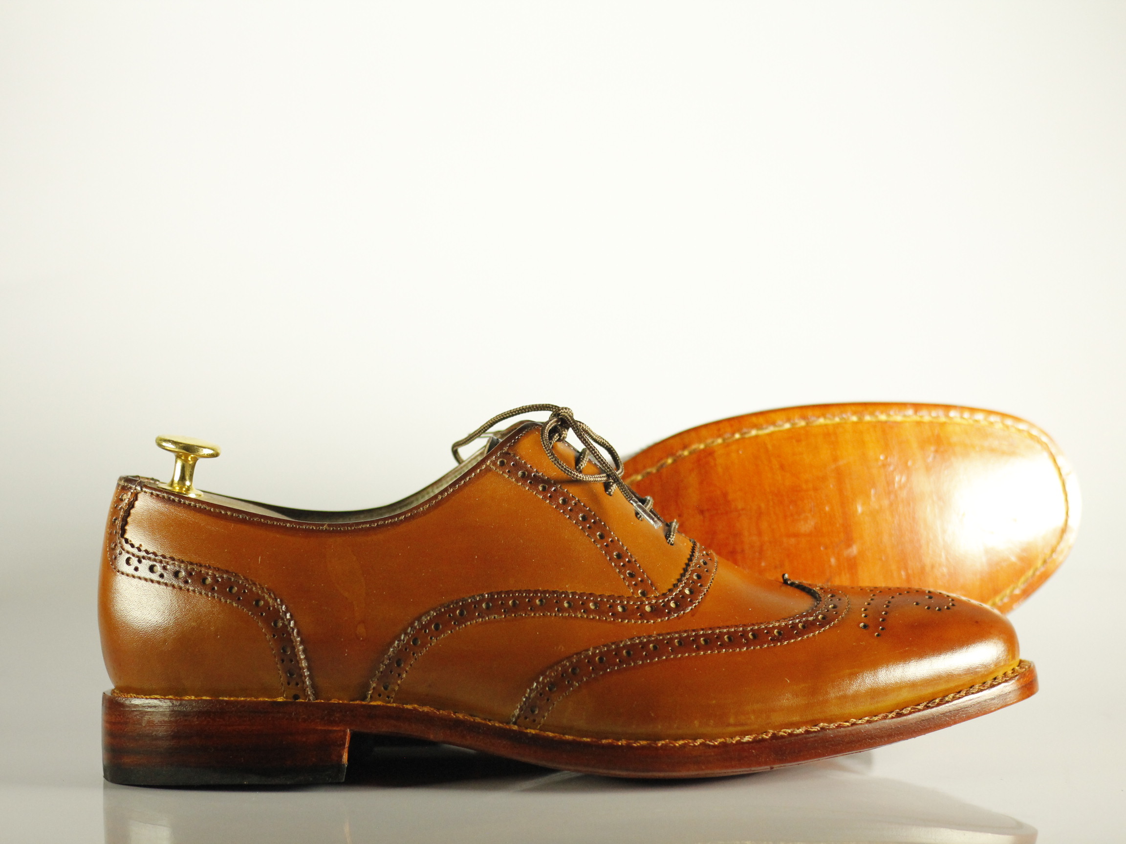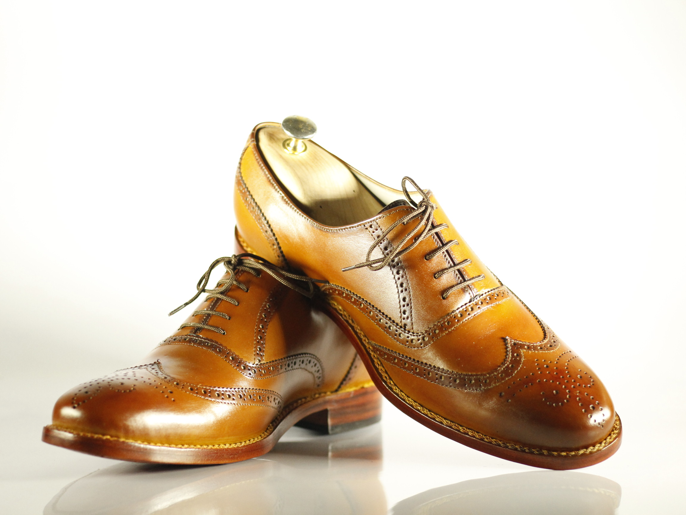 Handmade Tan Wing Tip Lace Up Leather Men's Shoes