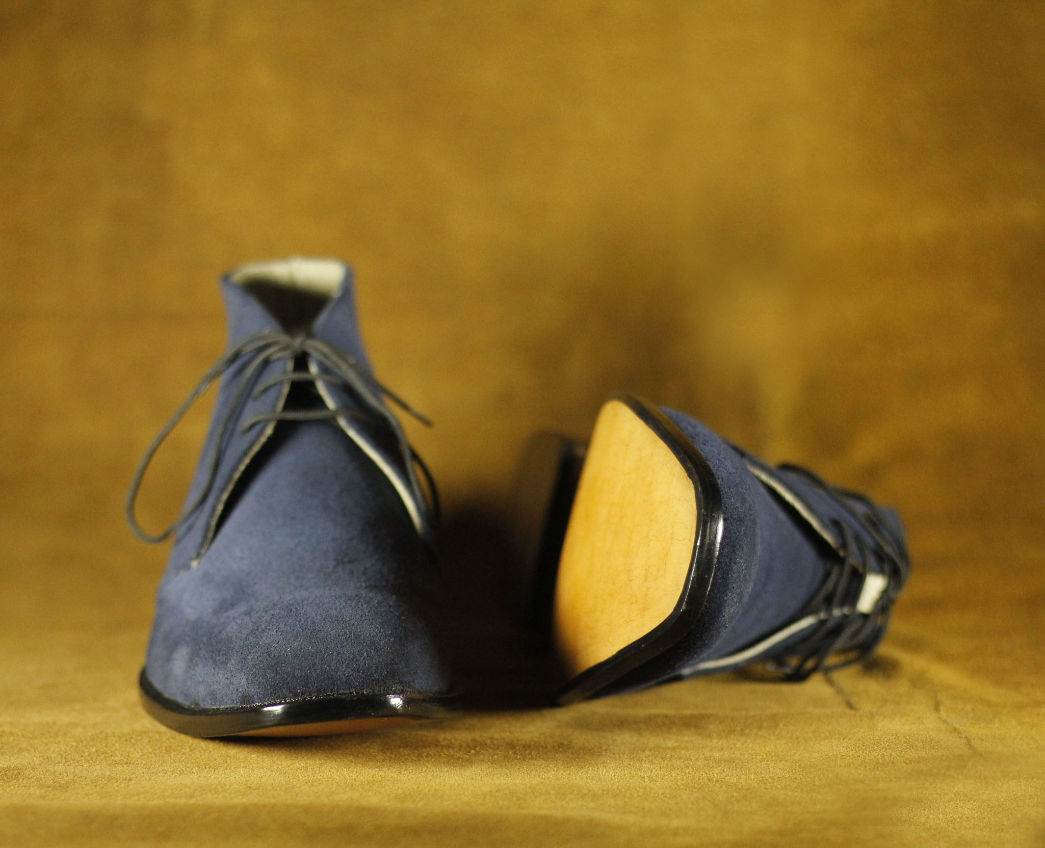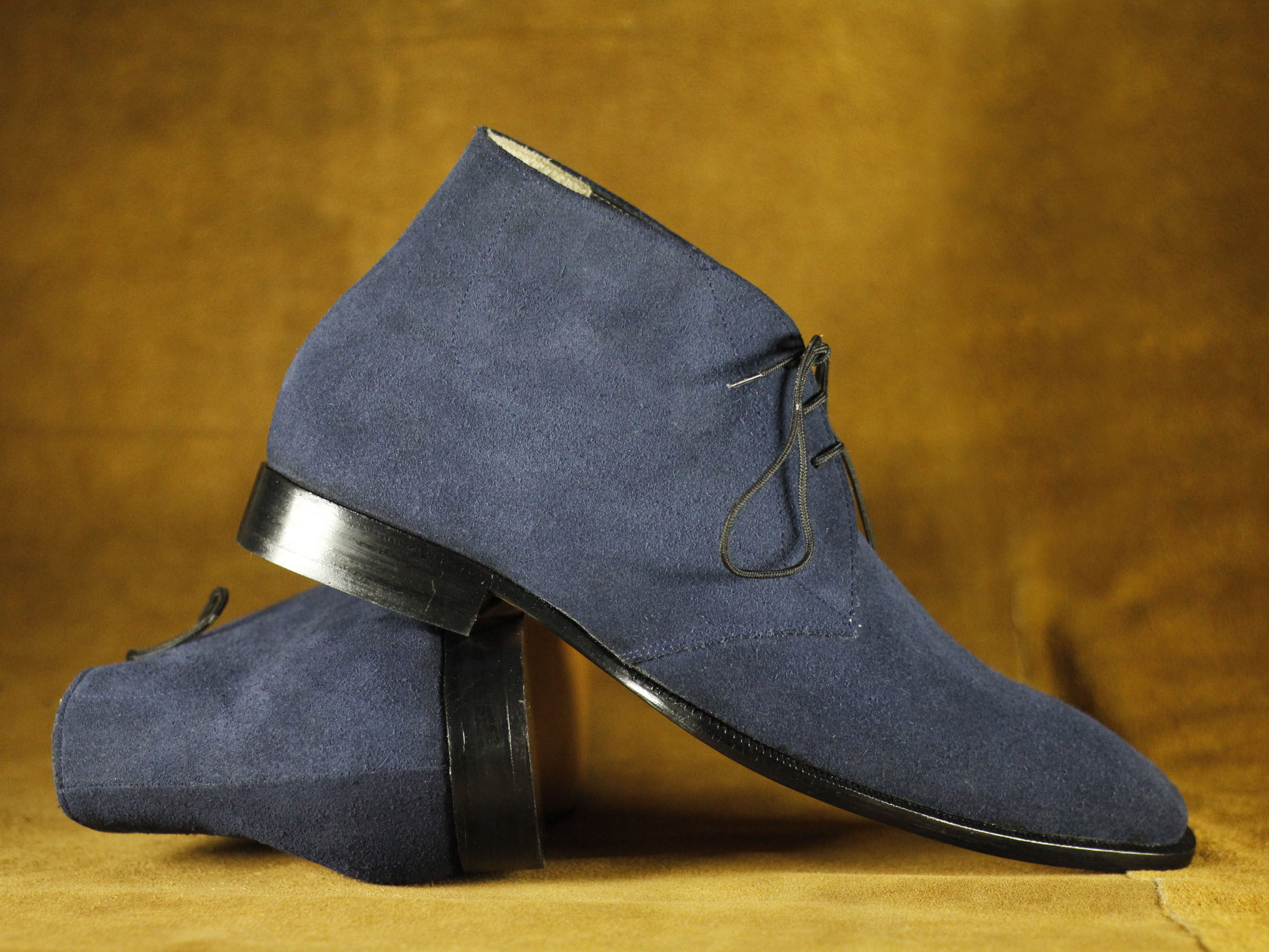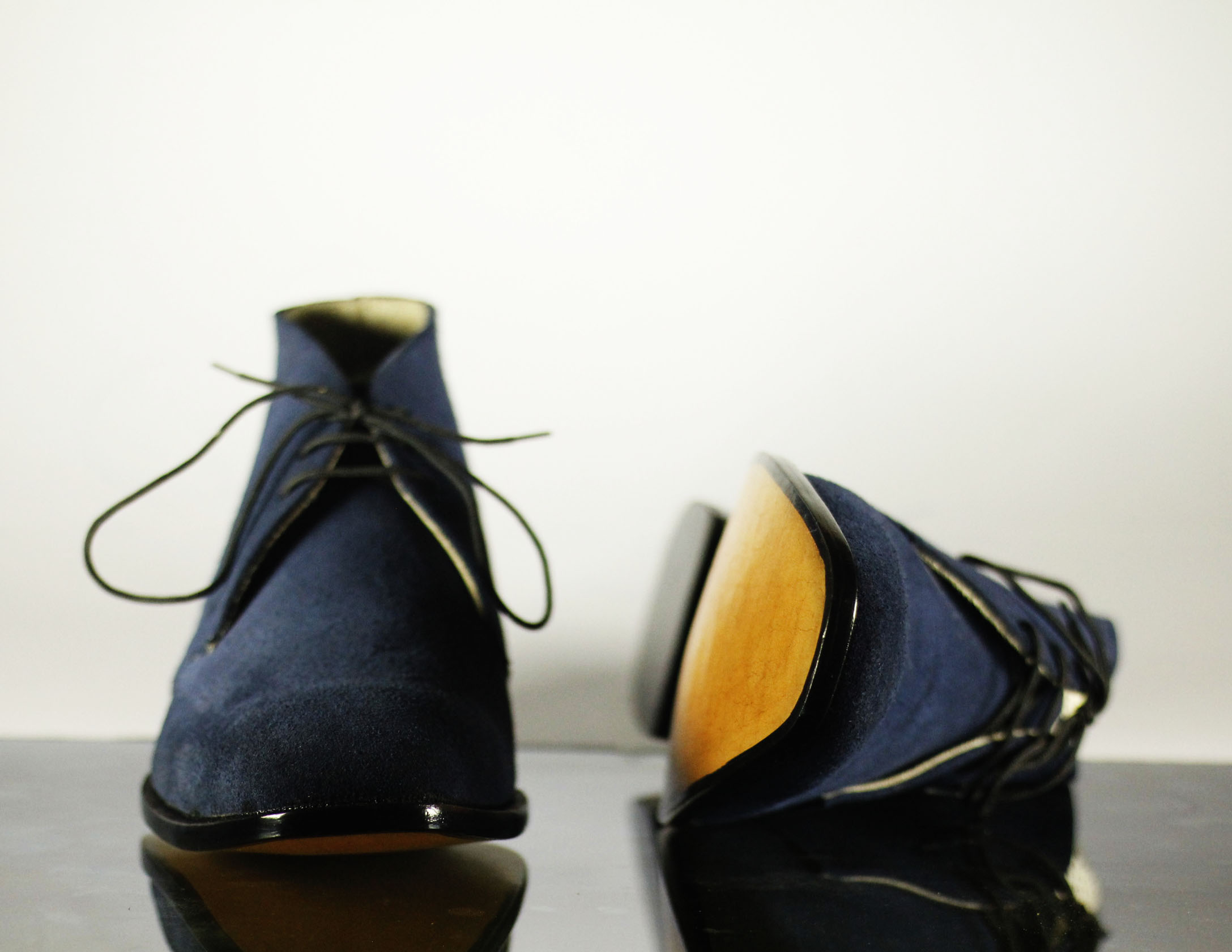 Lace Up Navy Blue Leather Suede Chukka Boot
