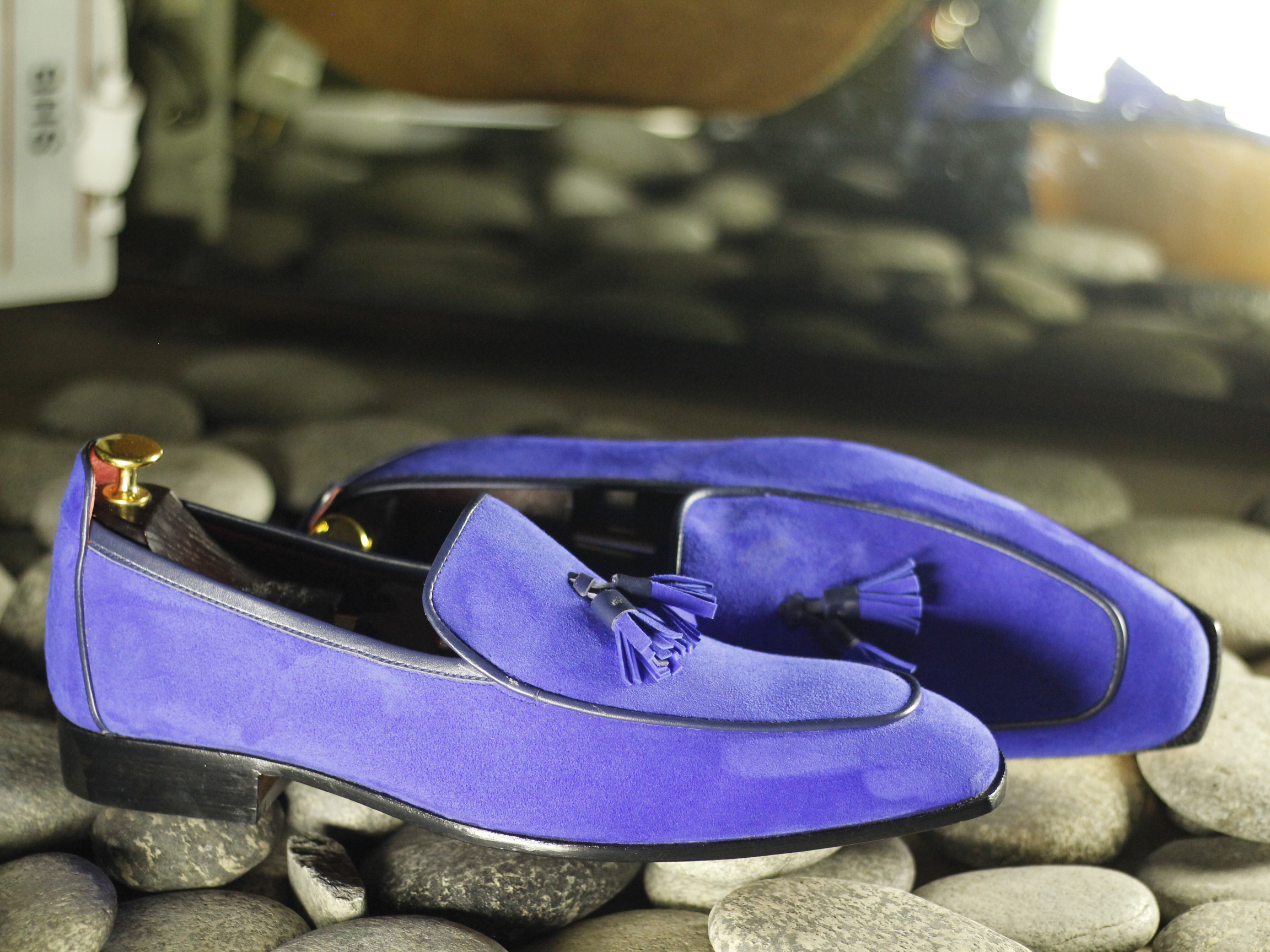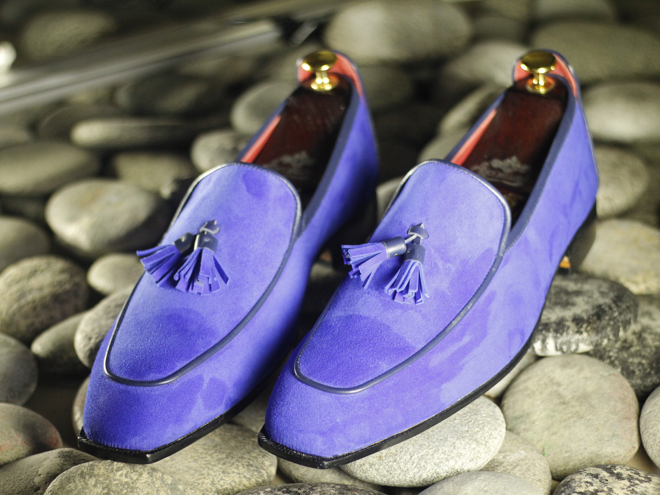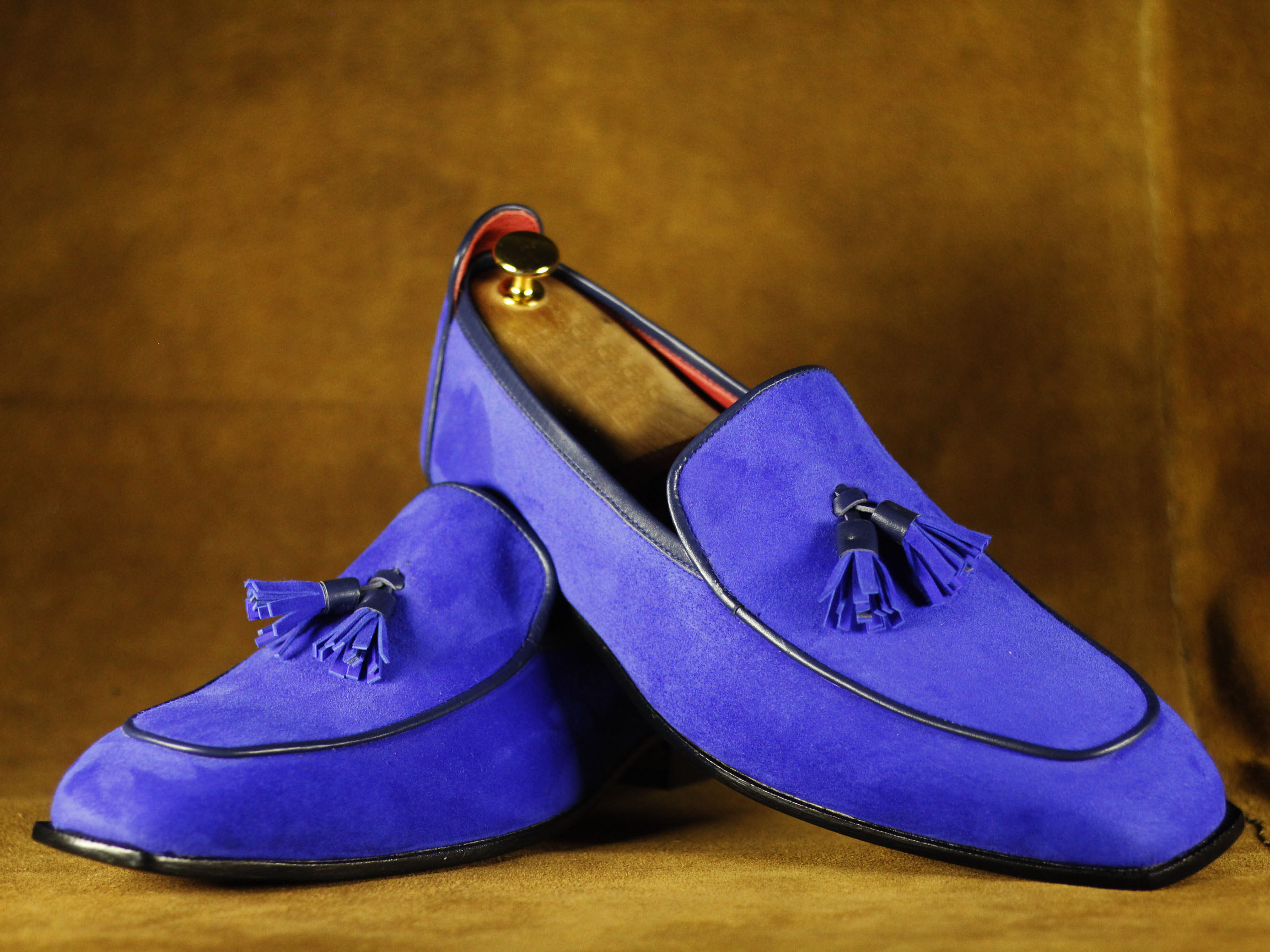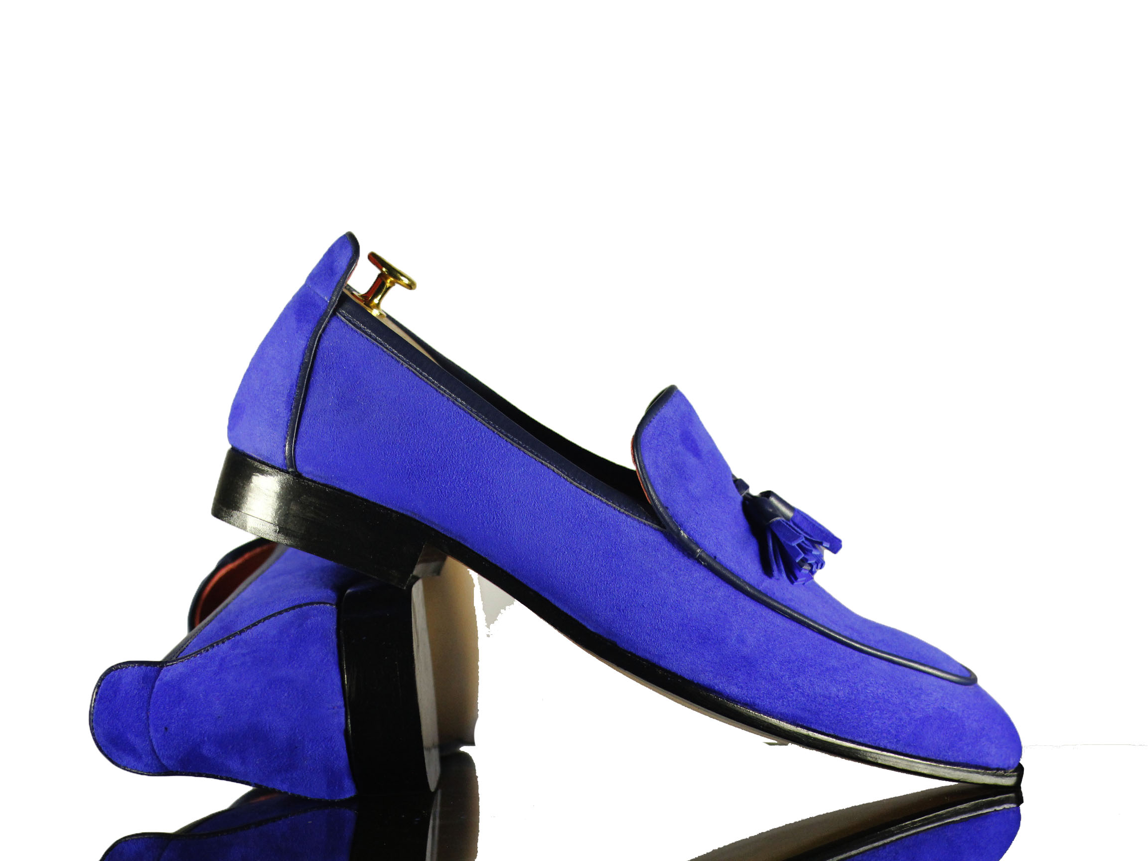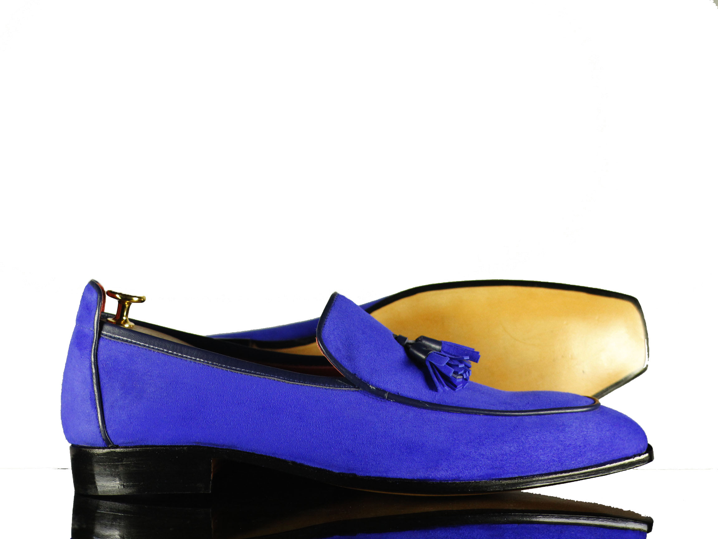 Tasseled Royal Blue Square Toe Slip On Leather Suede Loafers