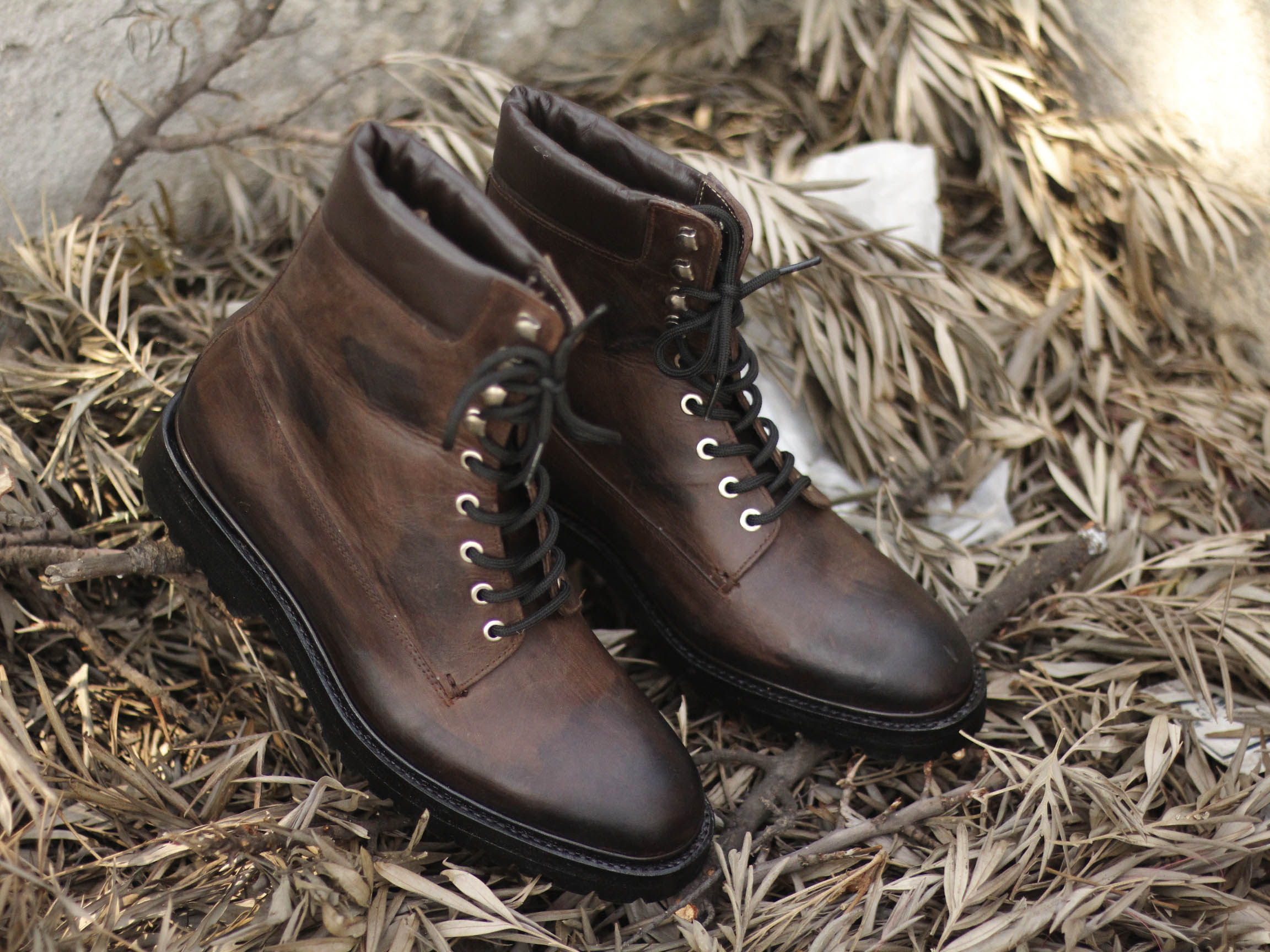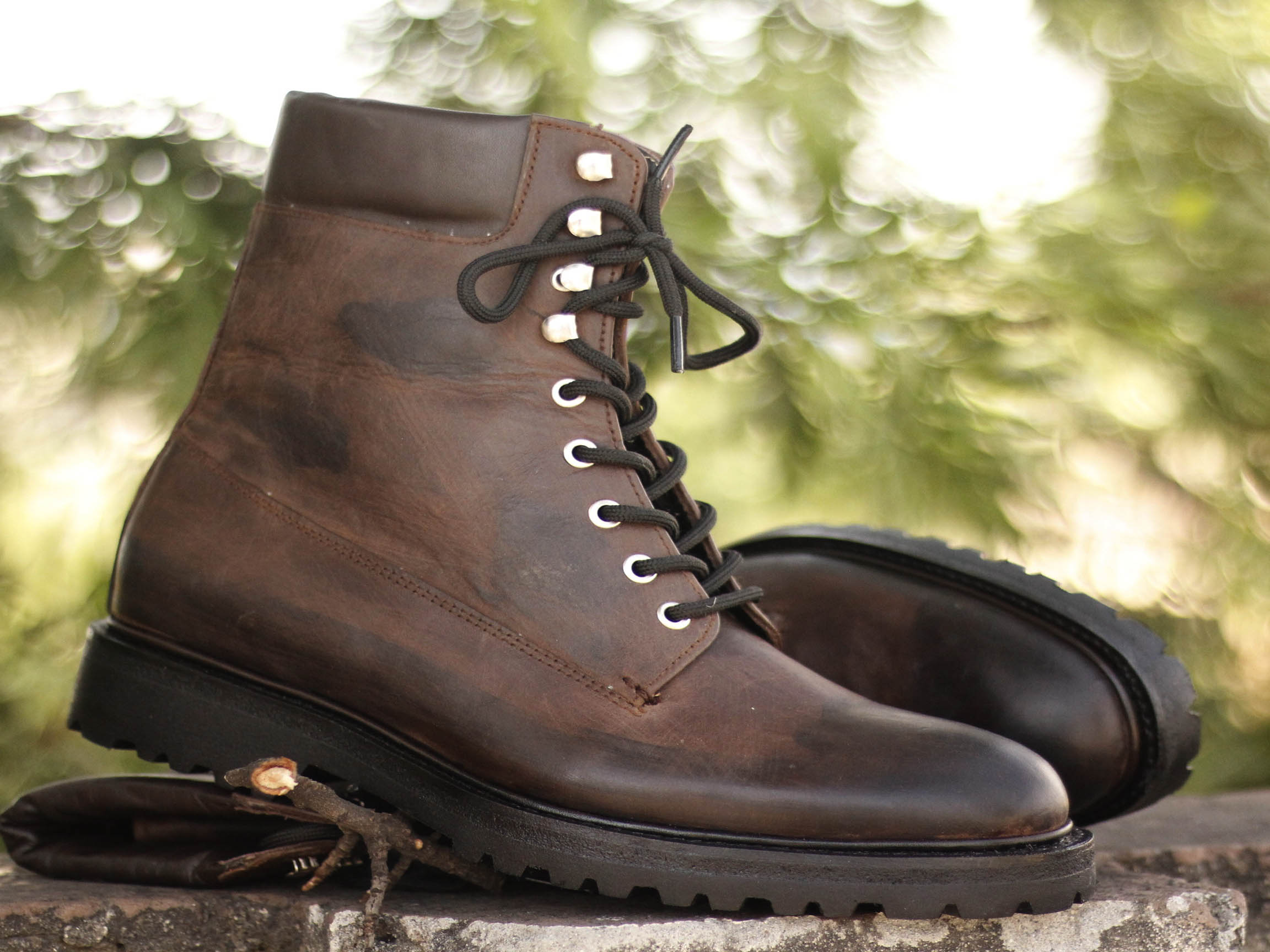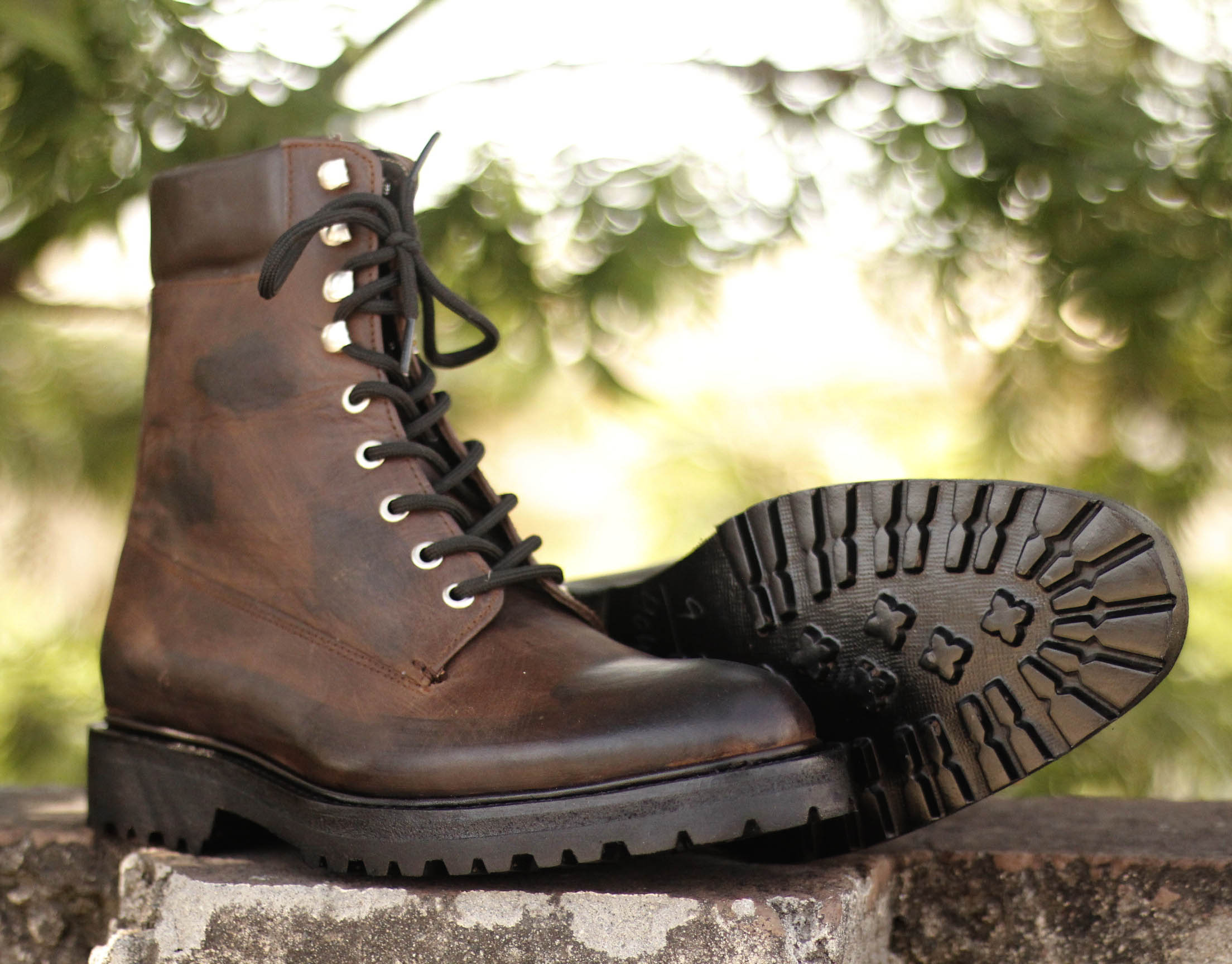 Chocolate Brown Men's Ankle Brown Vintage Leather Lace Up Boot