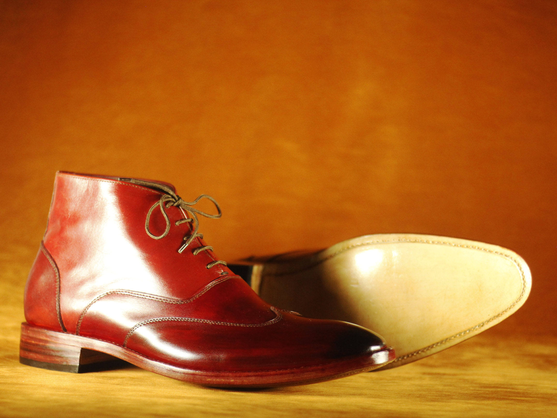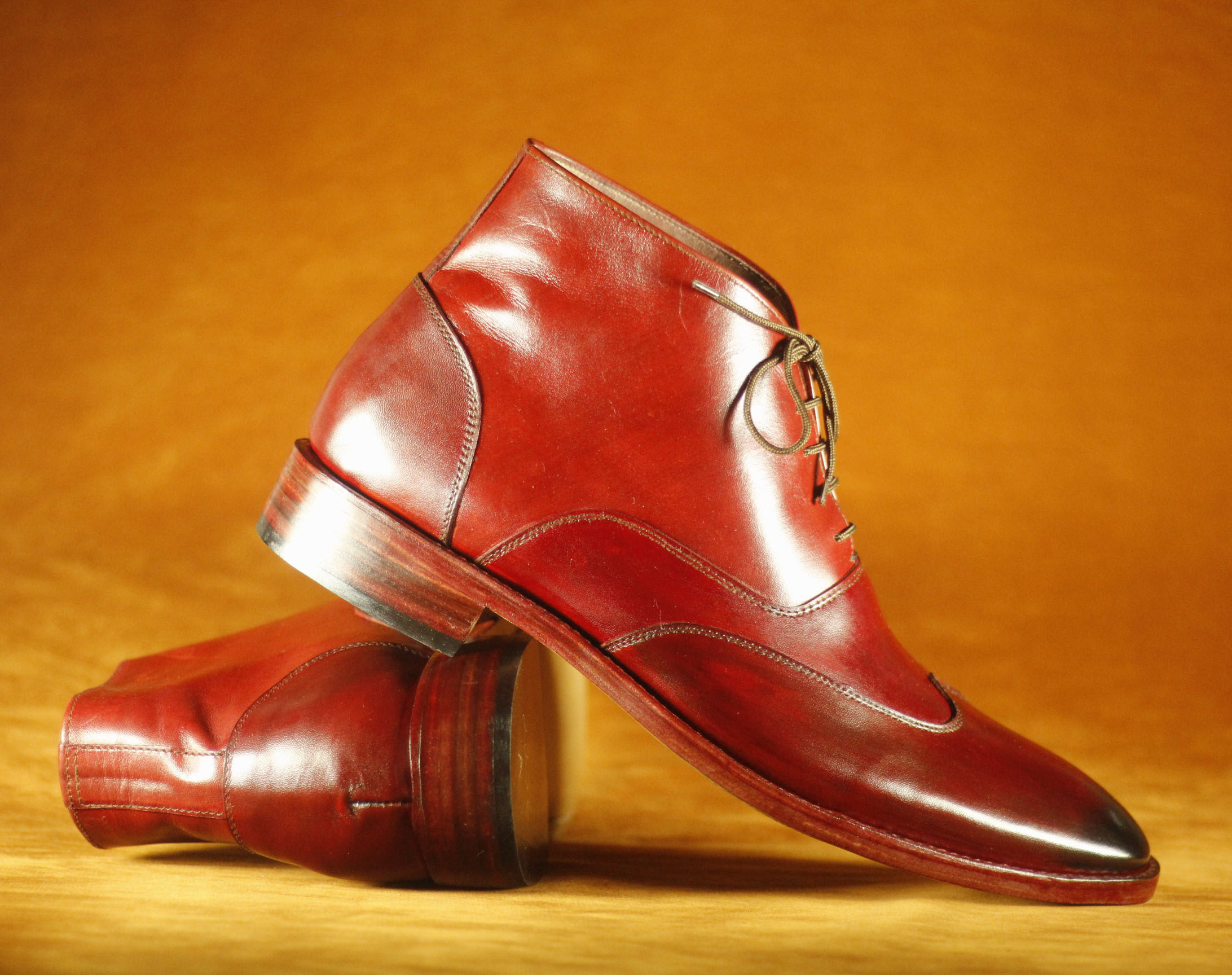 Classy Burgundy Lace Up Half Ankle Chukka Leather Boot