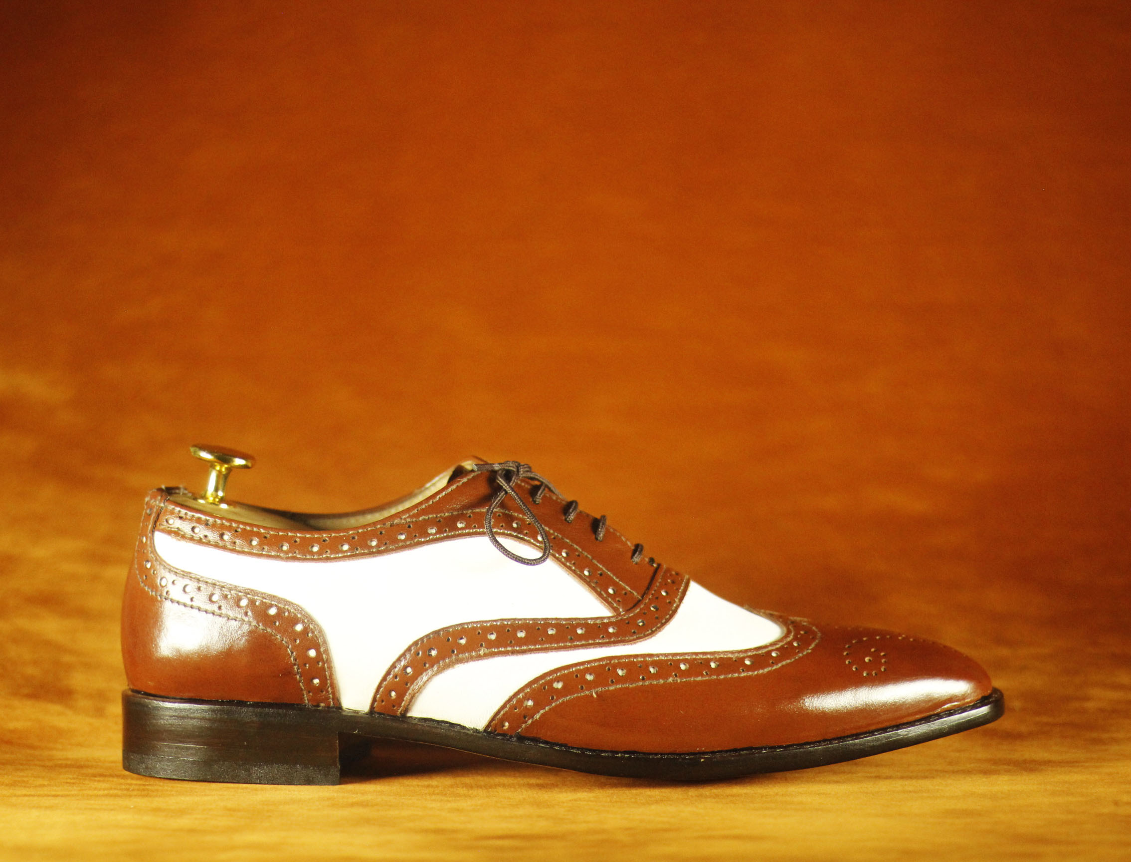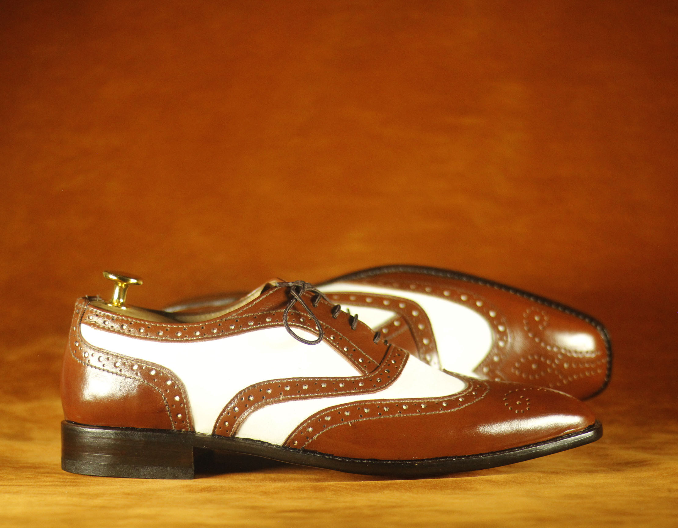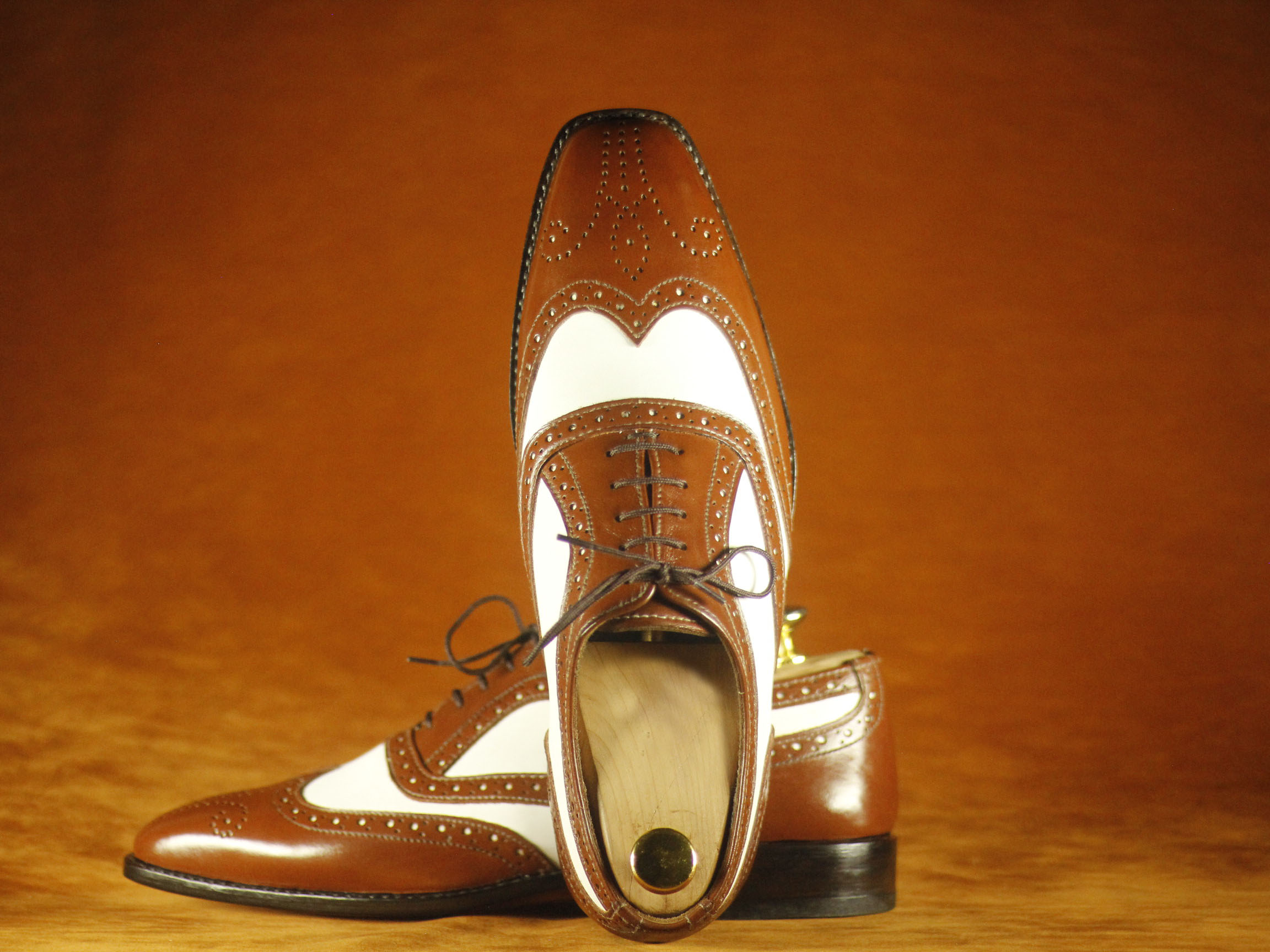 Formal Foot Wear Brown & White Wing Tip Brogue Leather Shoes