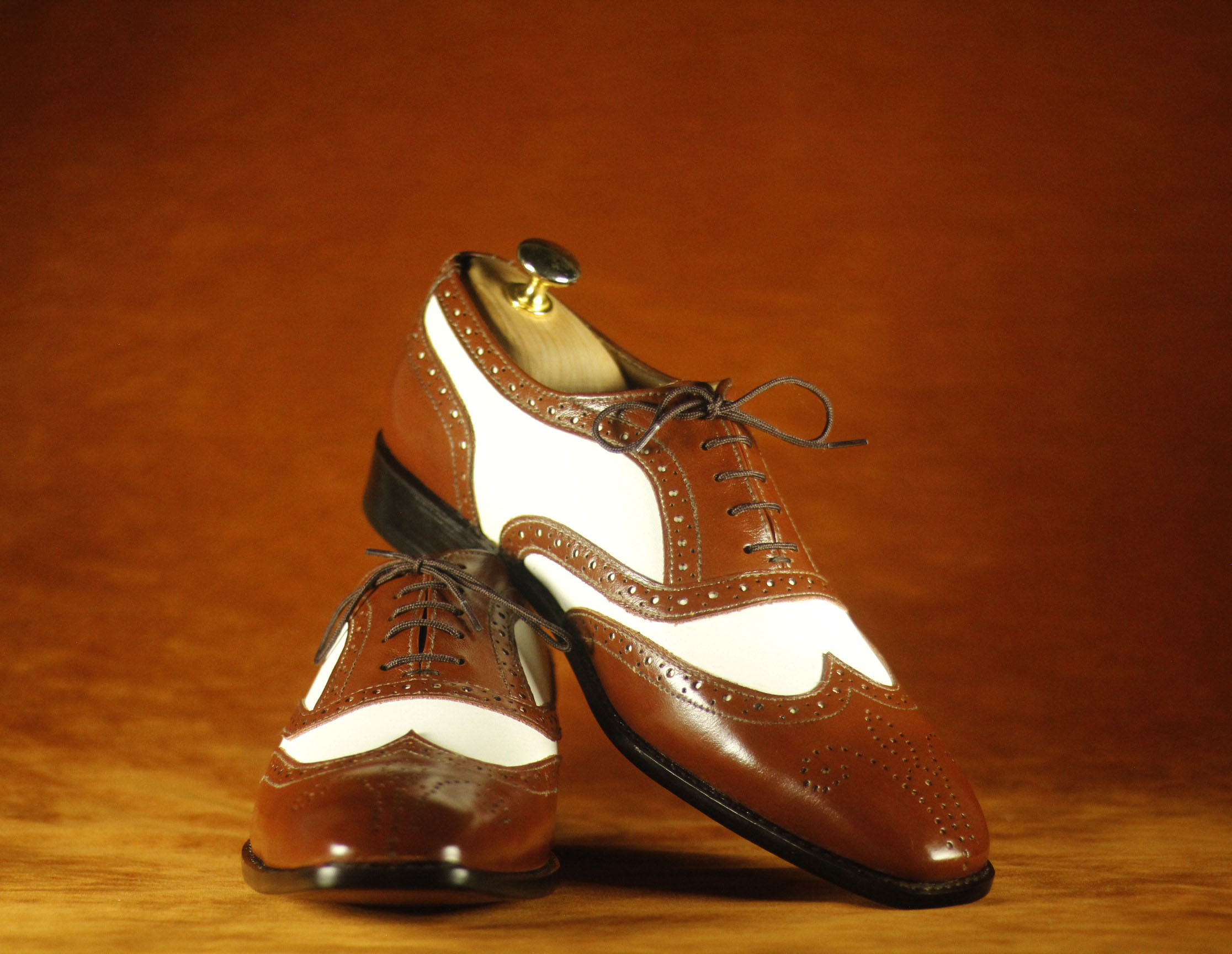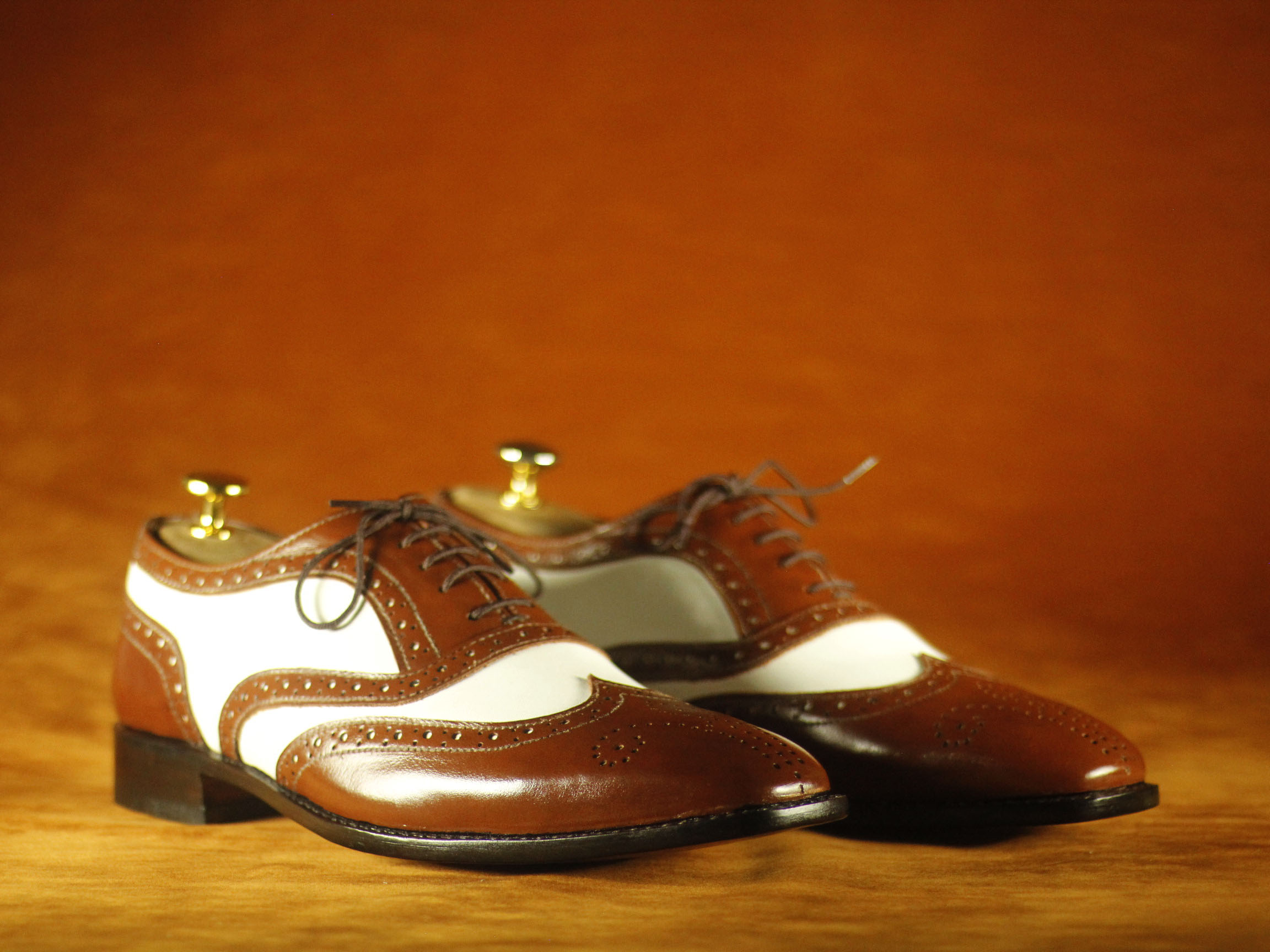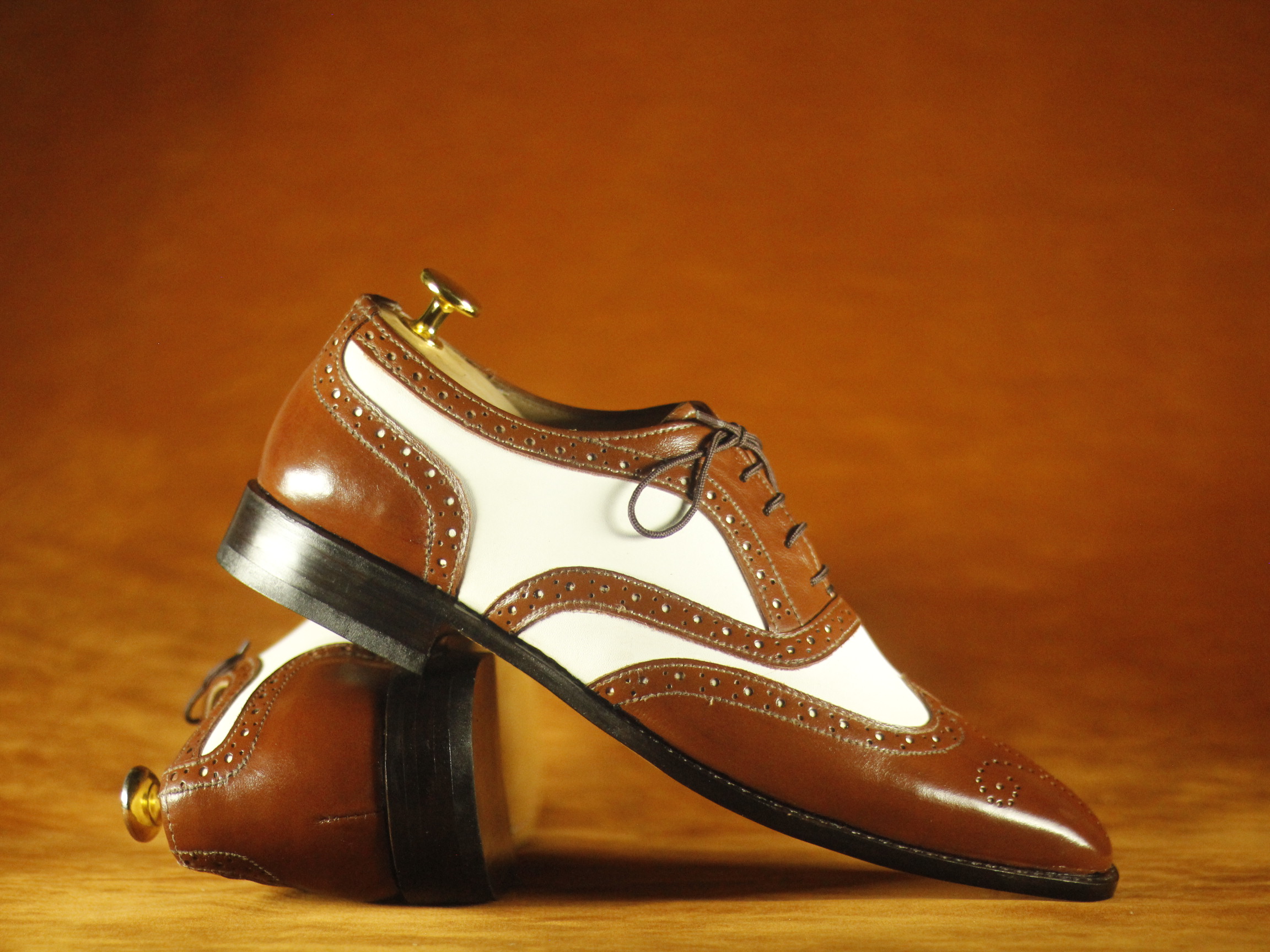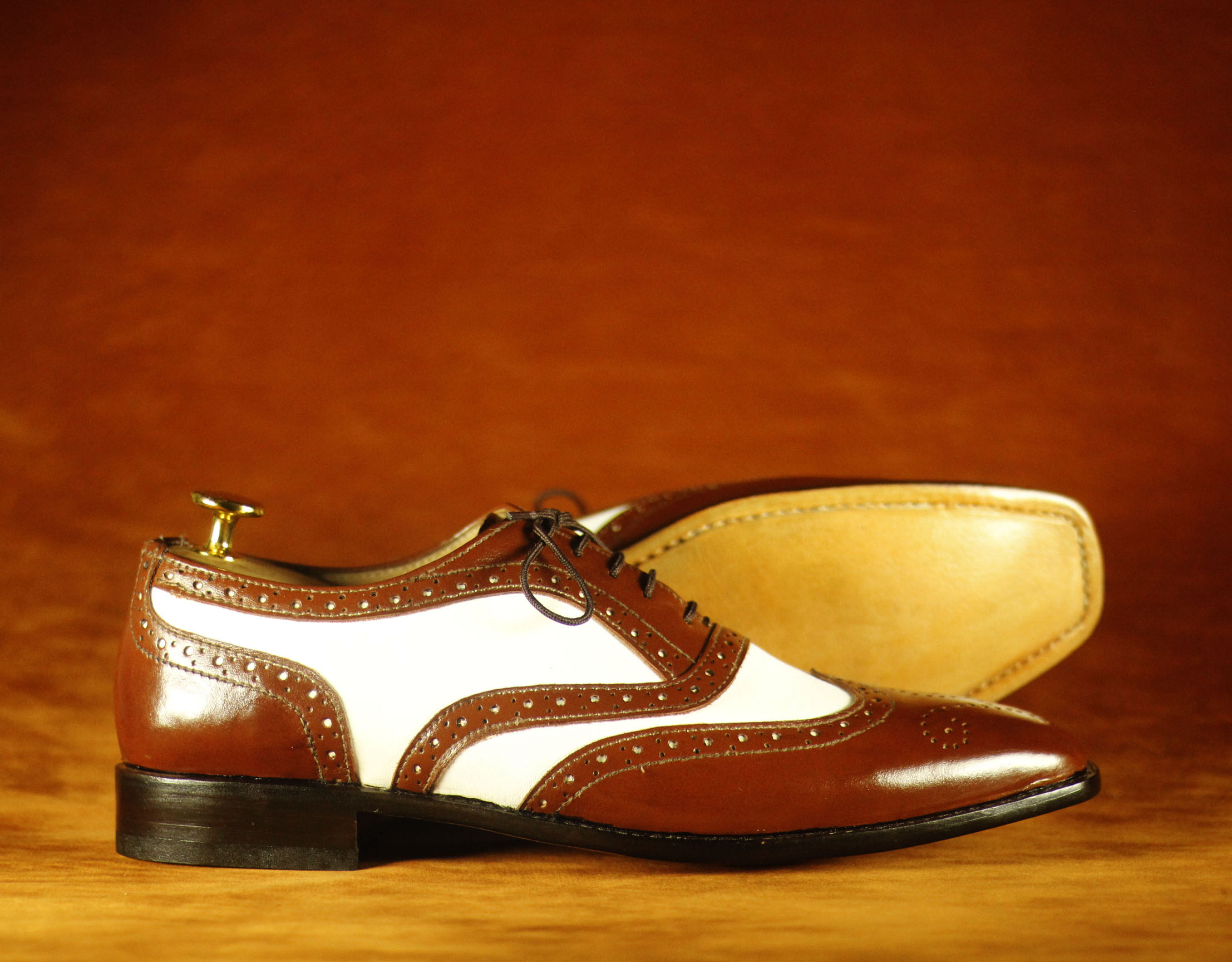 Formal Foot Wear Brown & White Wing Tip Brogue Leather Shoes