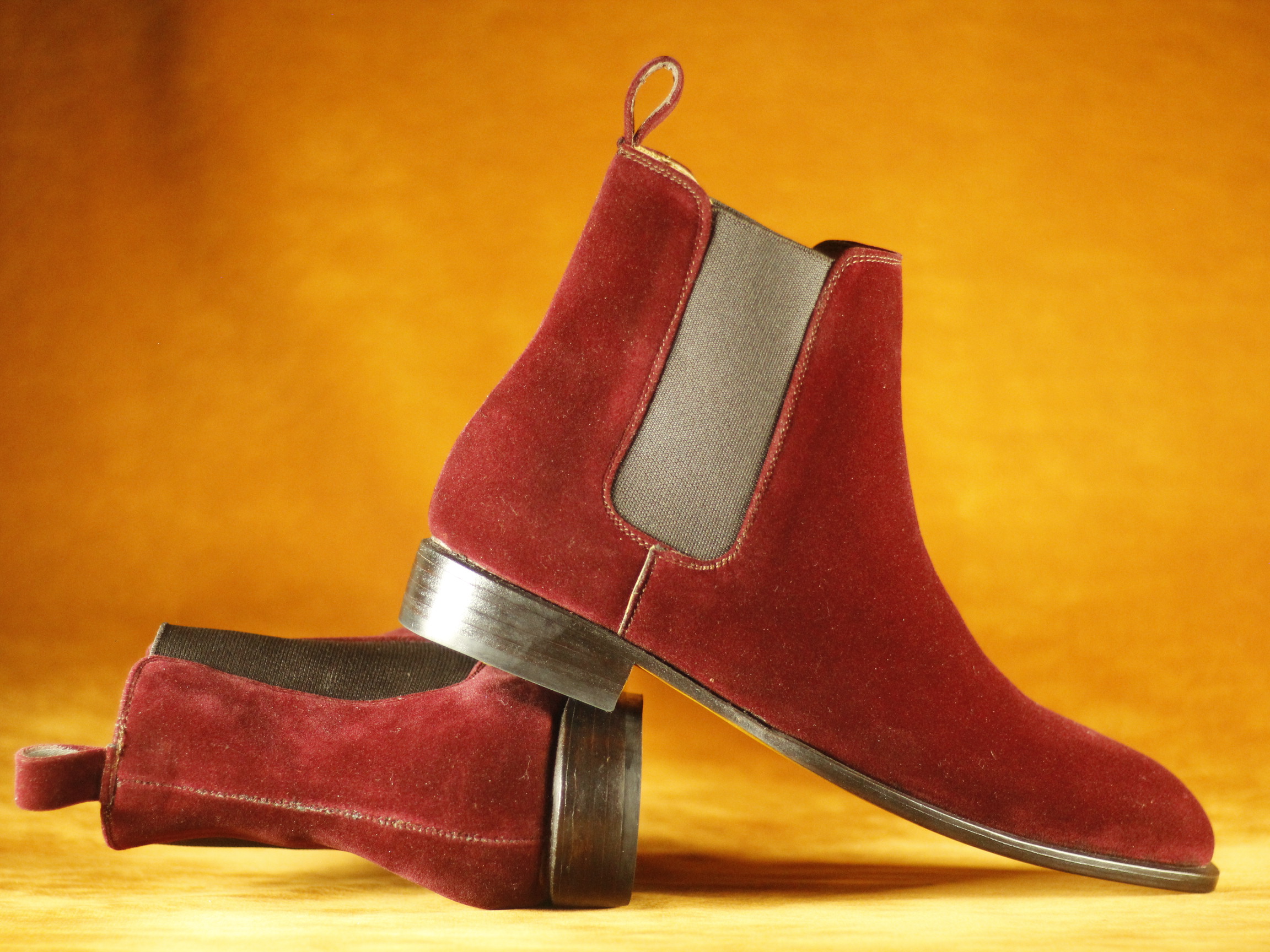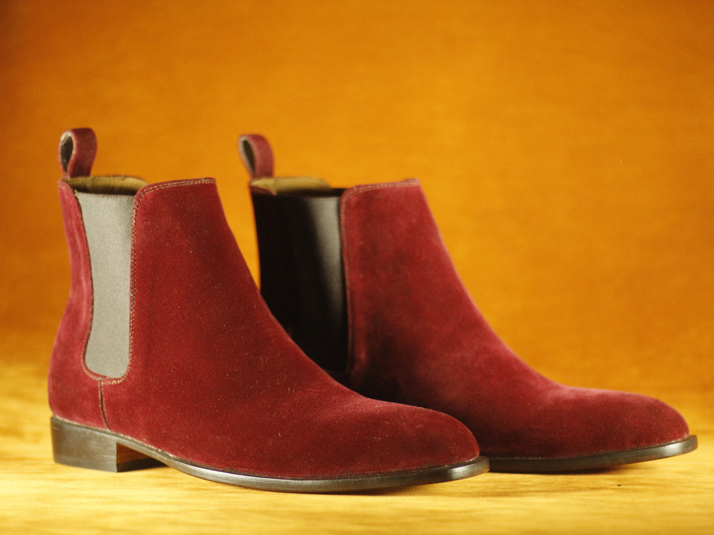 Beautiful Burgundy Chelsea Ankle high Suede Leather Boot