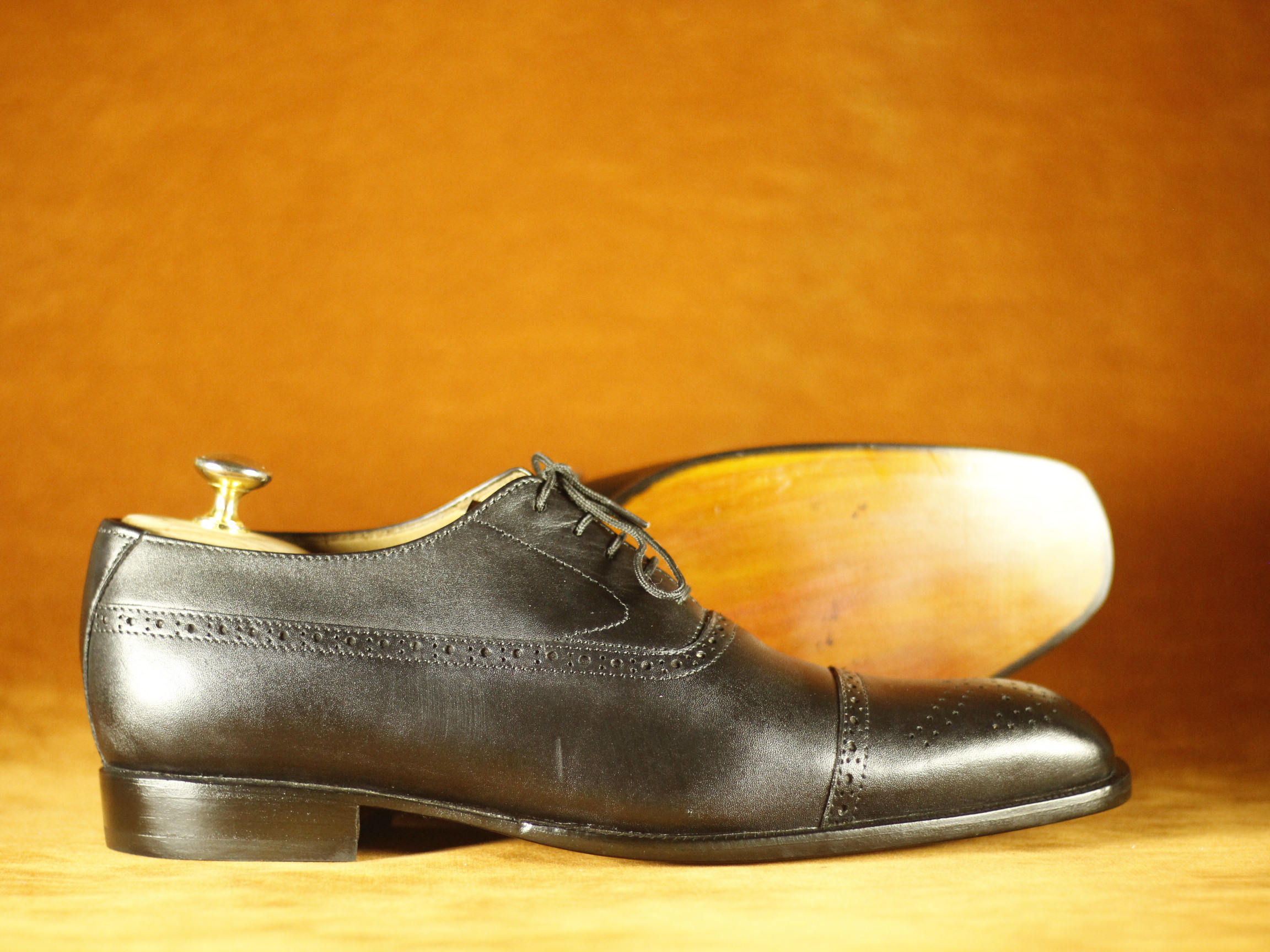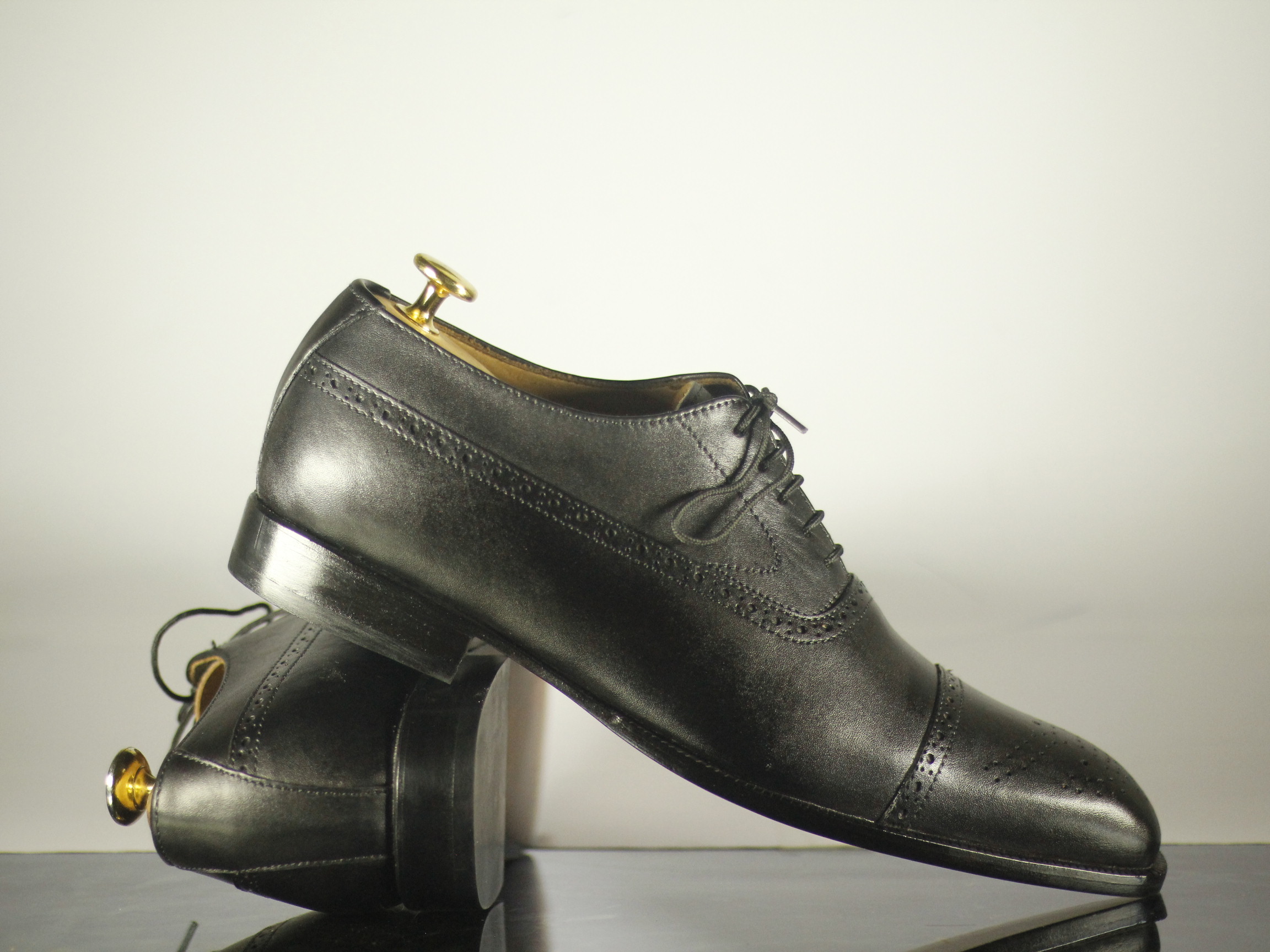Cap Toe Black Brogue Lace Up Leather Shoes
