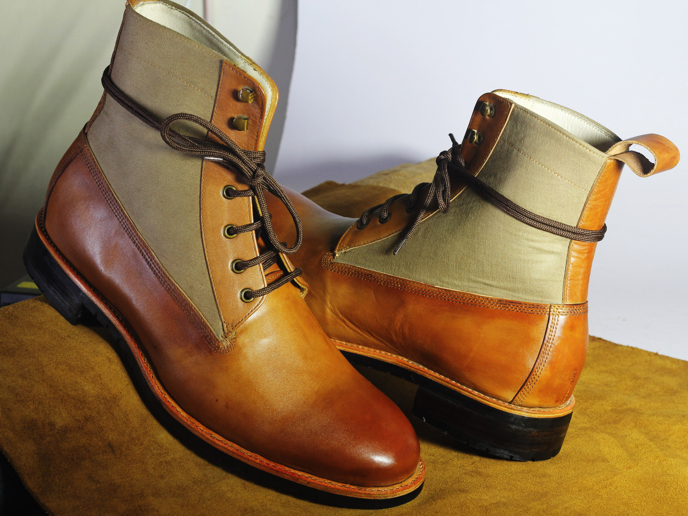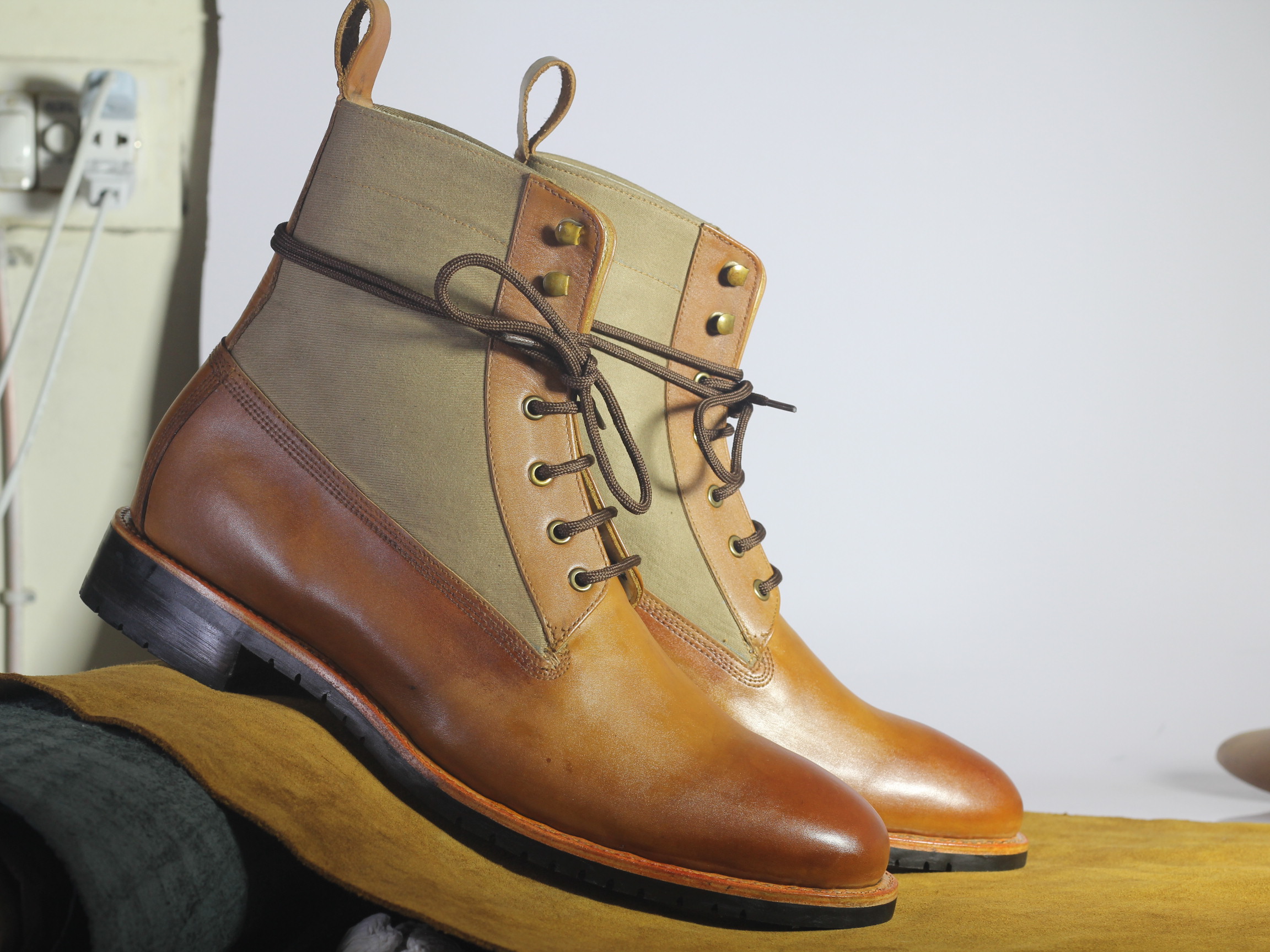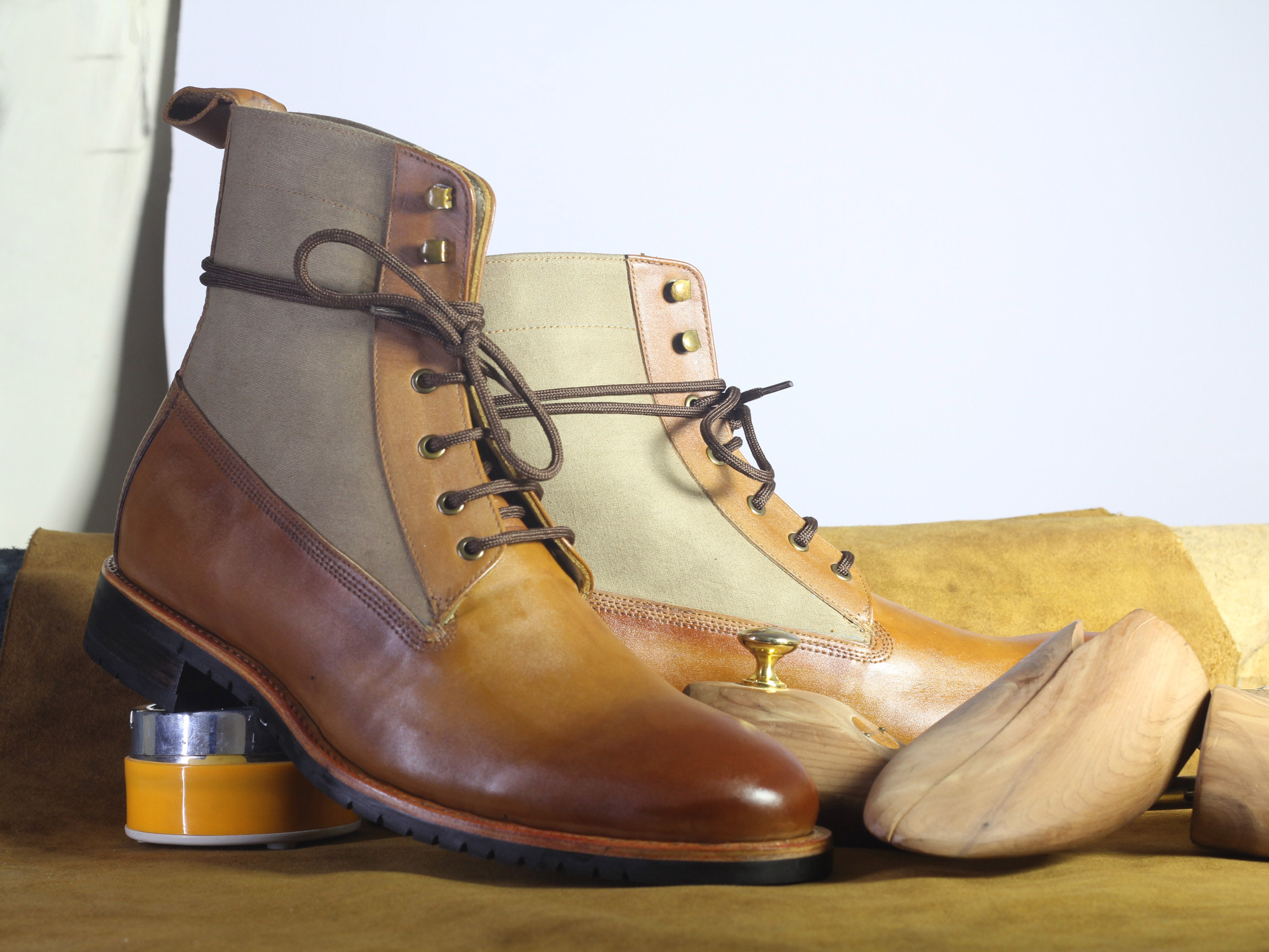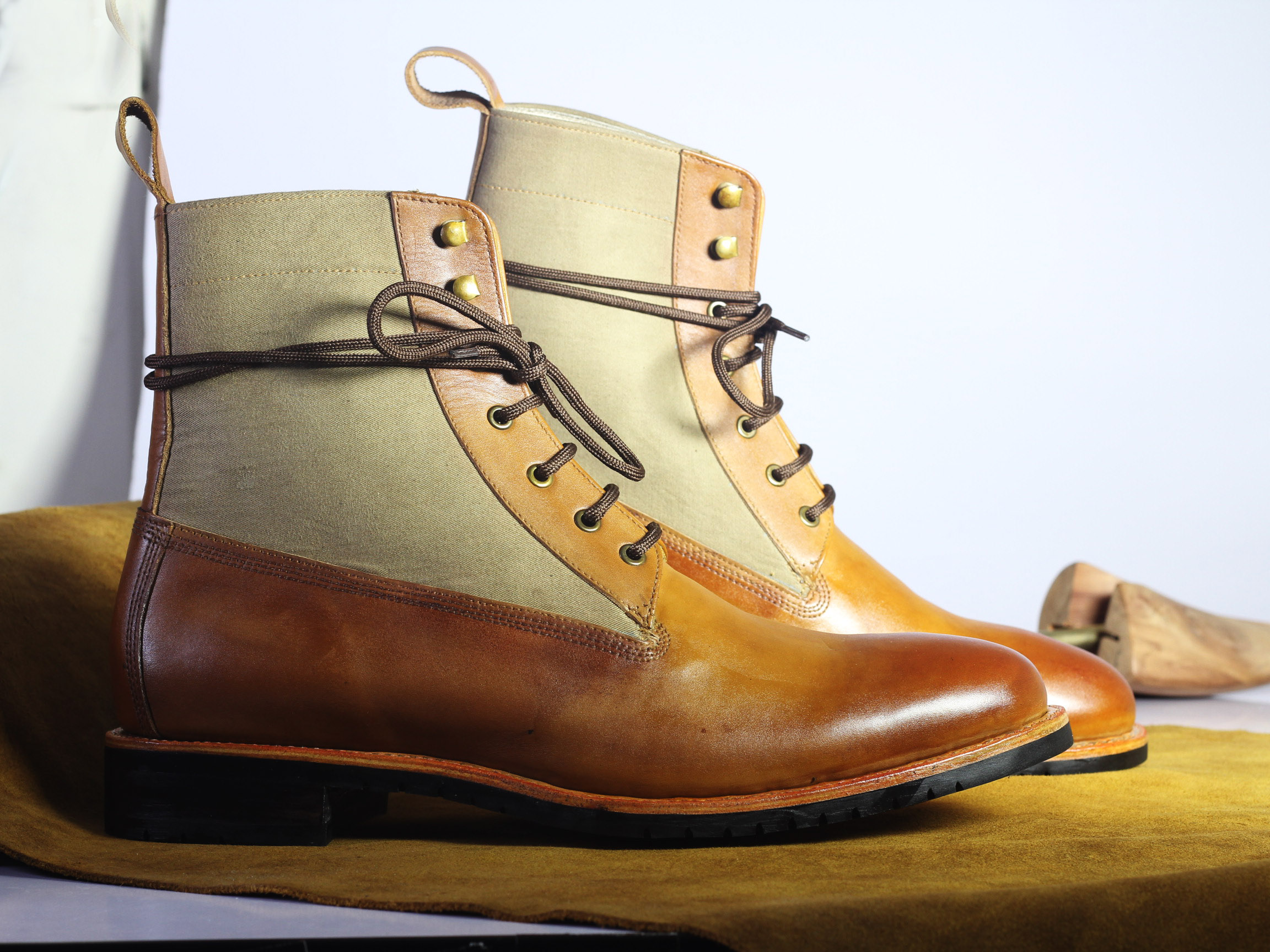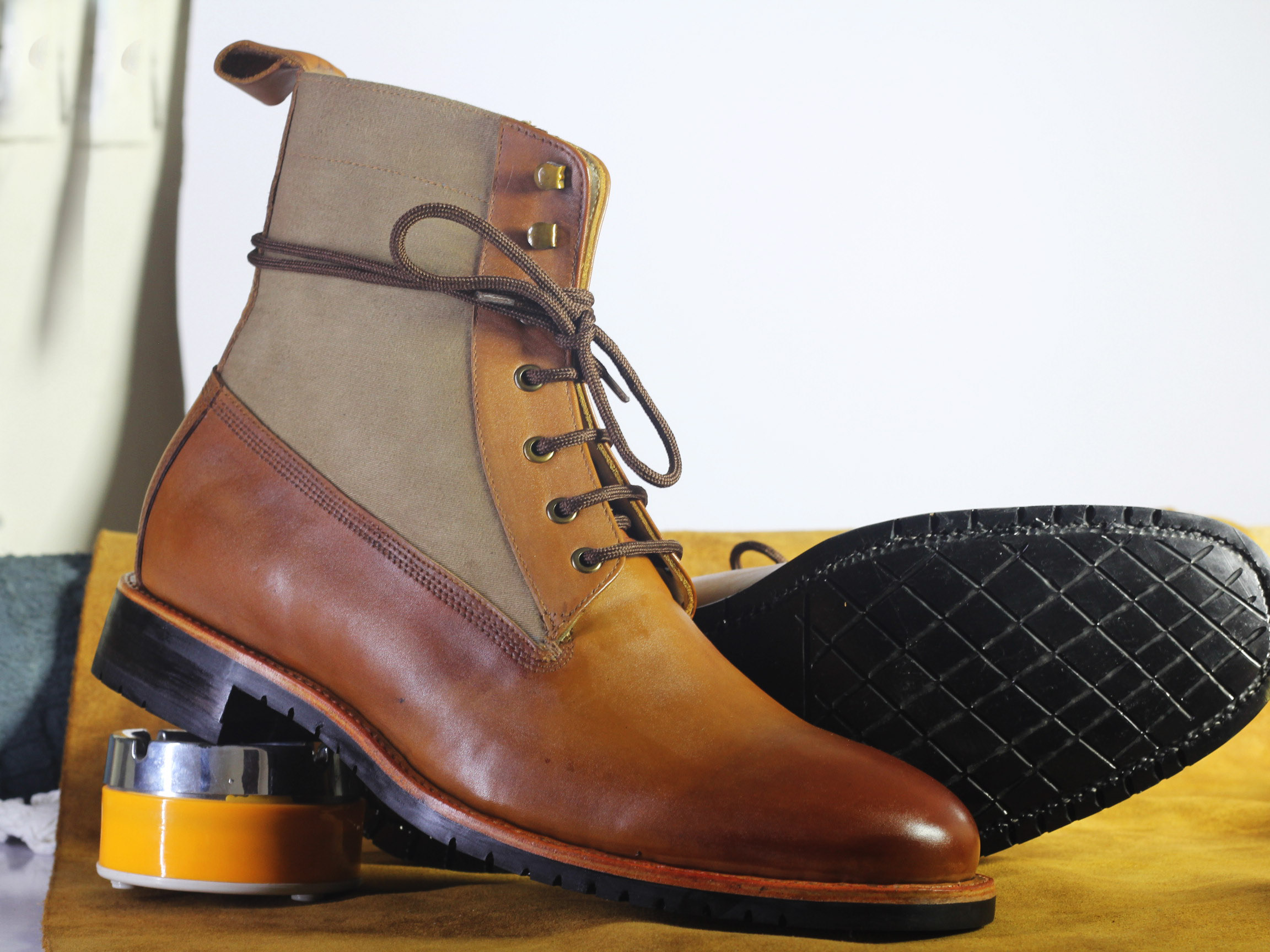 Two Tone Tan Lace Up Ankle High Oxford Leather Suede Boot