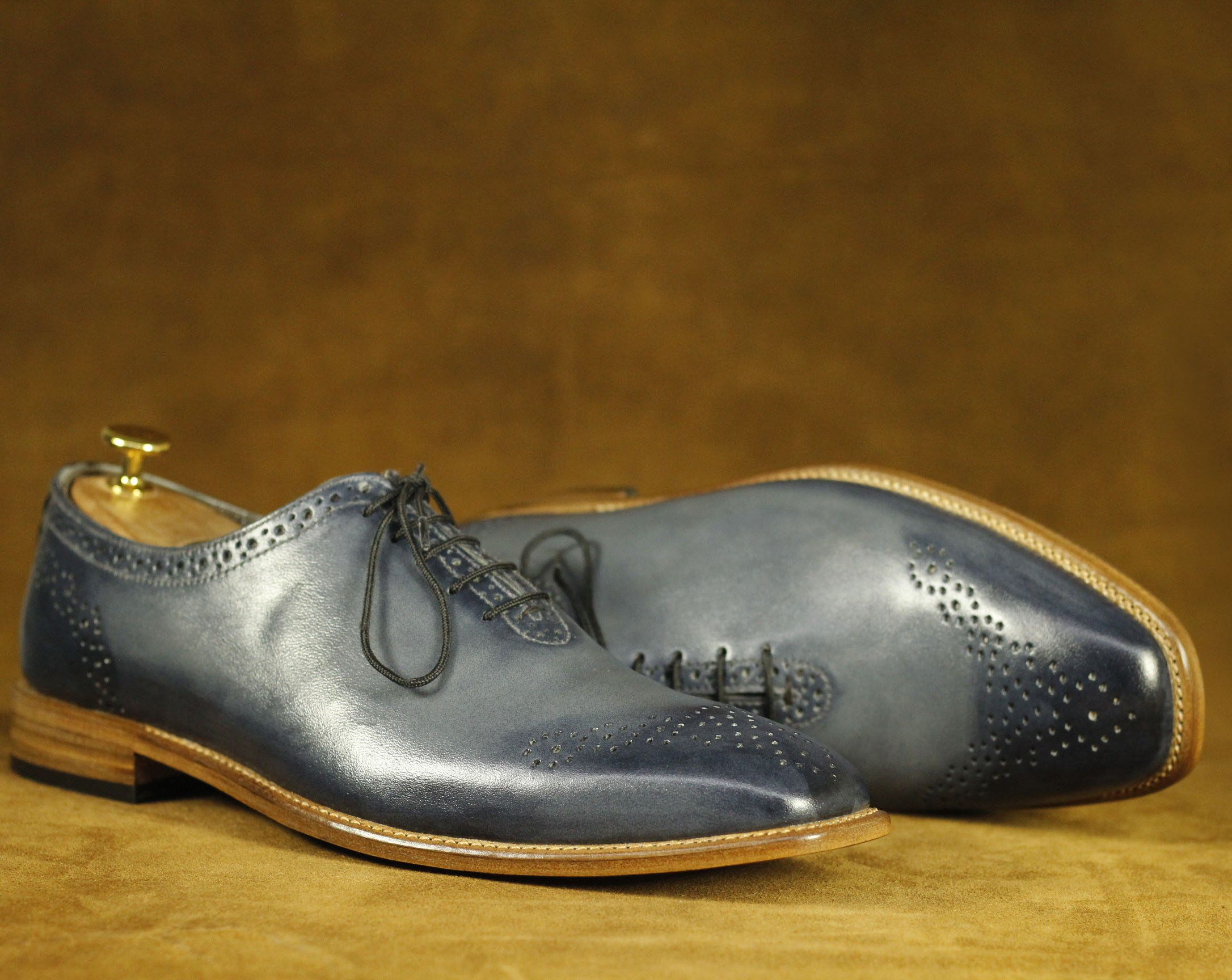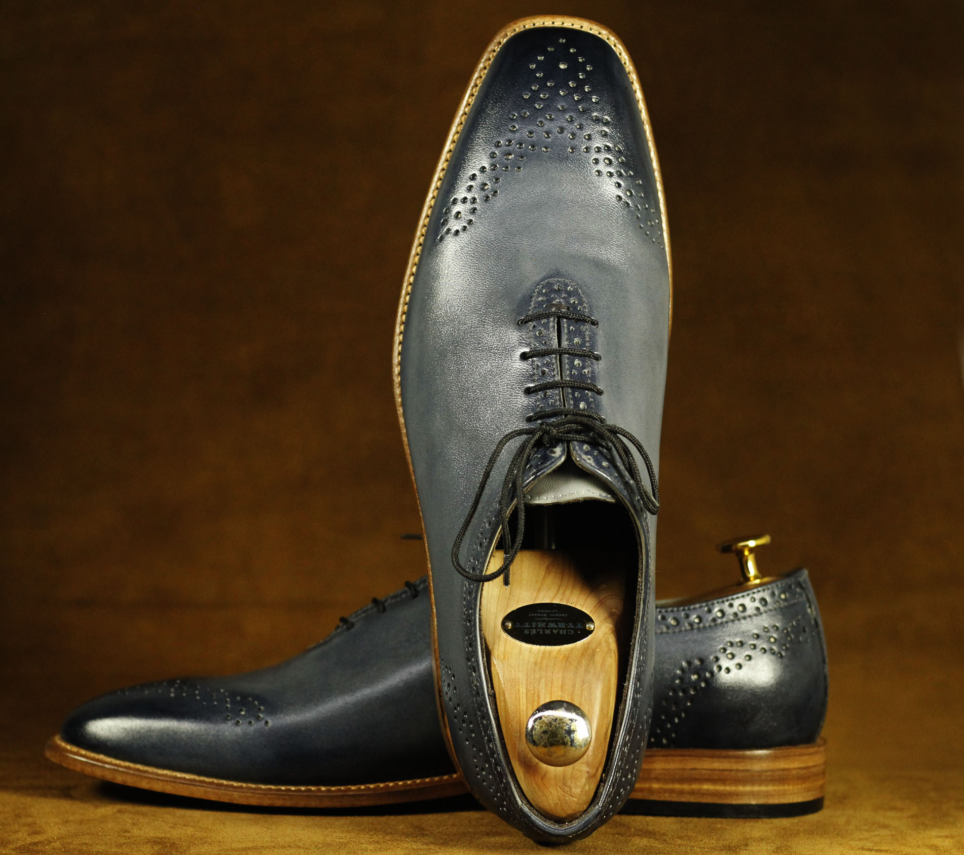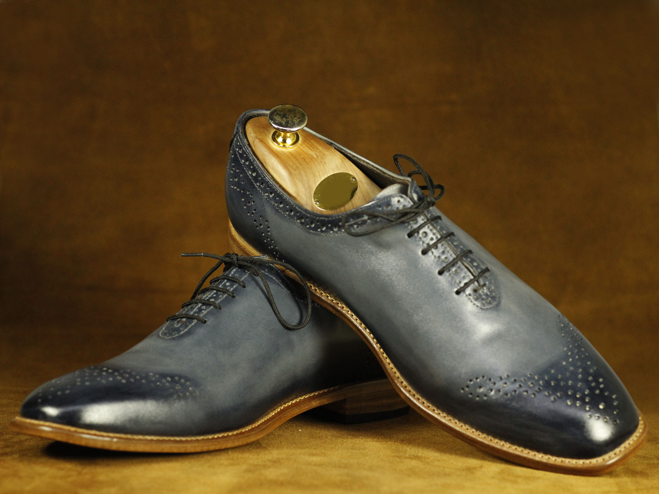 Men's Formal Dress Gray Black Lace Up Brogue Leather Shoes