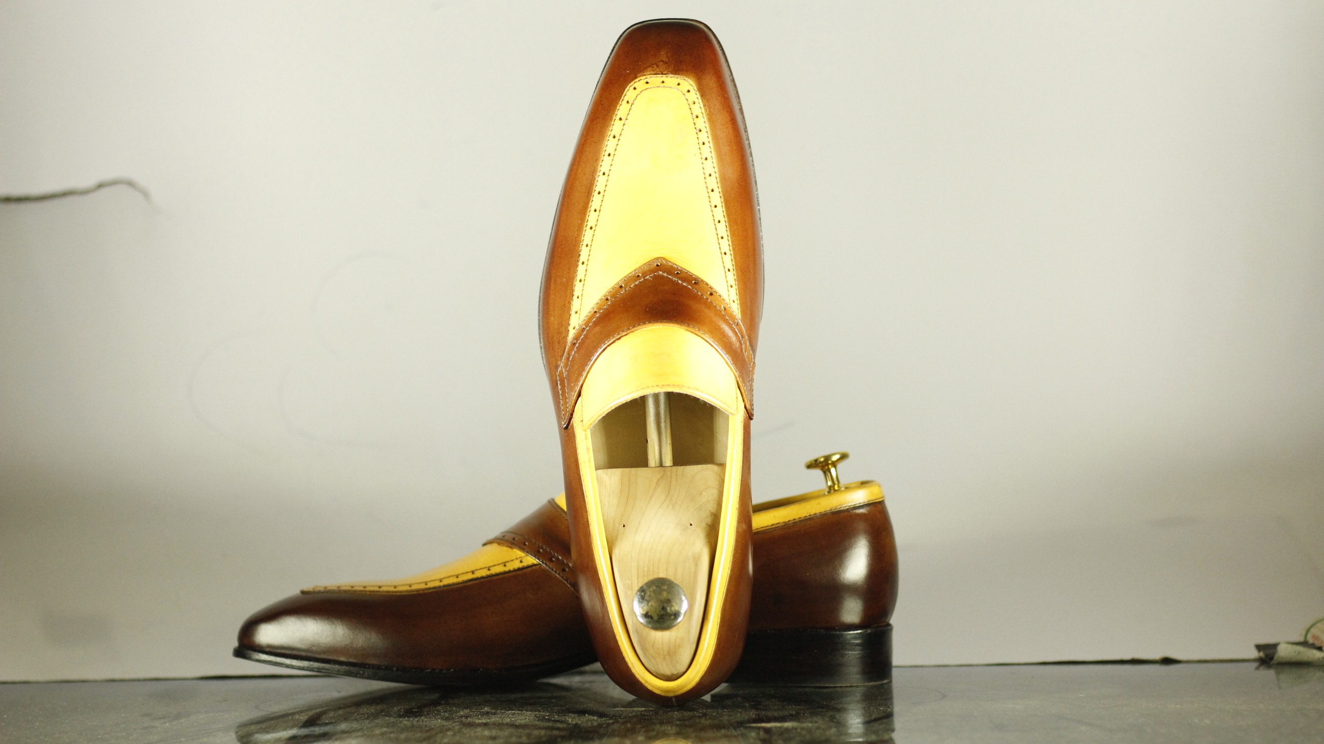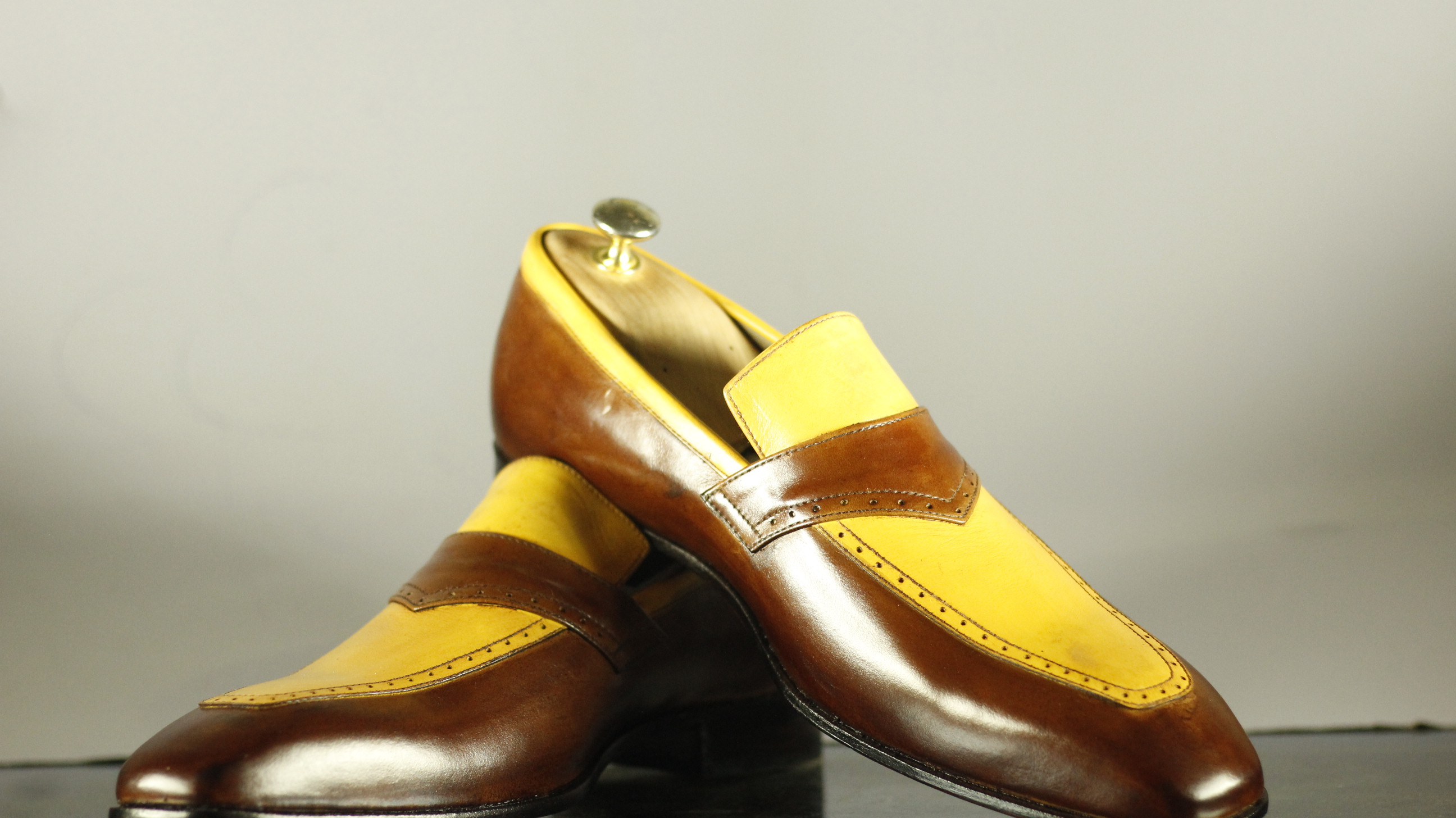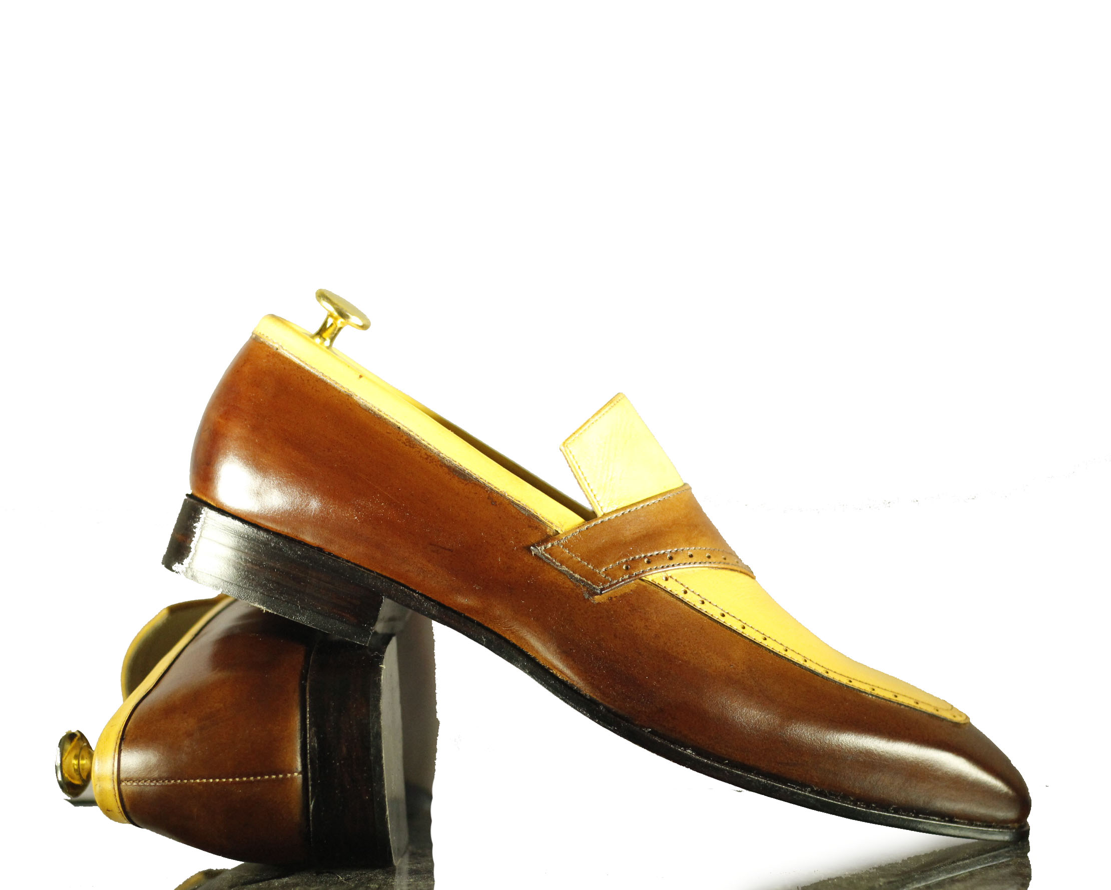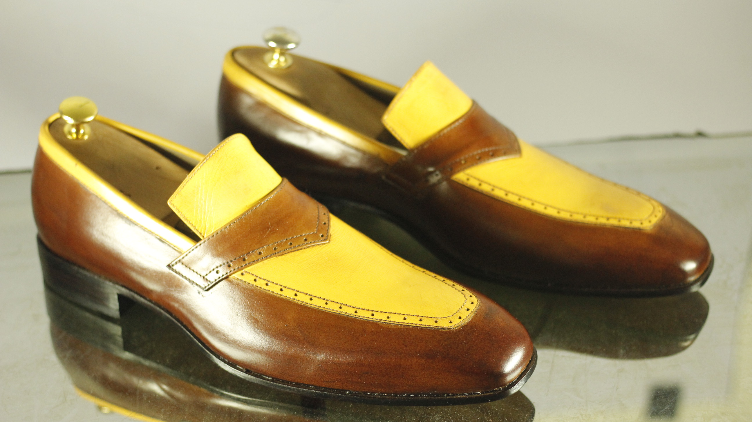 Two Tone Yellow & Brown Square Toe Slip On Loafers Shoes
