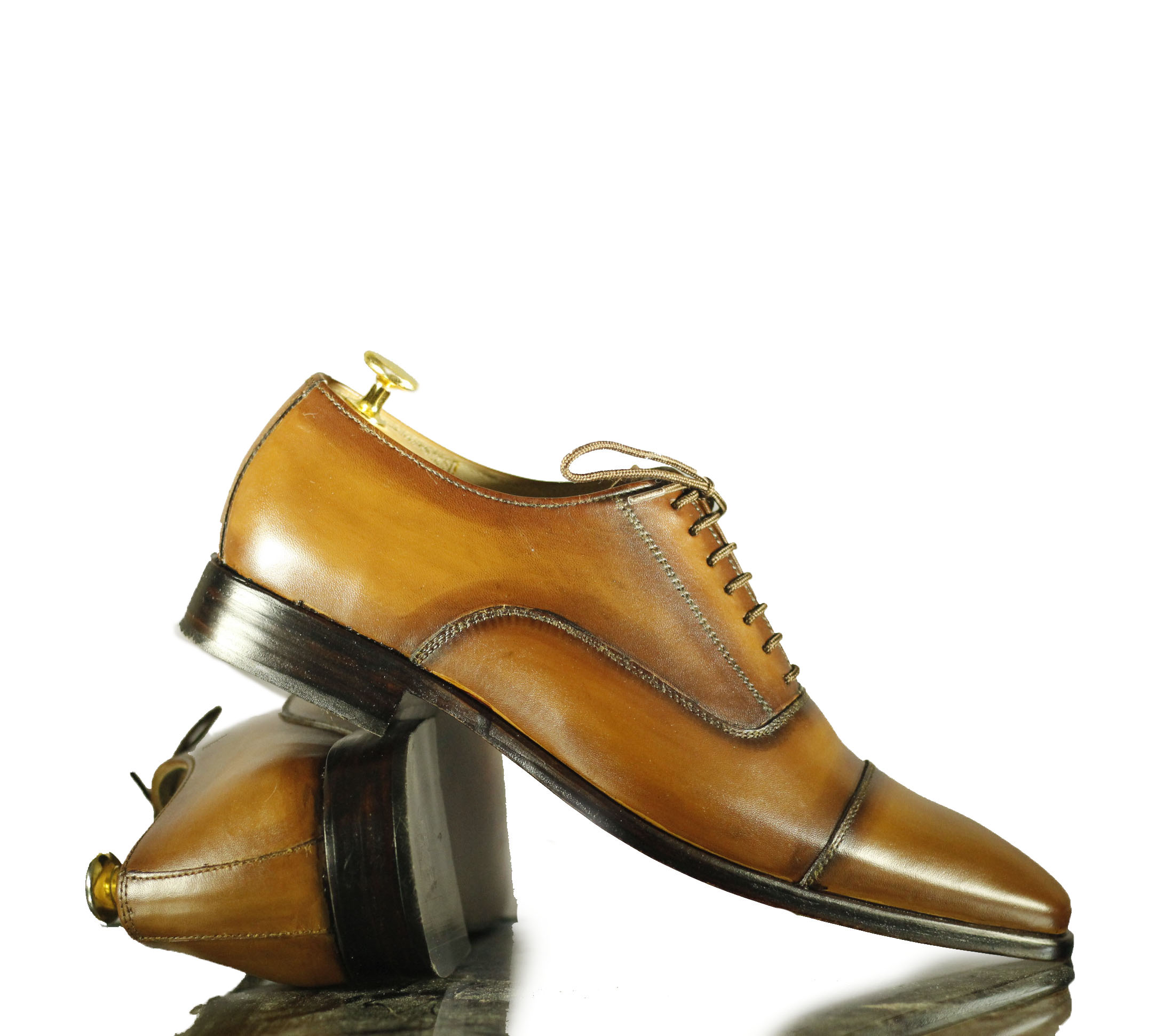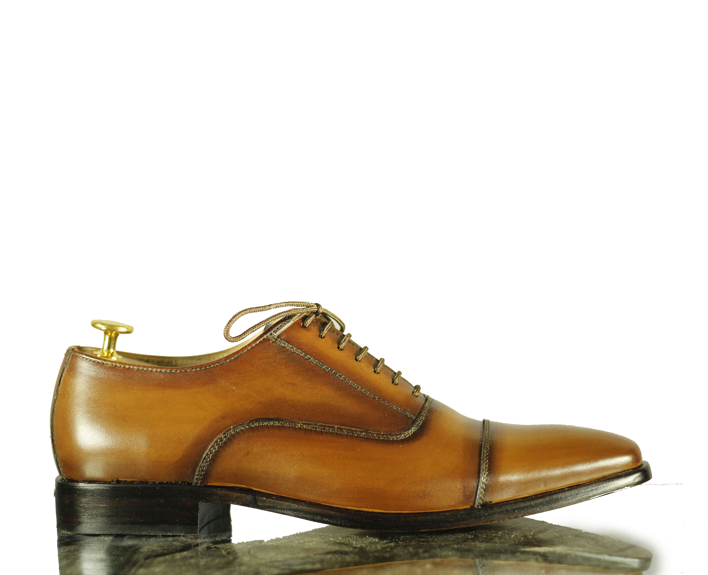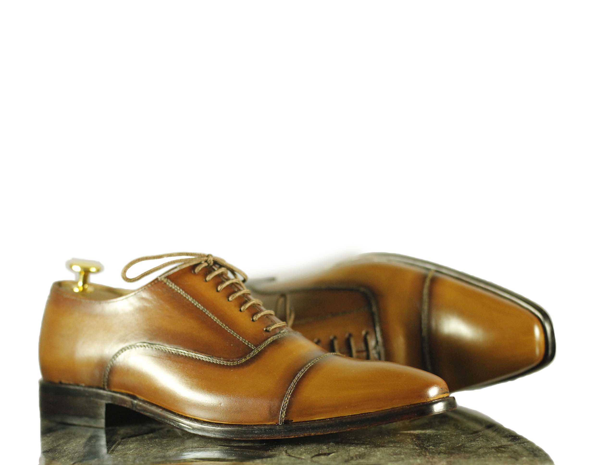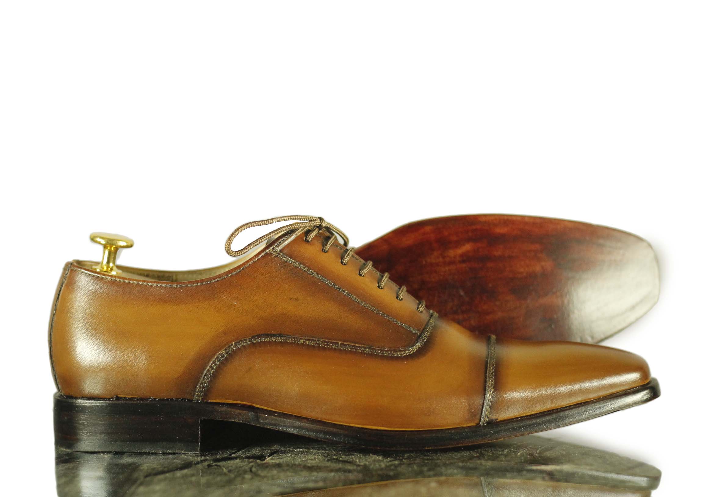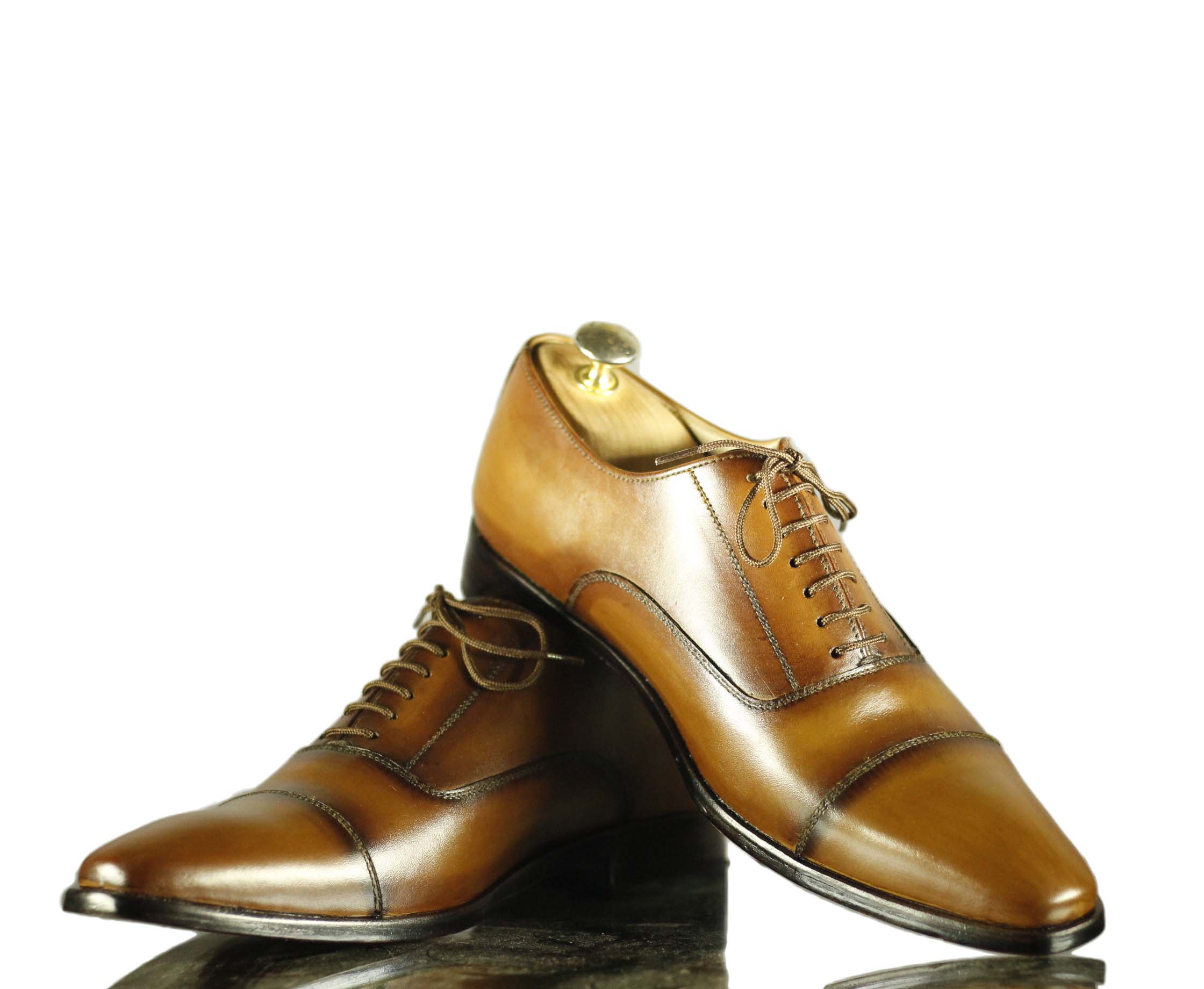 Tobacco Brown Lace up Cap Toe Leather Shoes