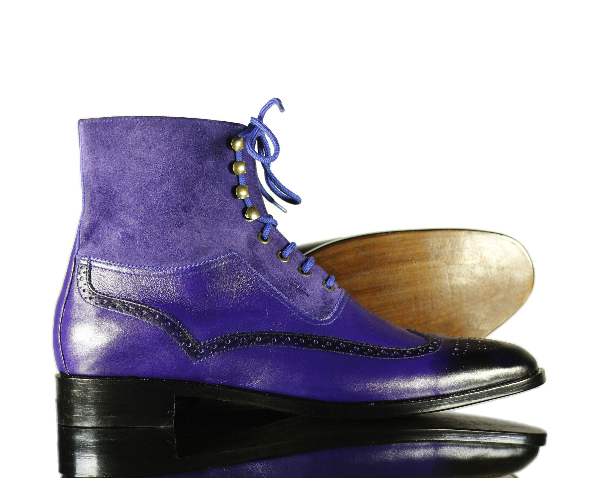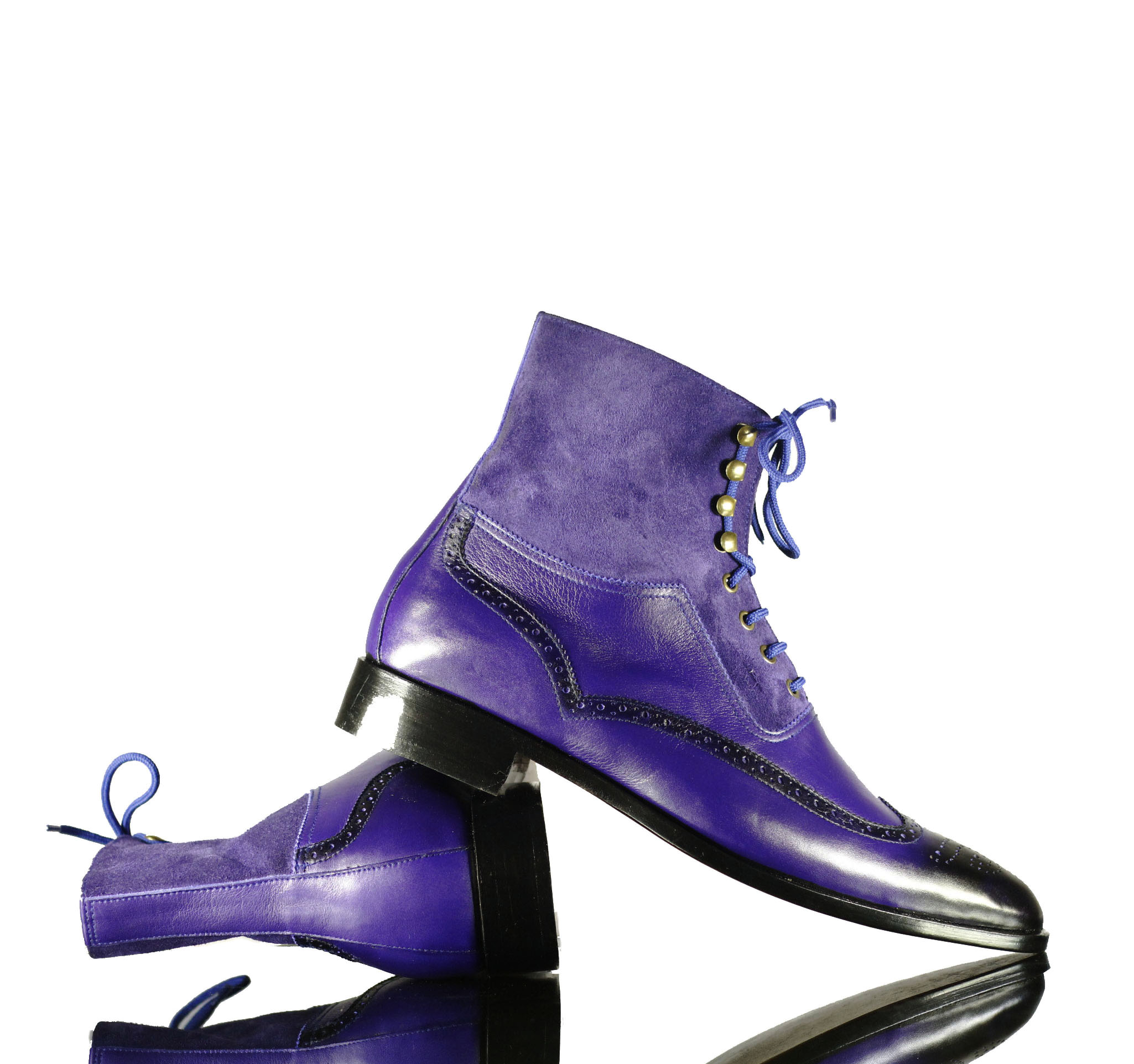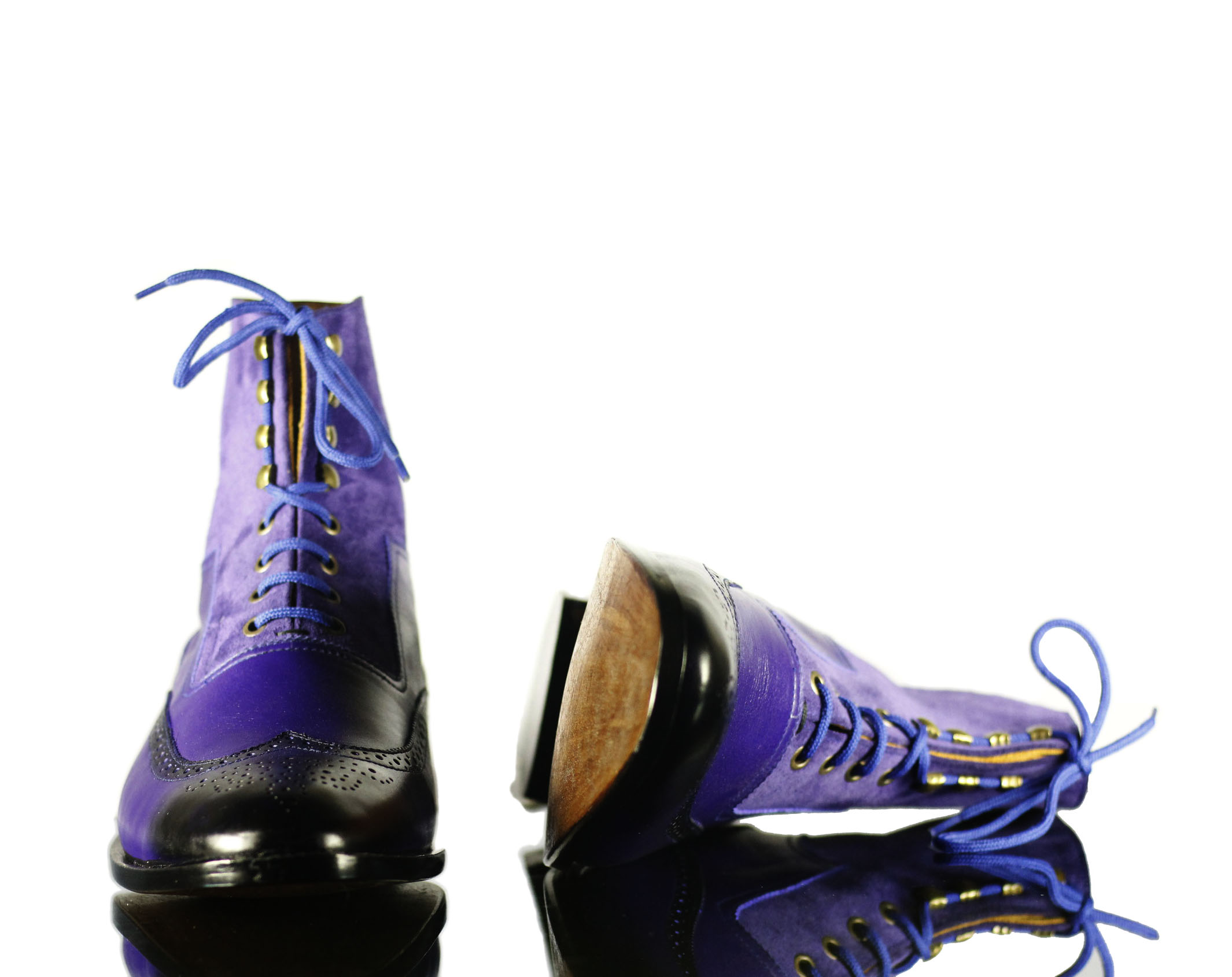 Purple Suede Wing Tip Lace Ankle High Leather Boot