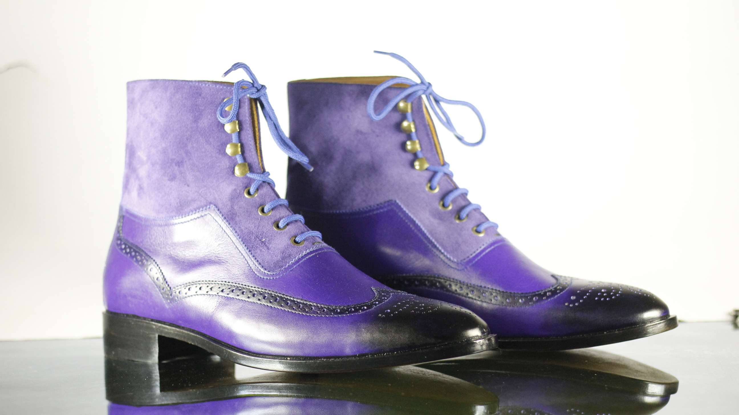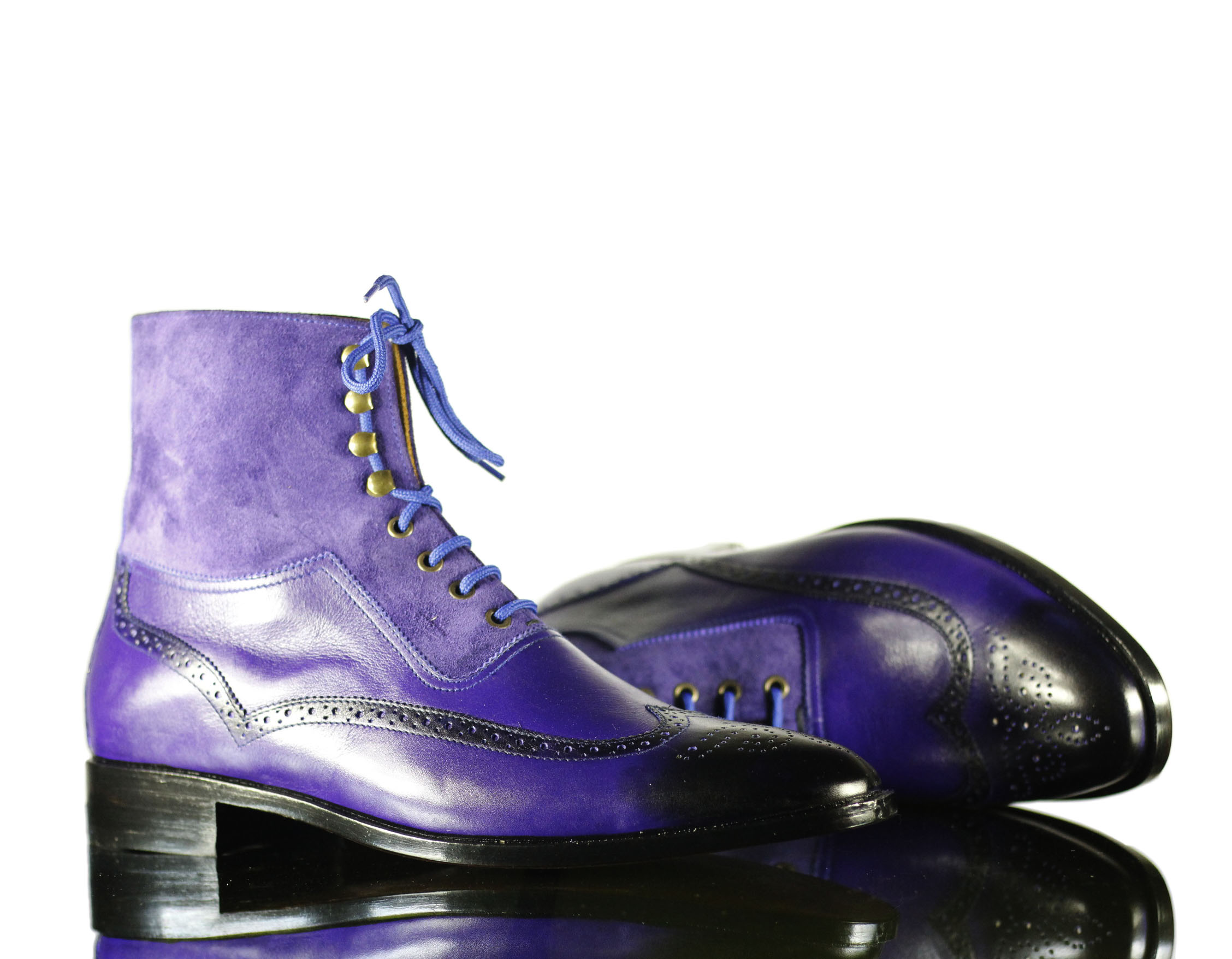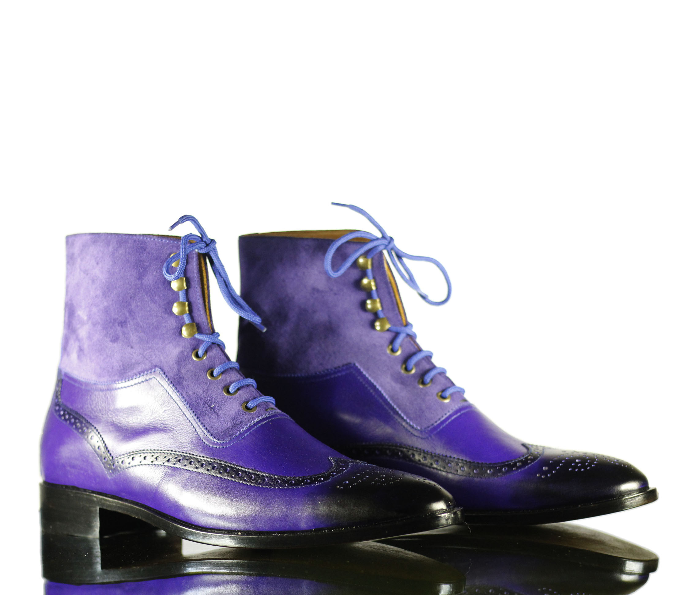 Purple Suede Wing Tip Lace Ankle High Leather Boot