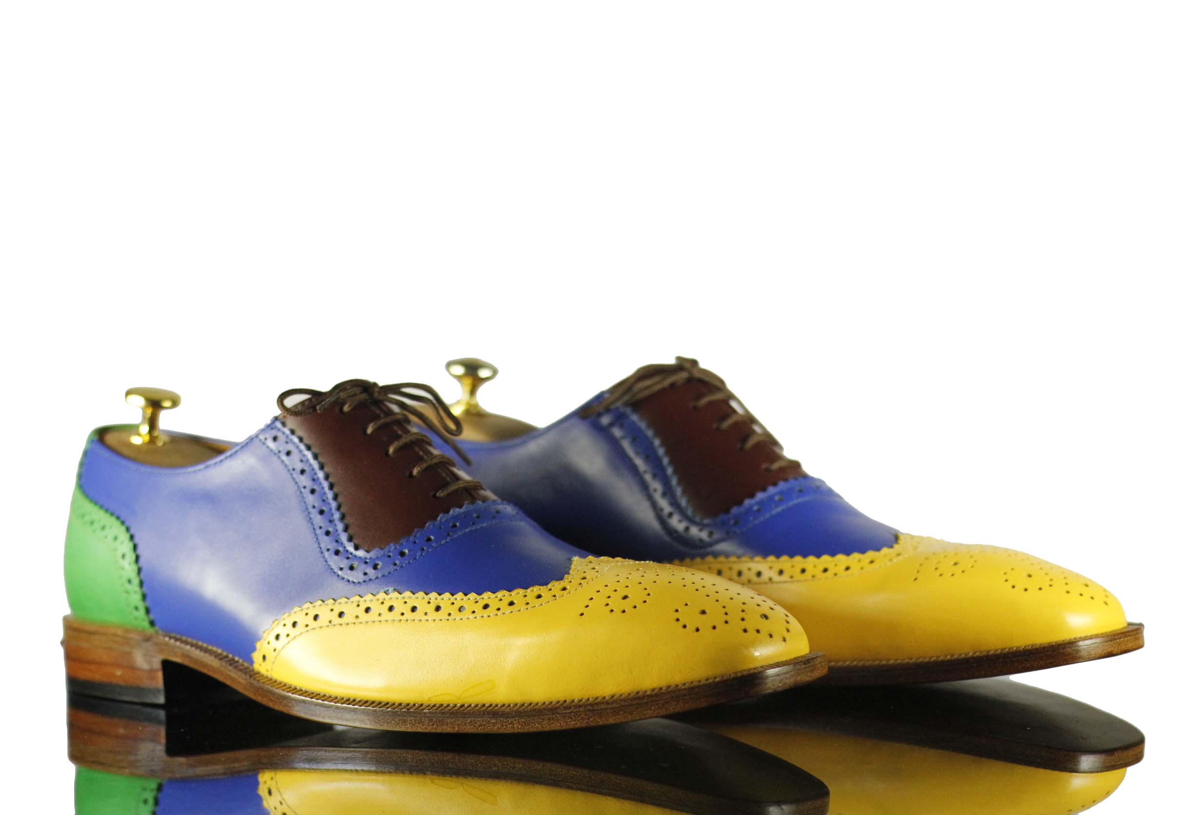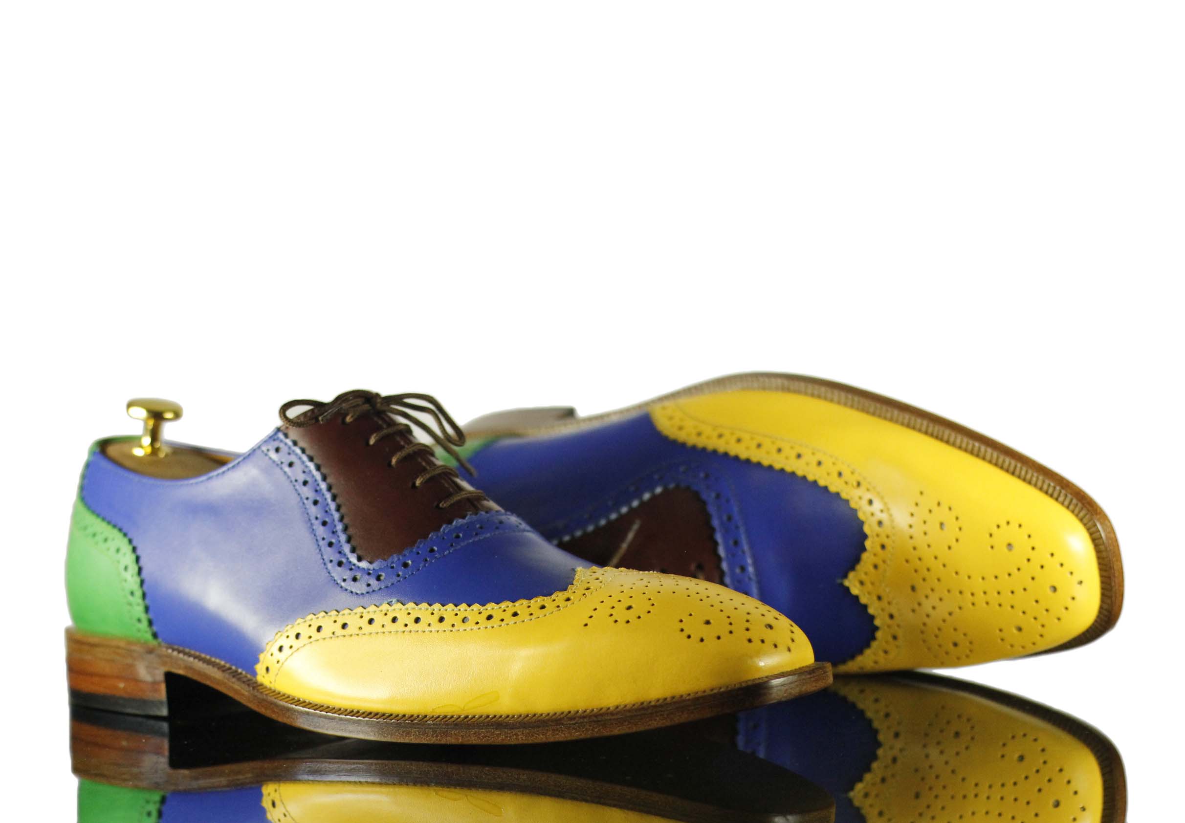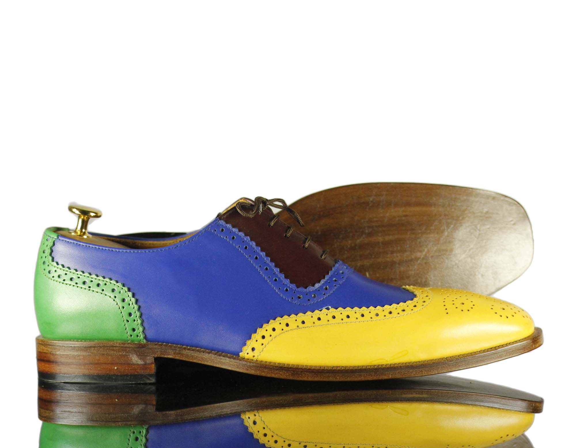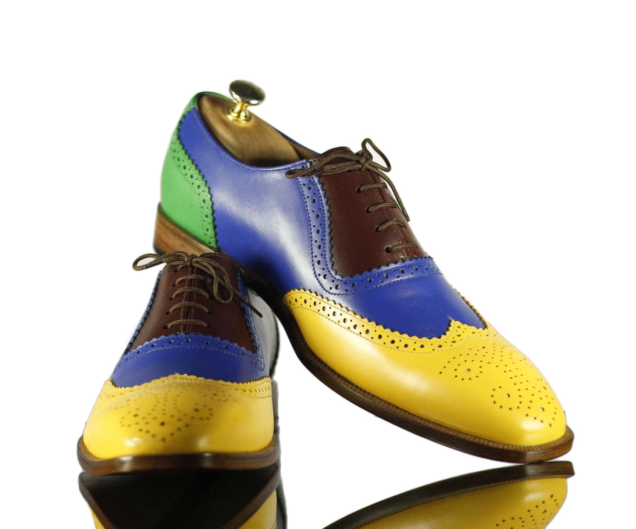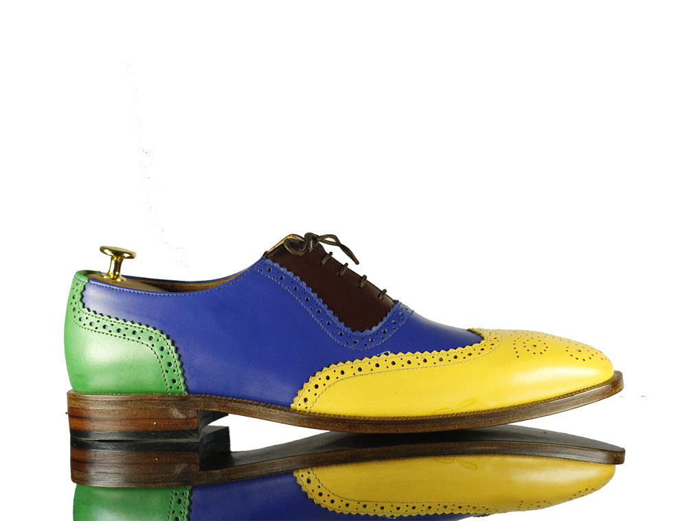 Stylish Men's Multi Color Lace Up Wing Tip Brogue Leather Shoes