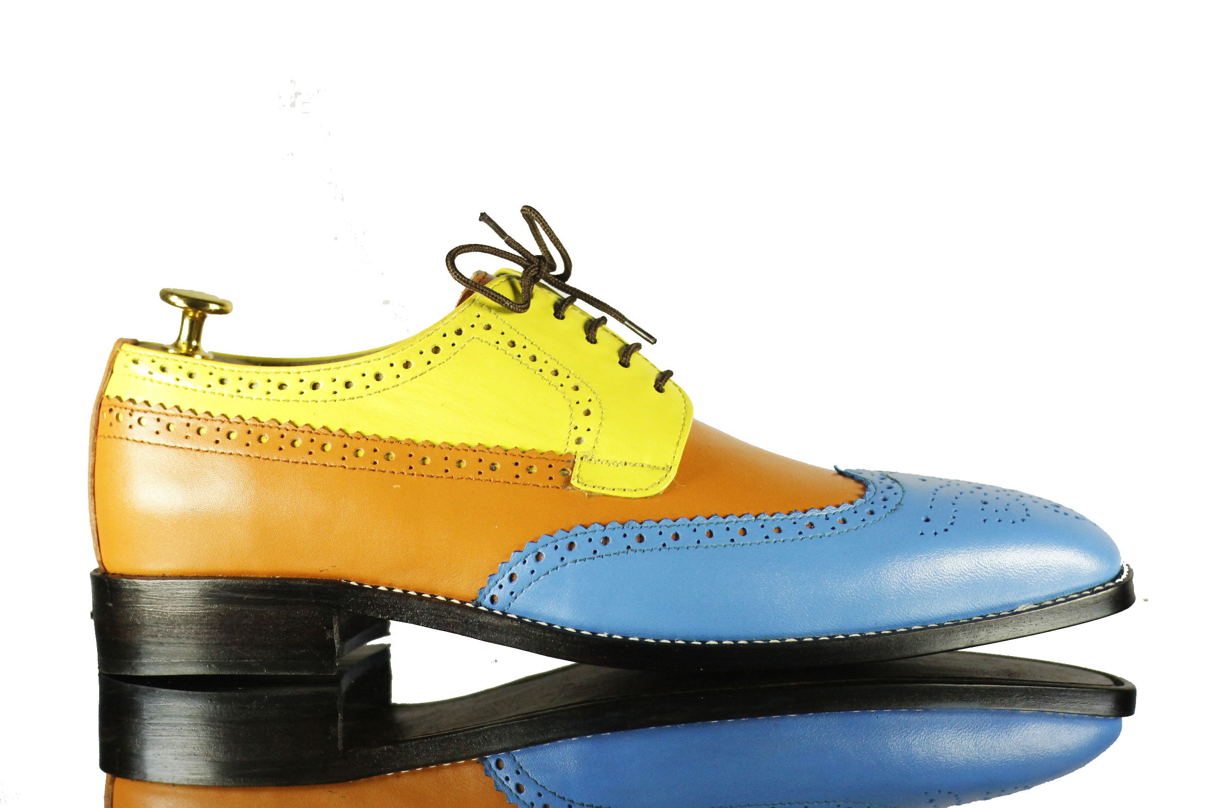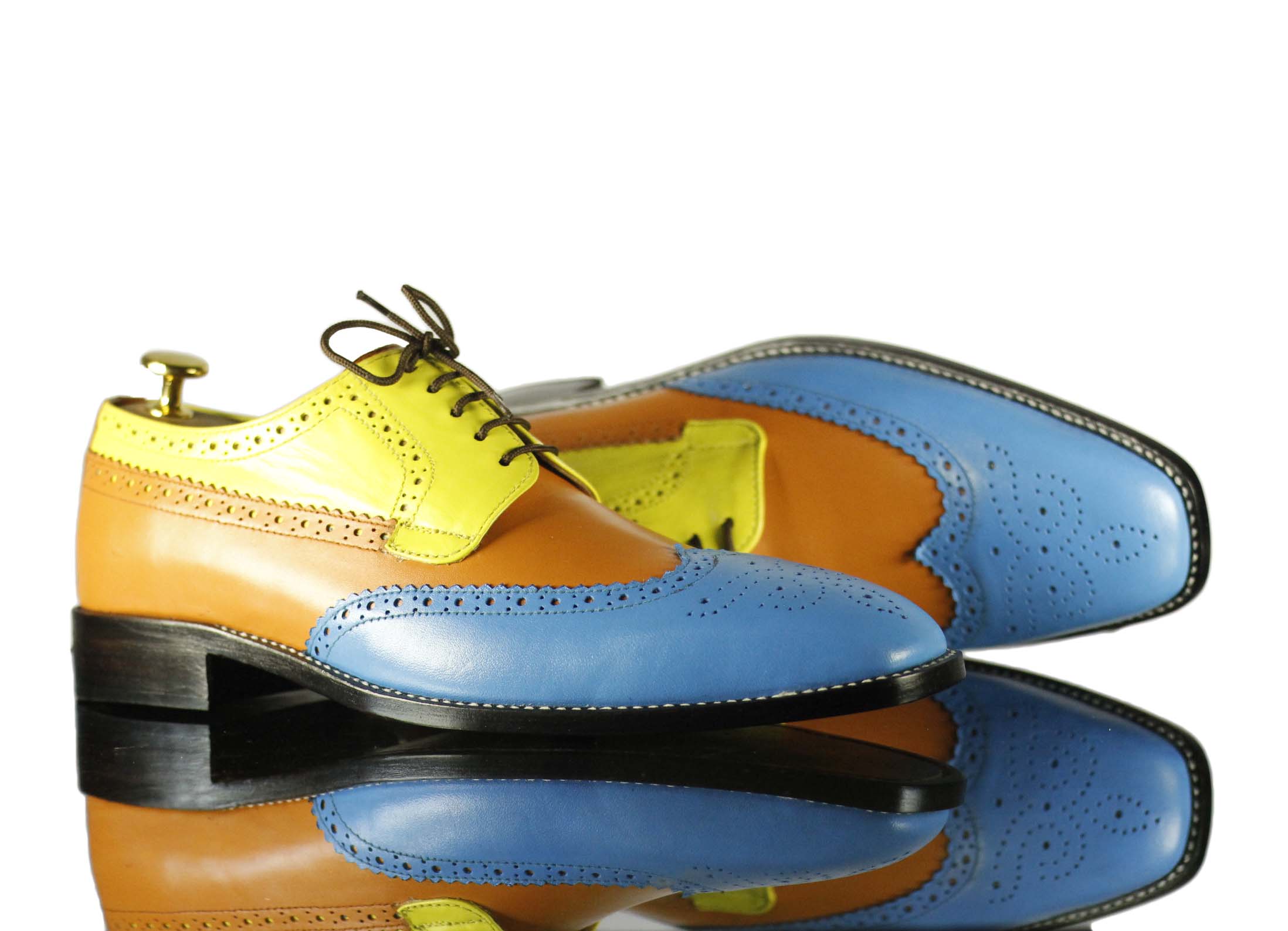 Beautiful Multi Color Wing Tip Brogue Lace Leather Shoes