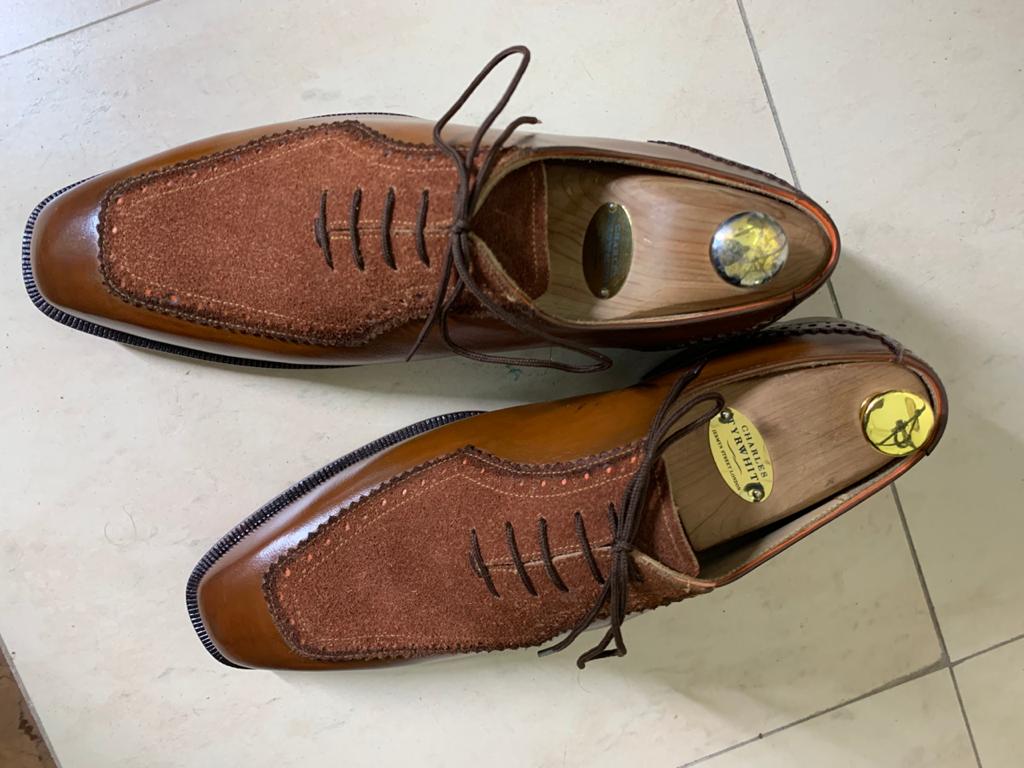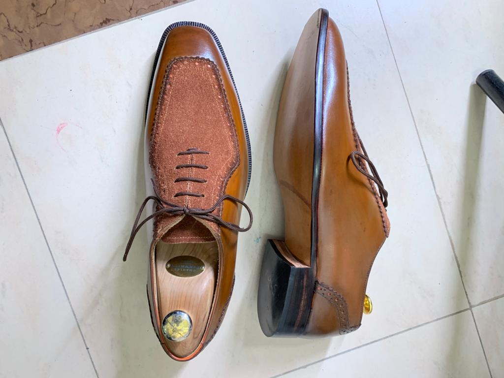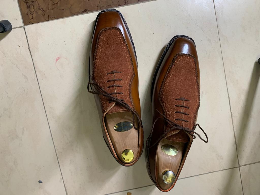 Square Toe Lace Up Brown Leather Suede Men's Shoes