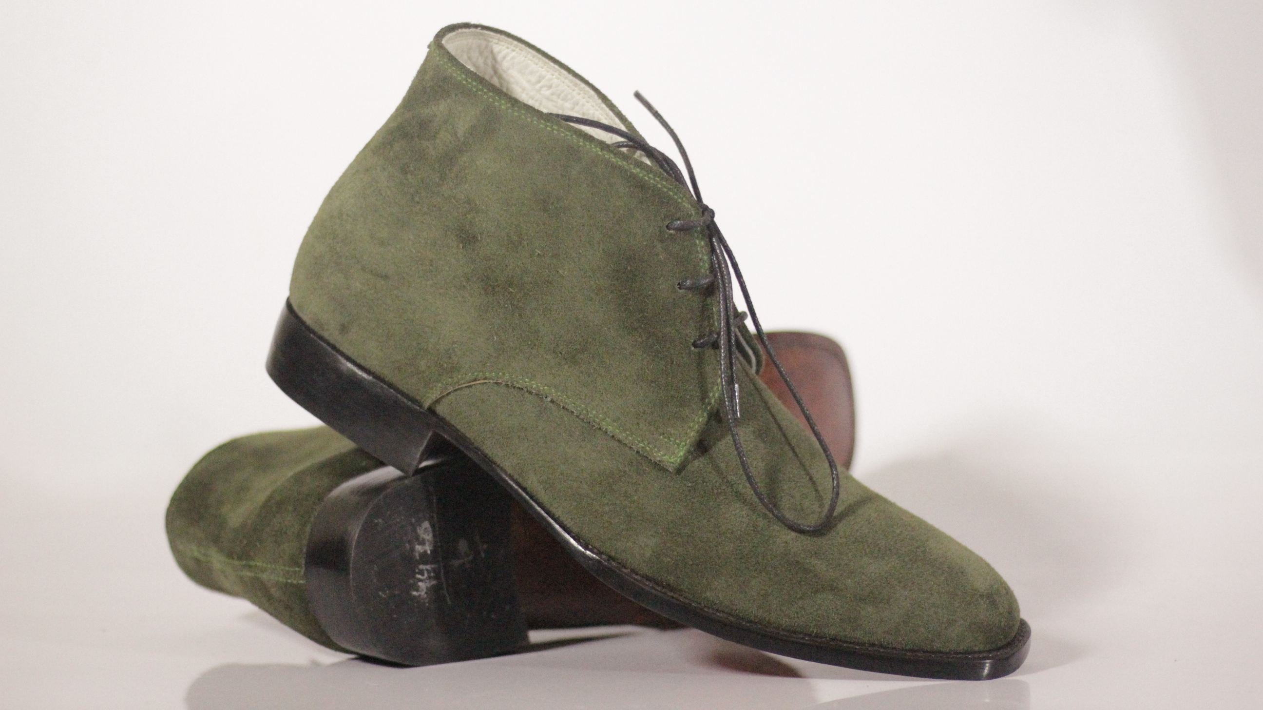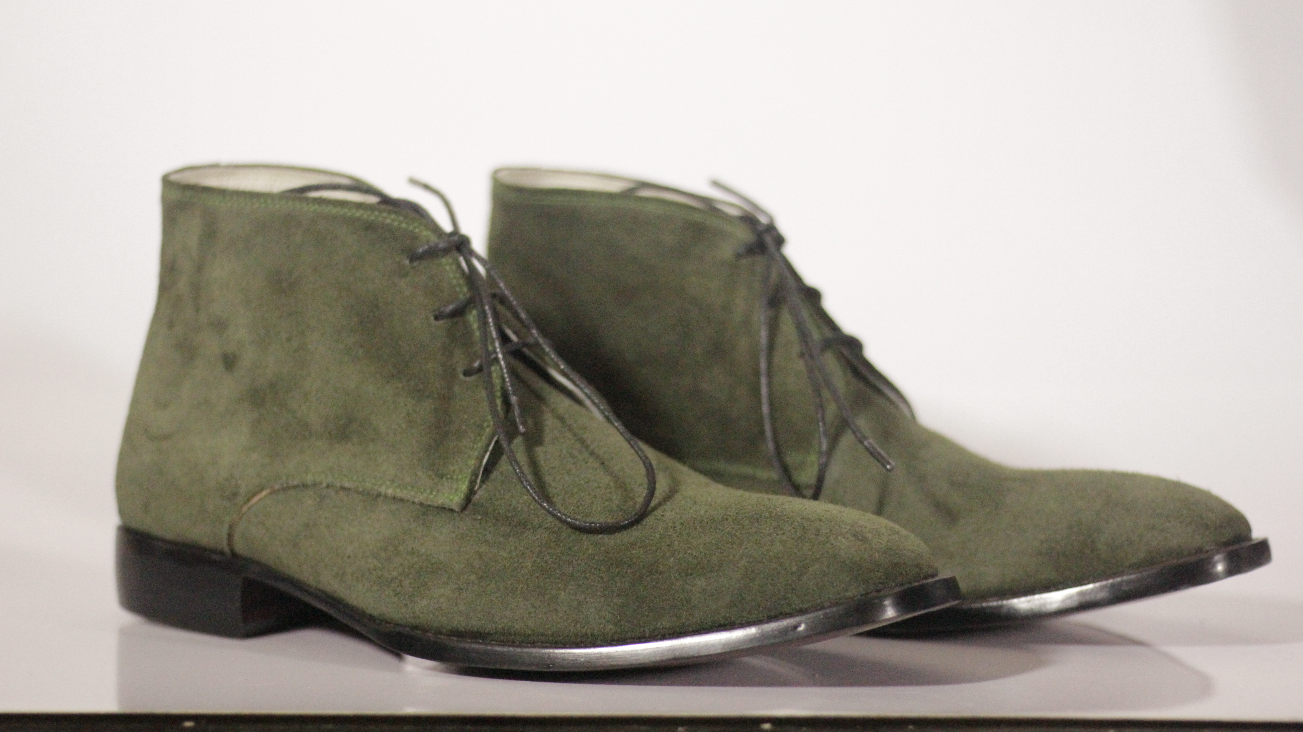 Suede Chukka Lace Up Olive Green Leather Half Ankle Boot