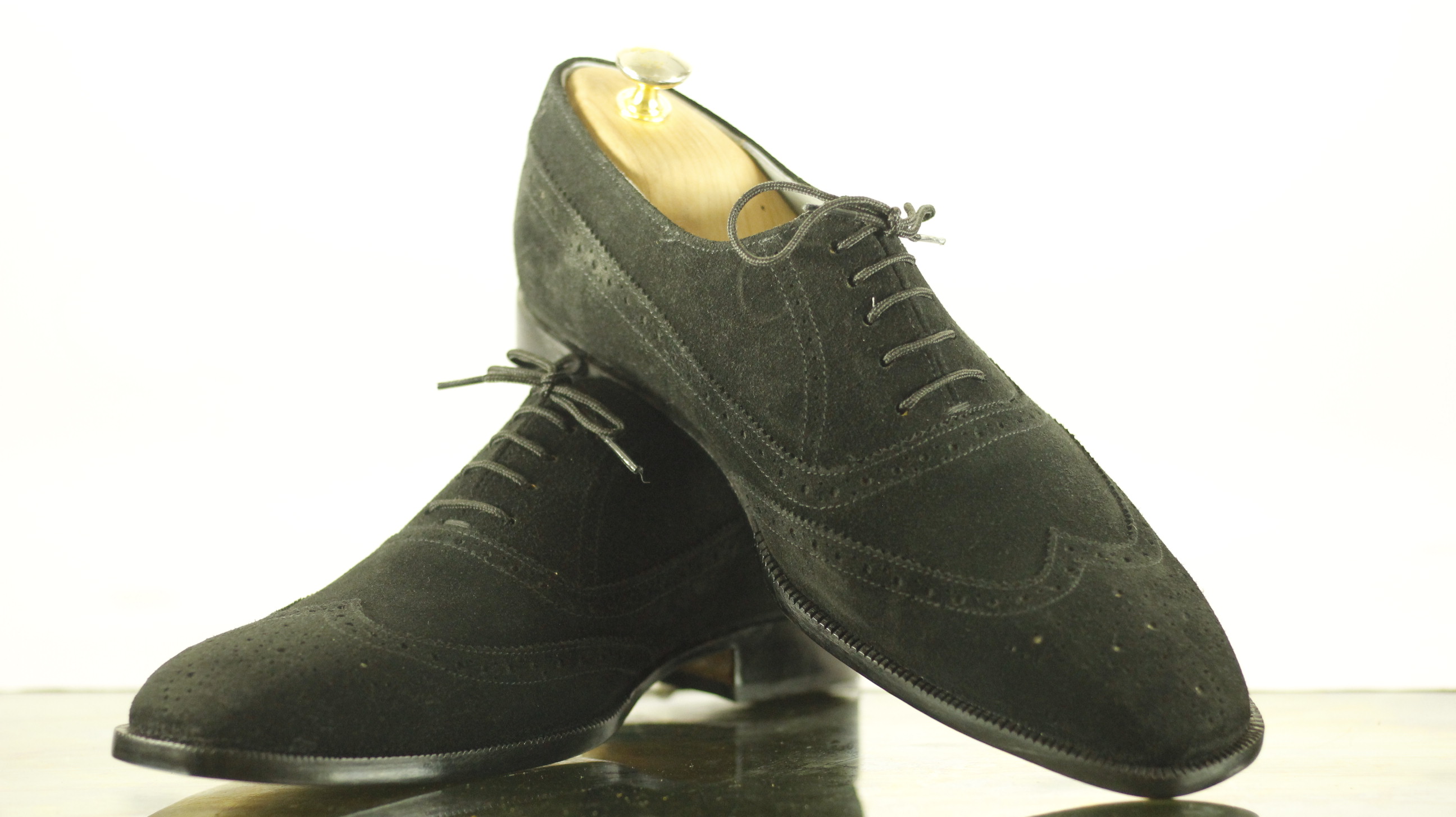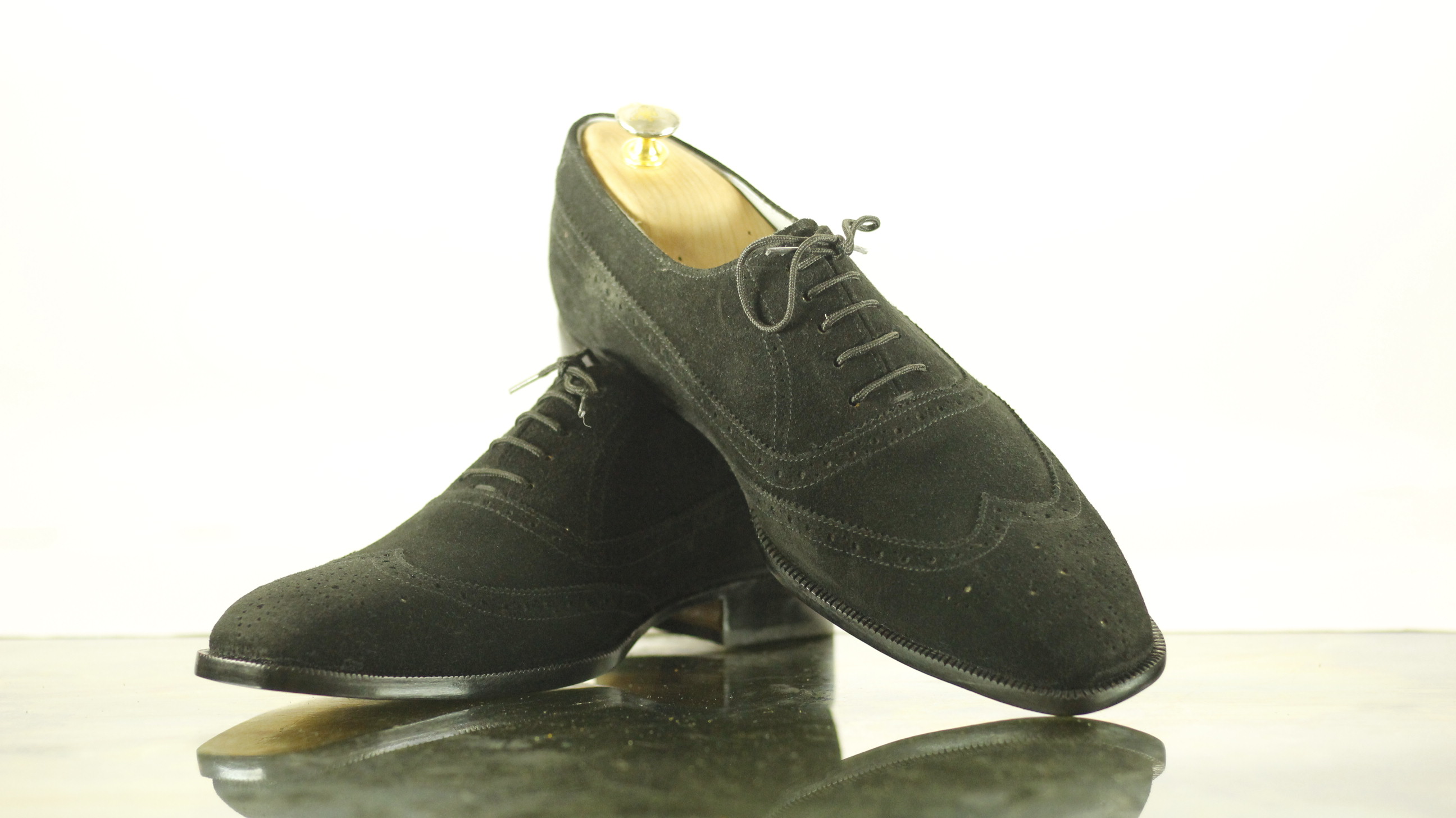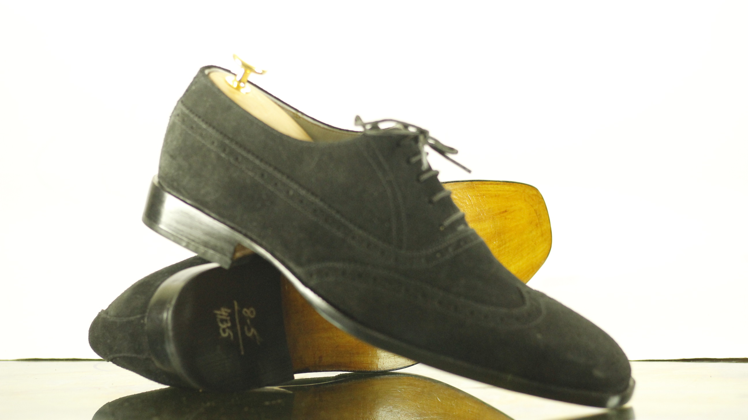 Wing Tip Black Leather Suede Brogue Lace up Shoes