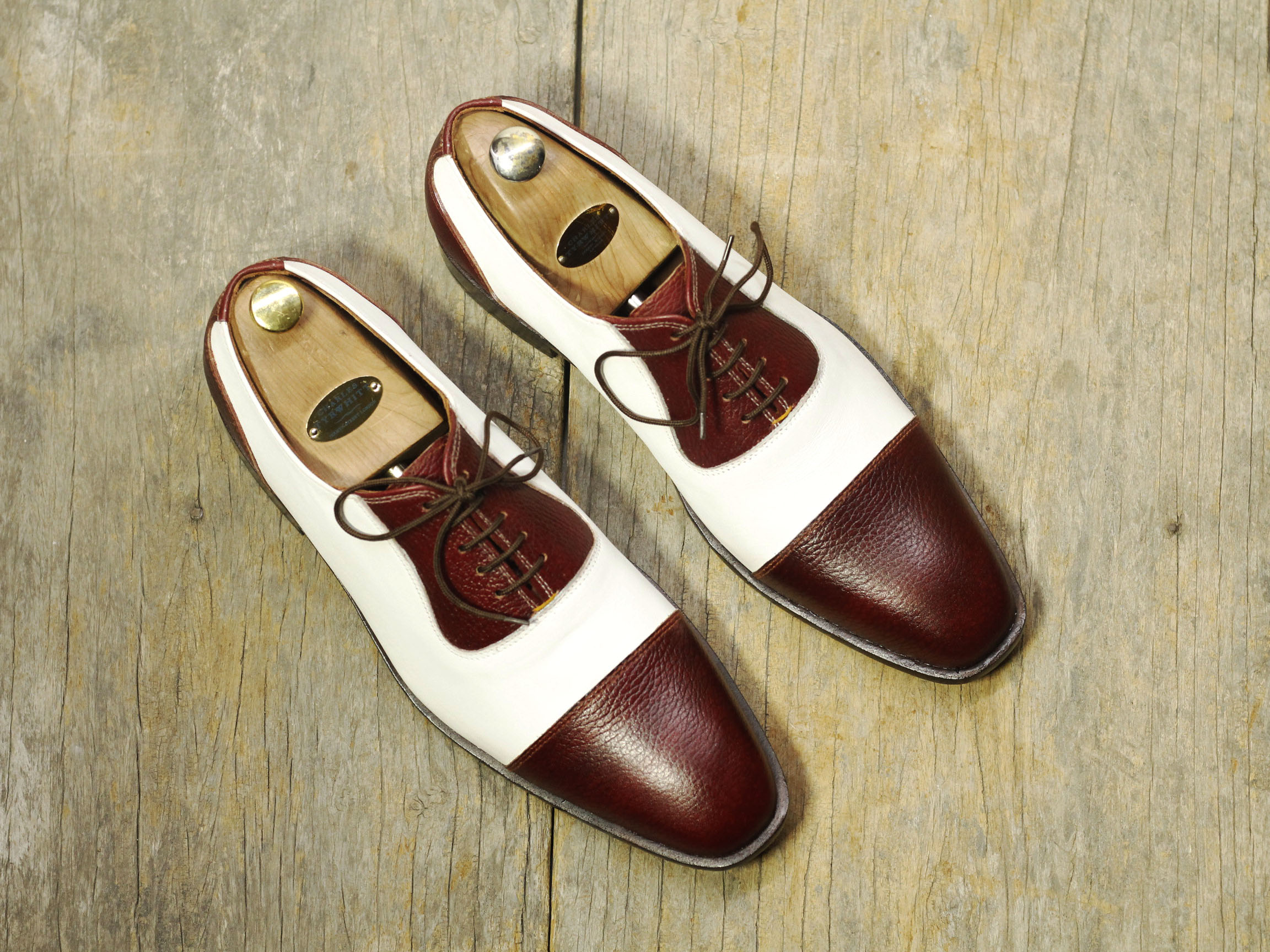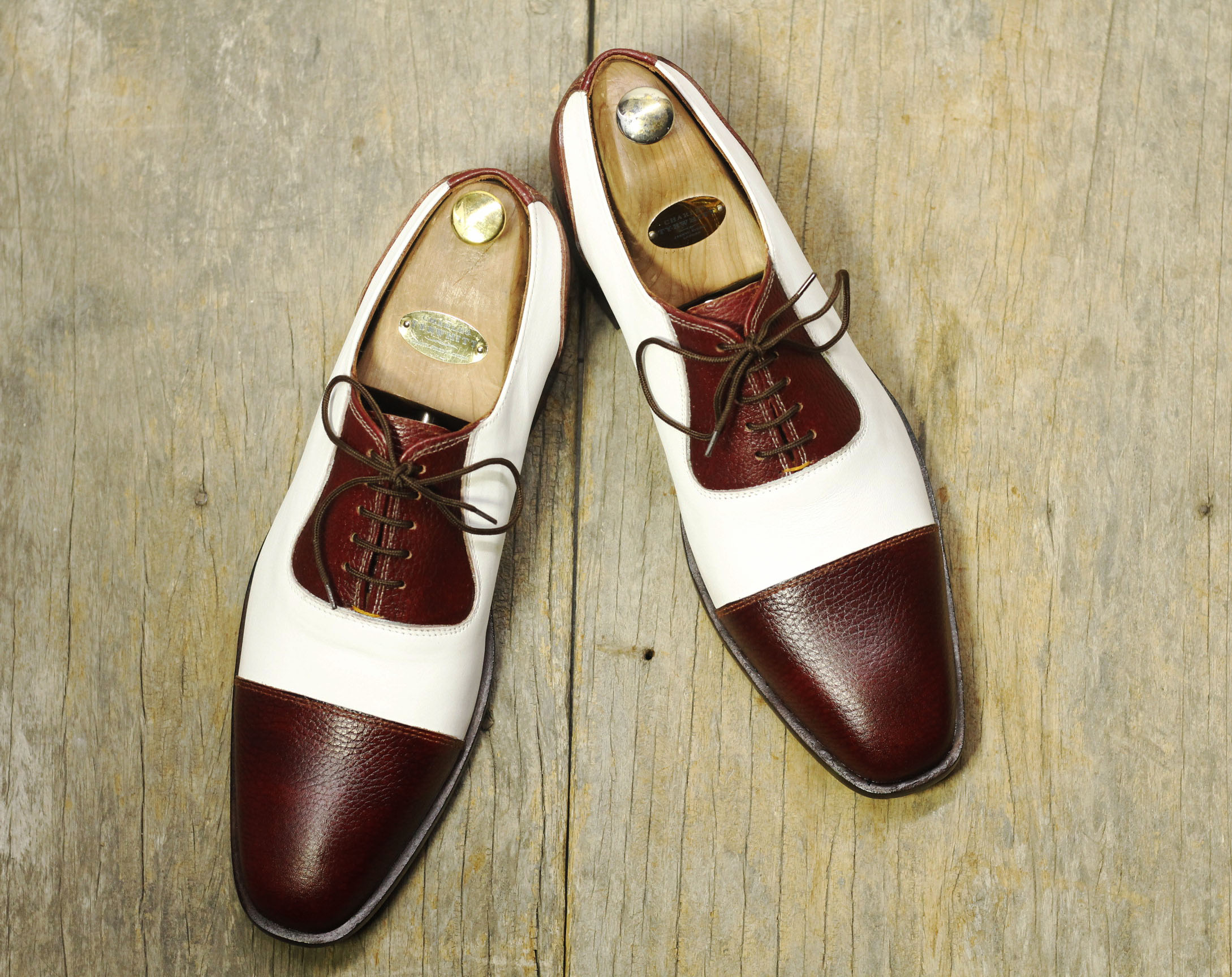 Alligator Cordovan White Cap Toe Lace Up Leather Shoes For Men