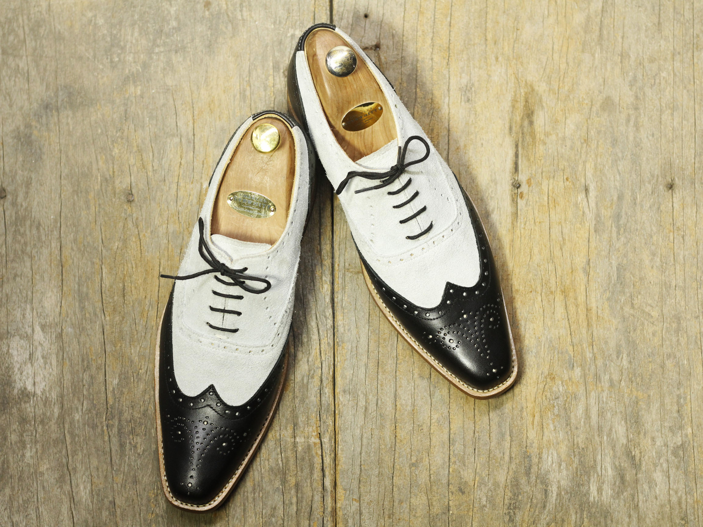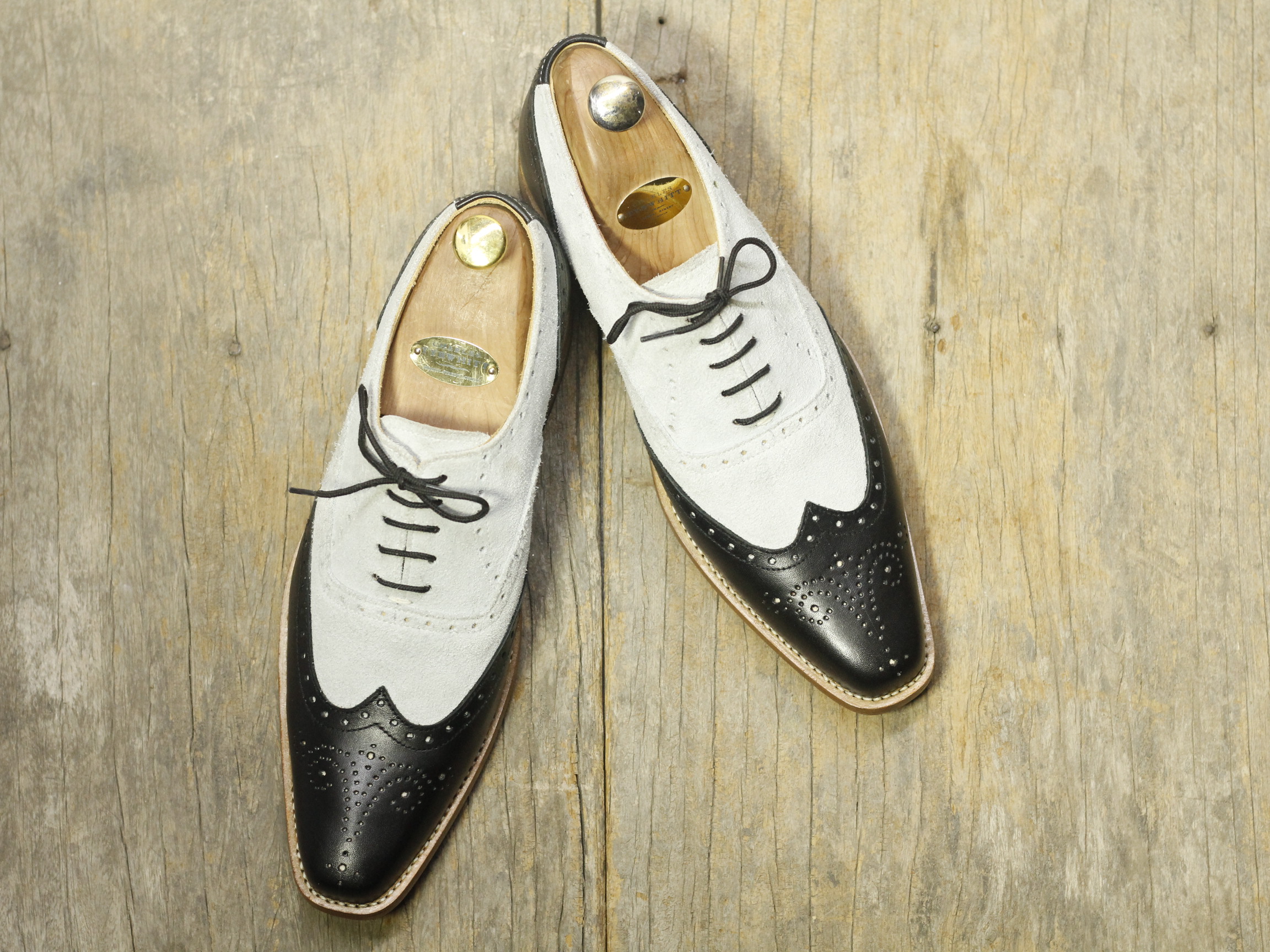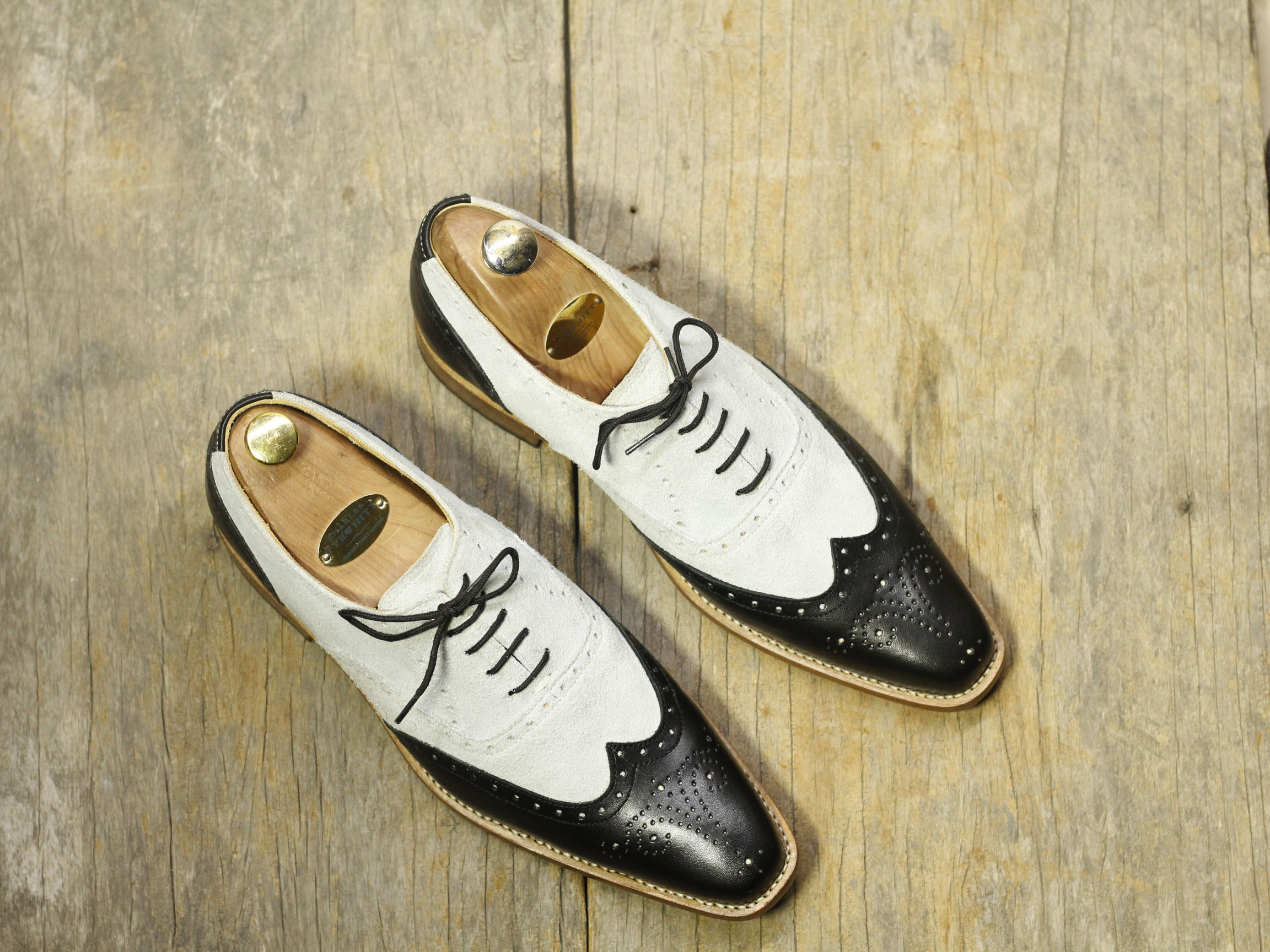 Black & White Wing Tip Brogue Lace Up Leather Shoes