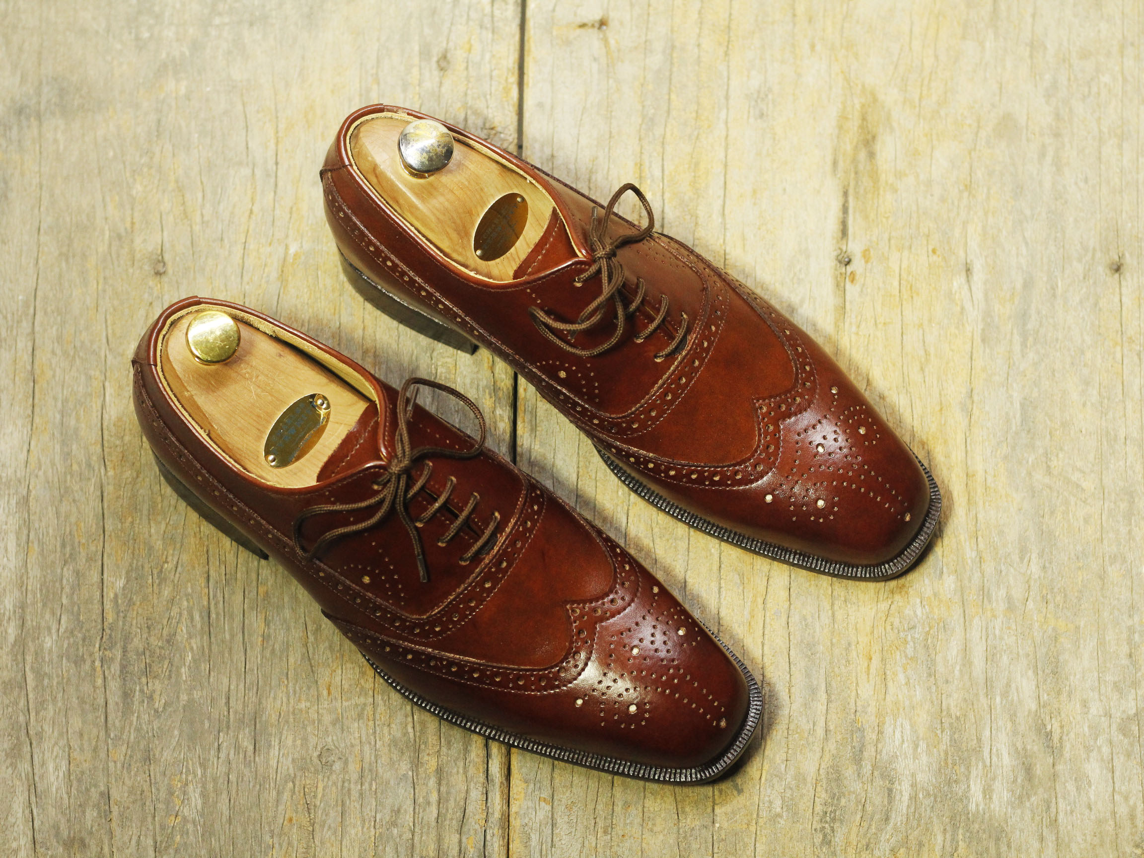Lace Up Wing Tip Brogue Cordovan Leather Shoes