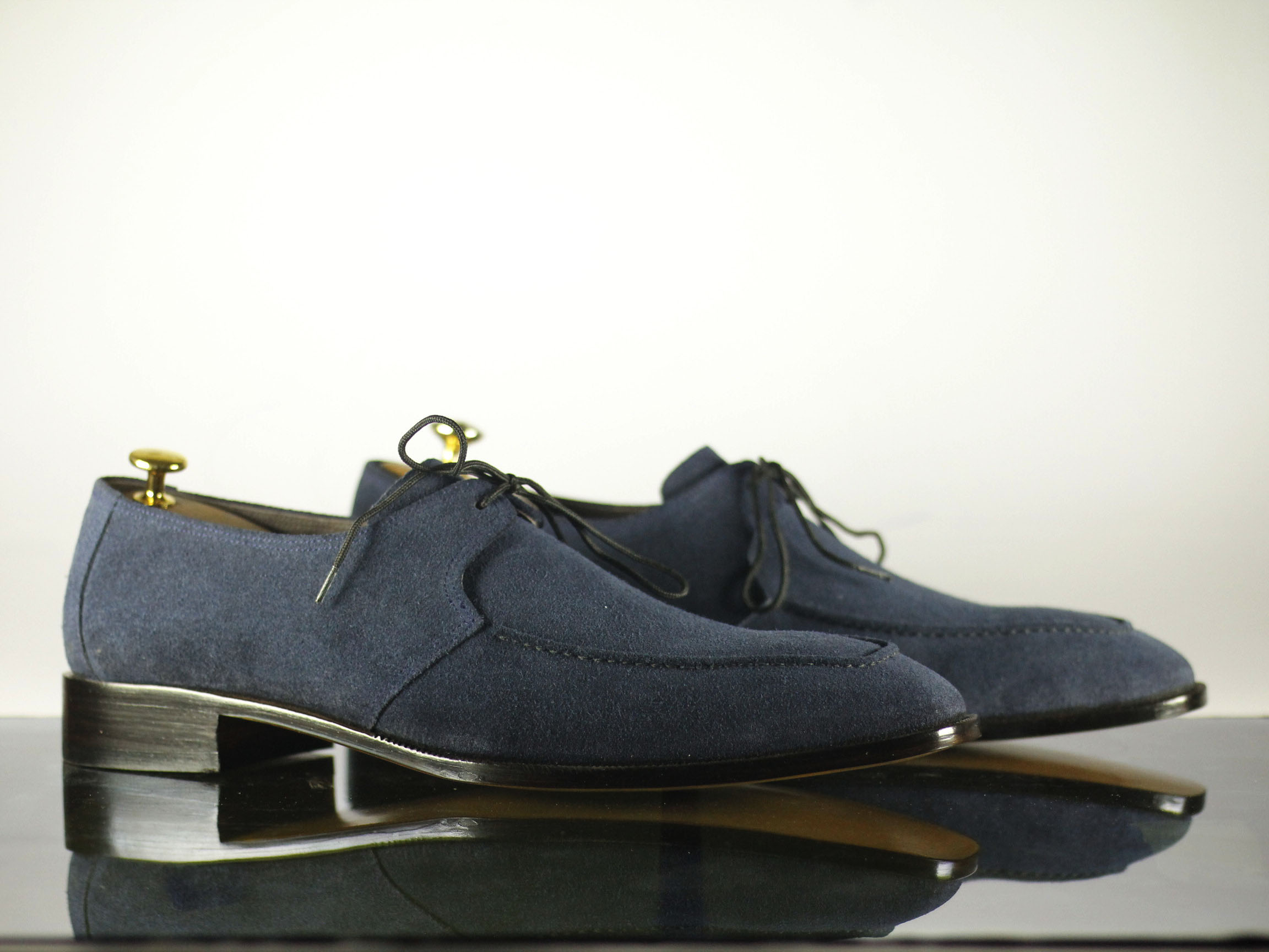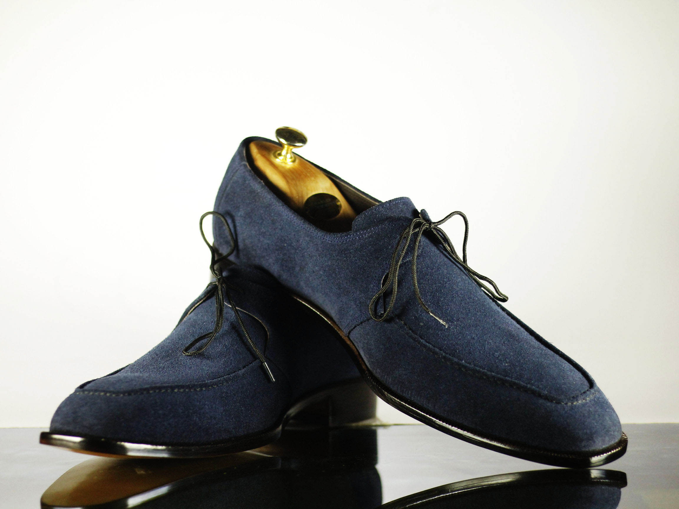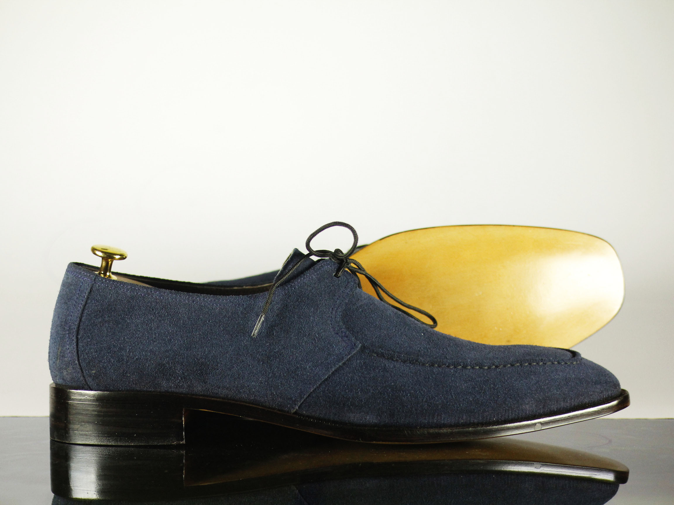 Lace Up Navy Blue Round Toe Suede Leather Shoes