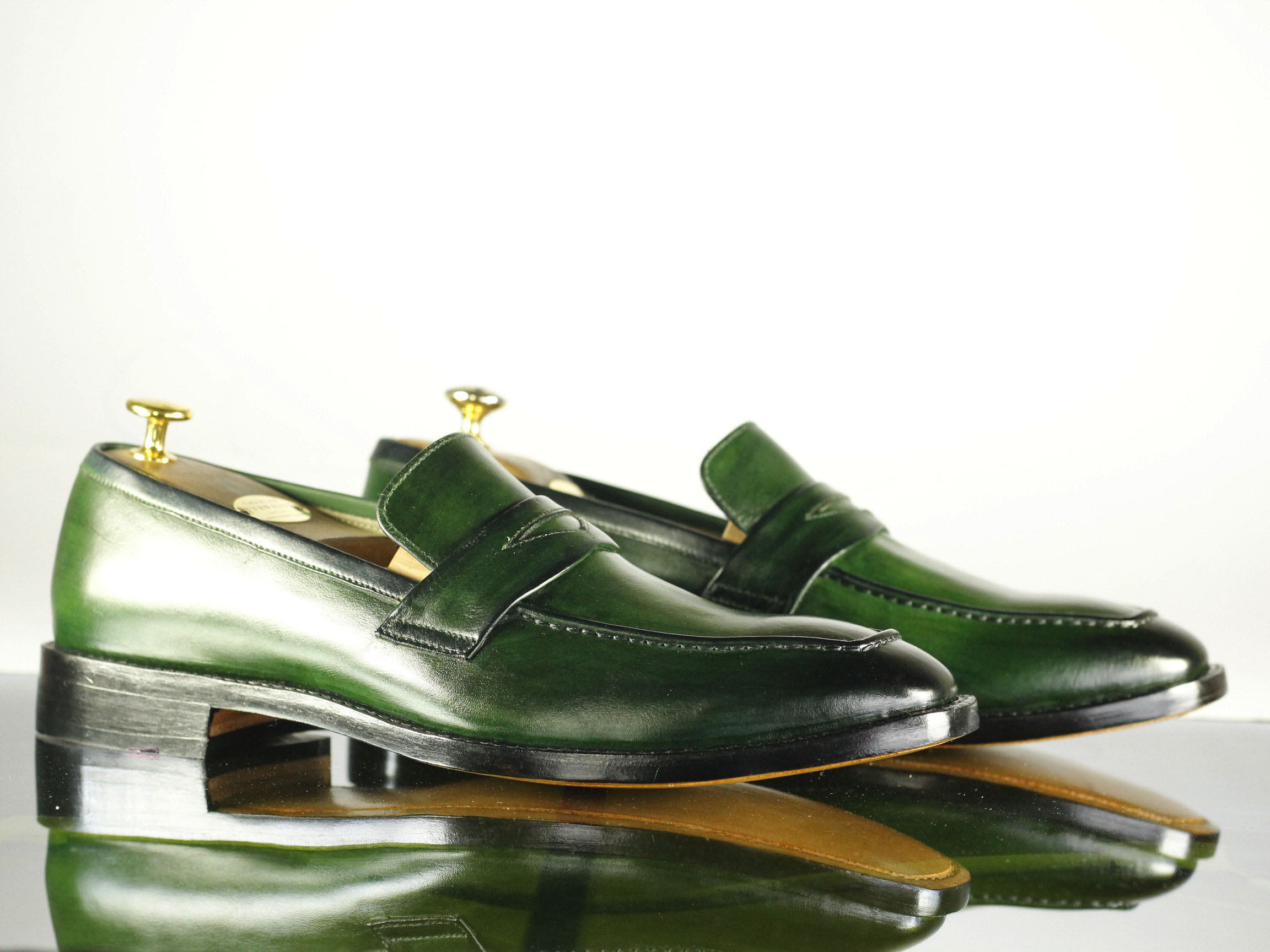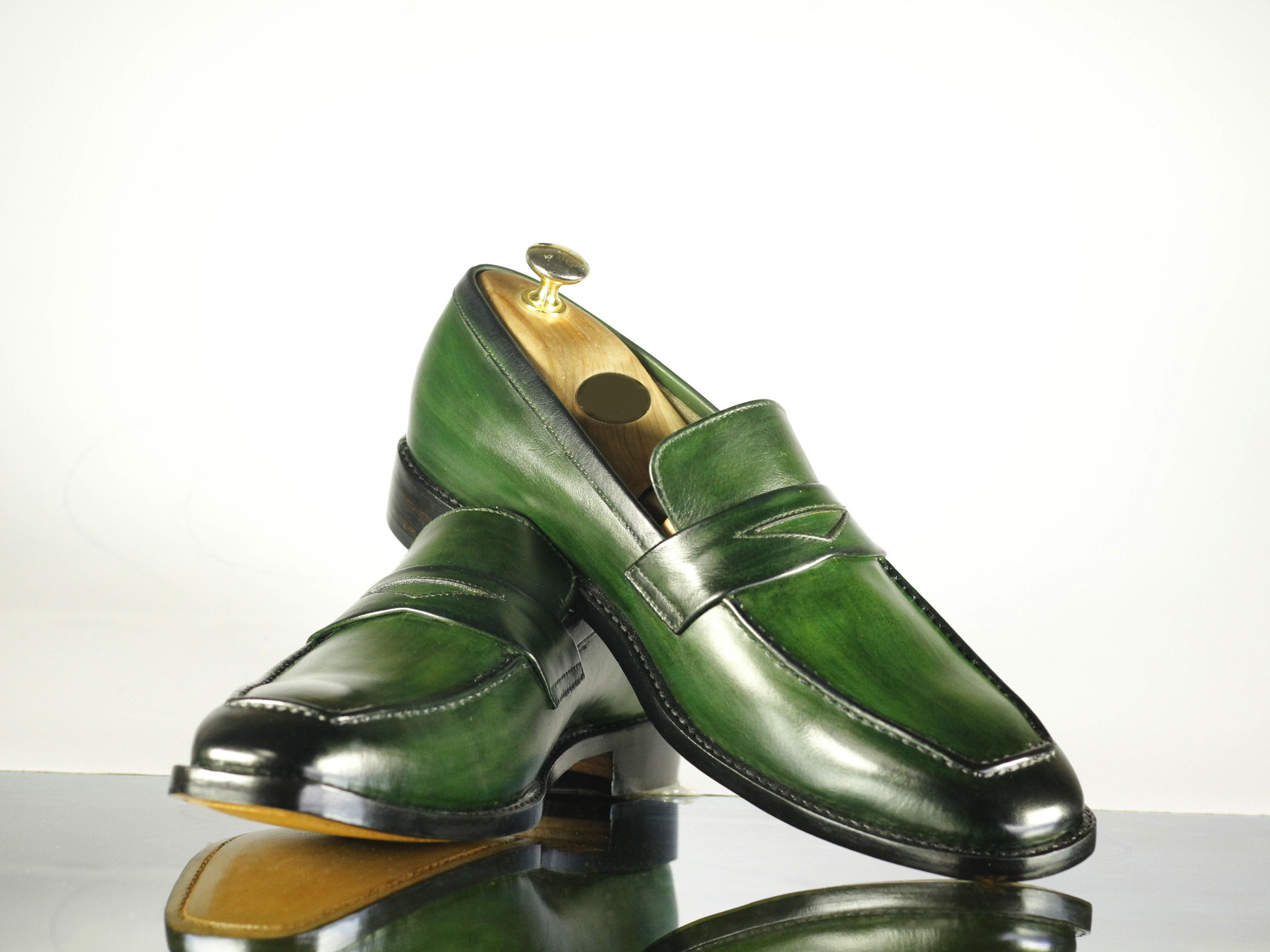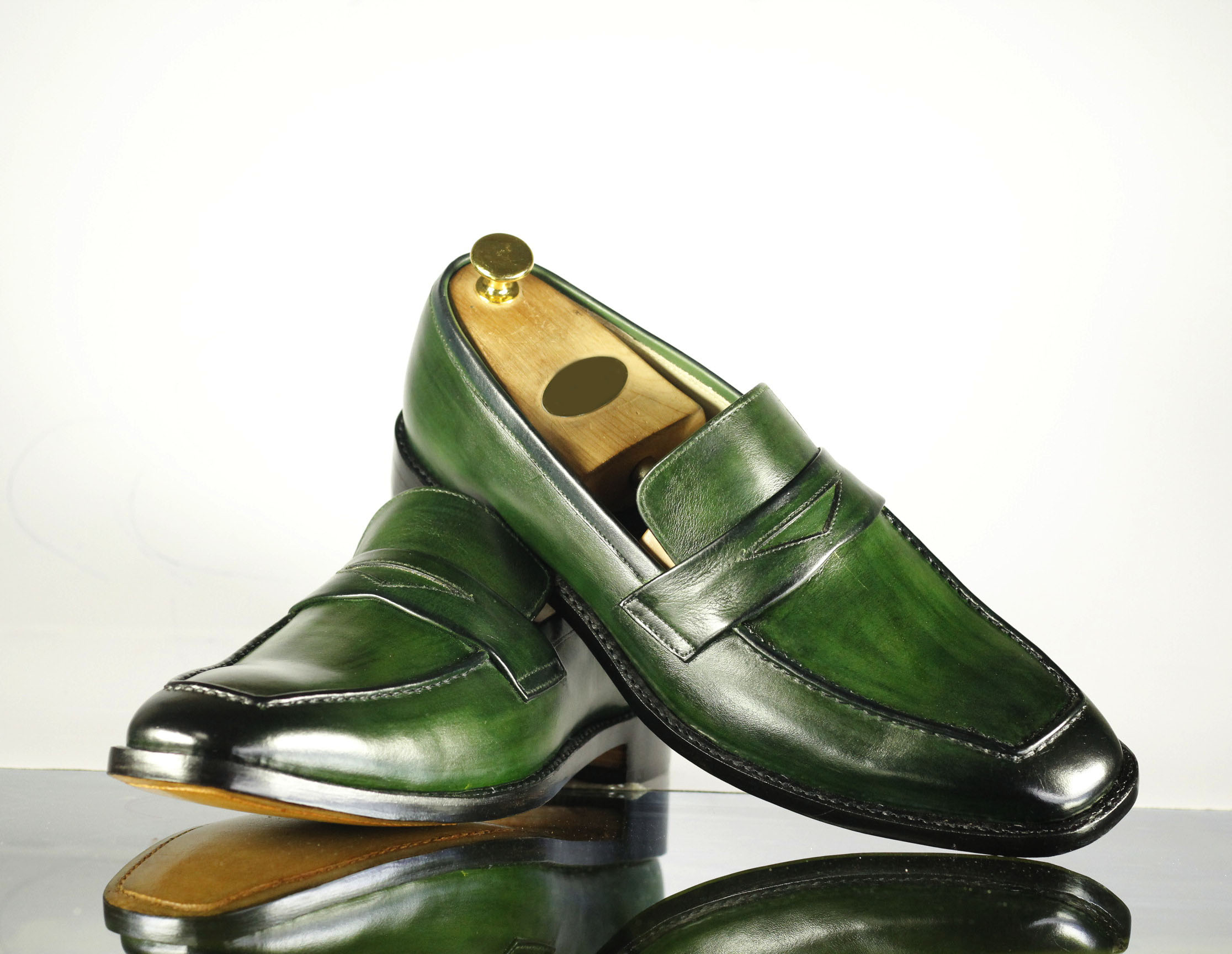 Square Toe Green Patent Leather Slip On Shoes