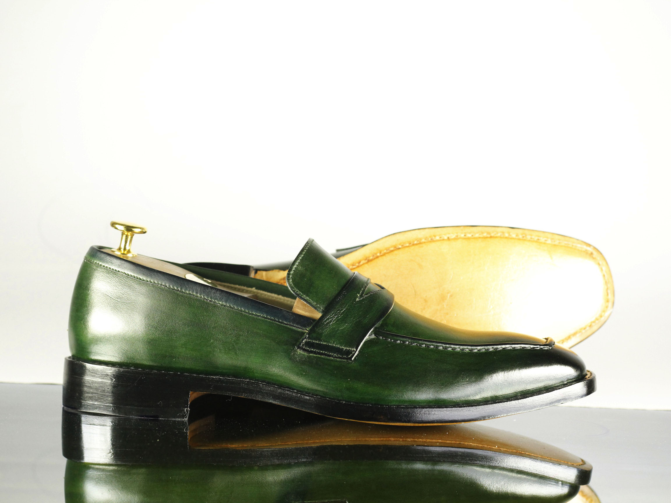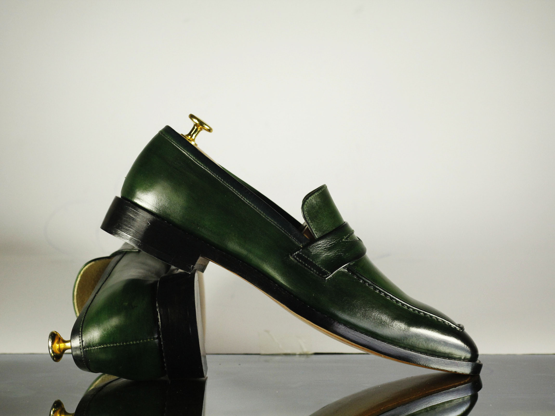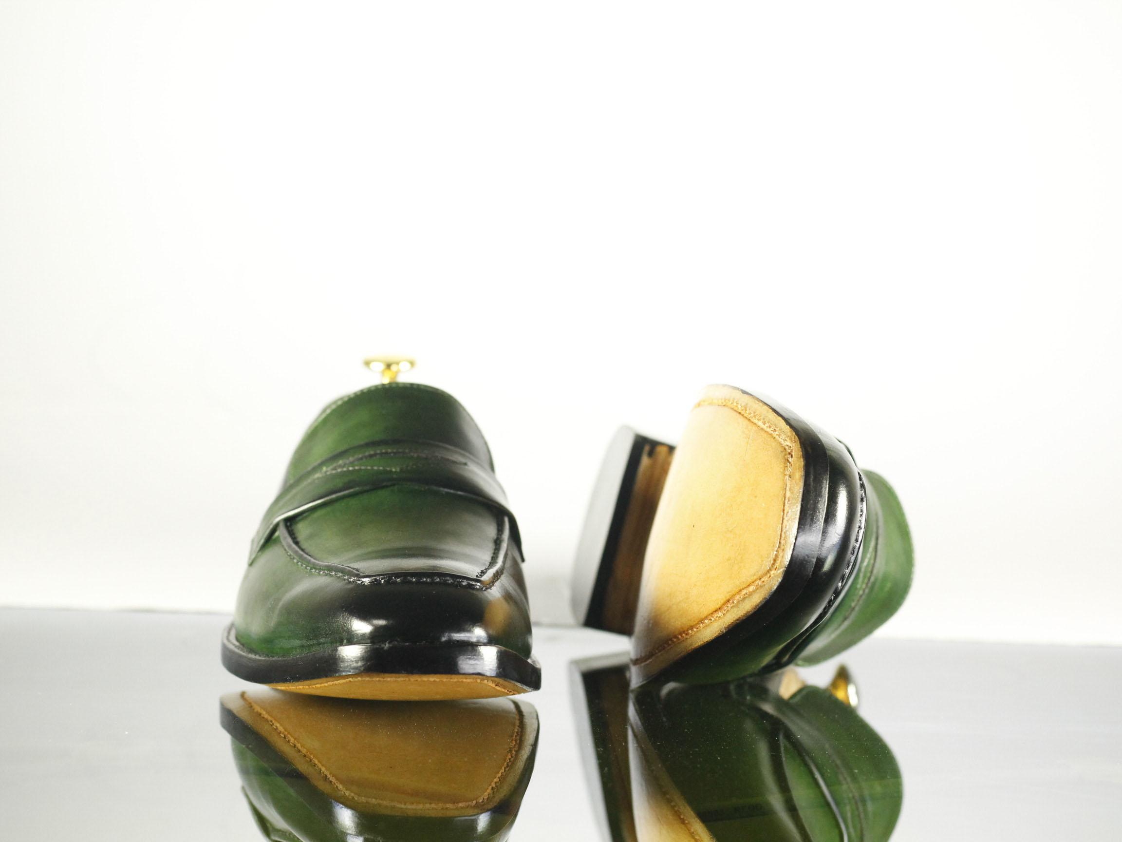 Square Toe Green Patent Leather Slip On Shoes
