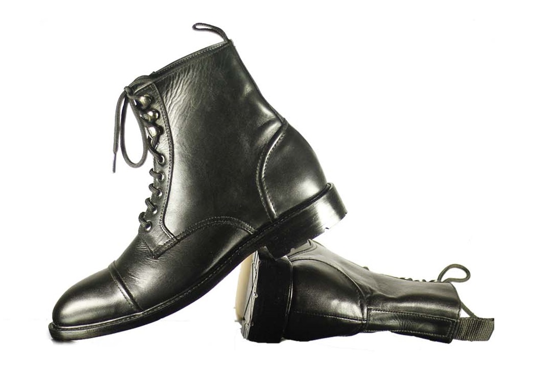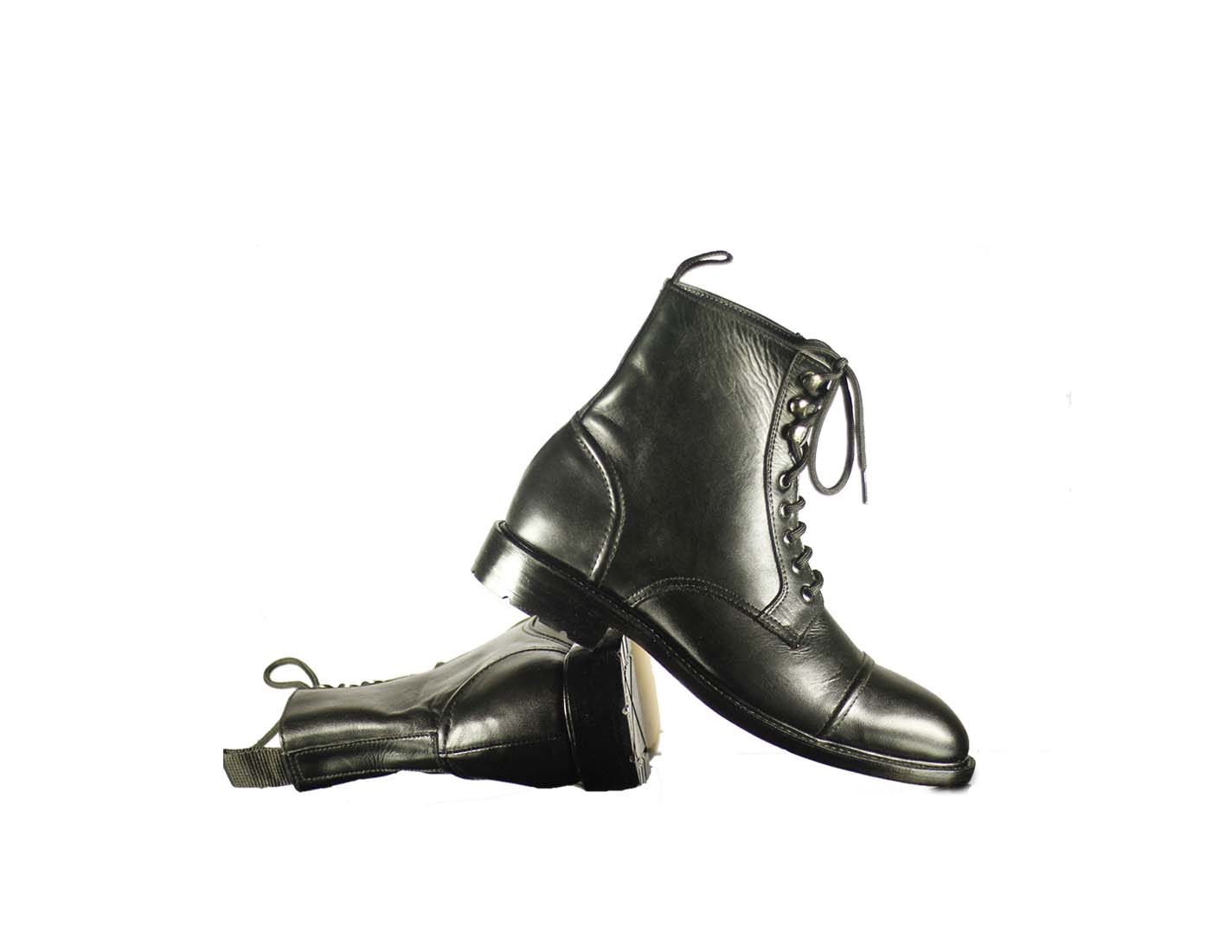 Cap Toe Lace Up Black Leather Ankle High Boot