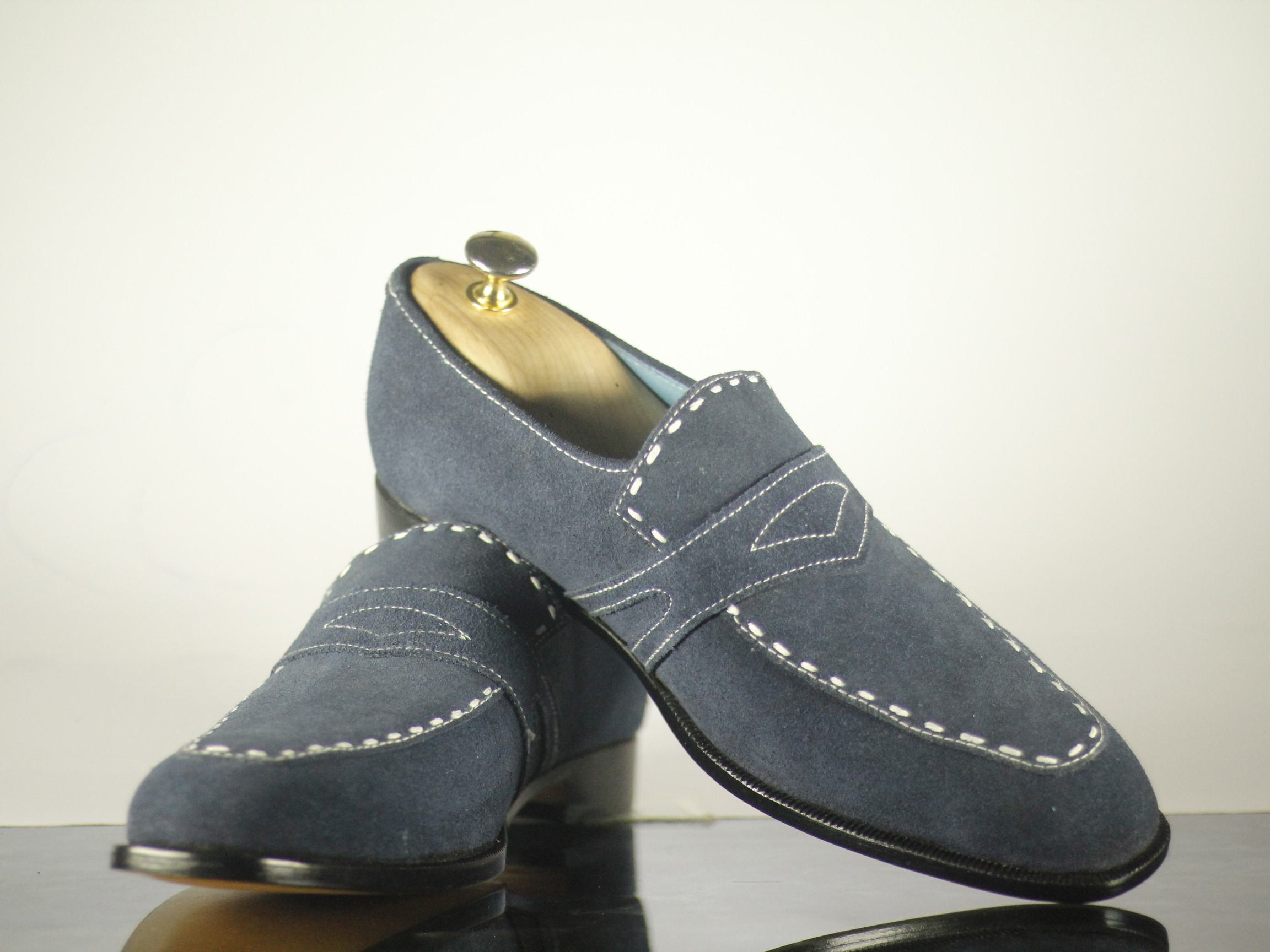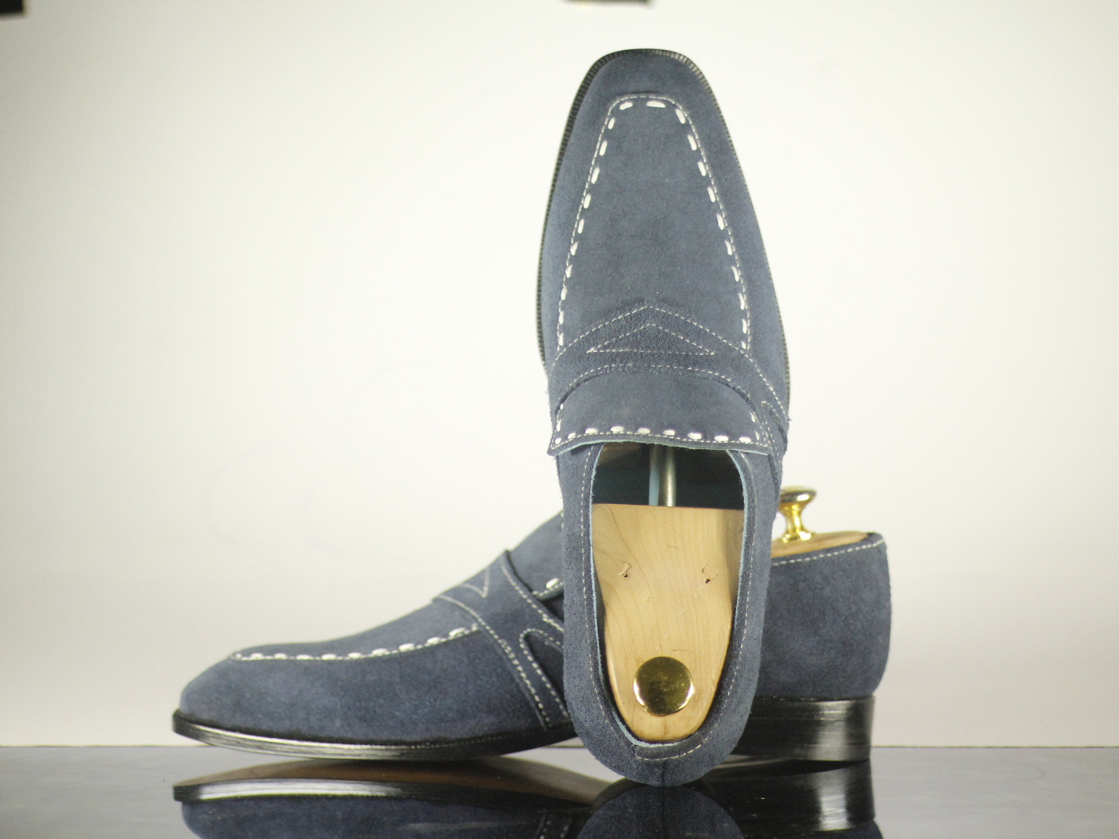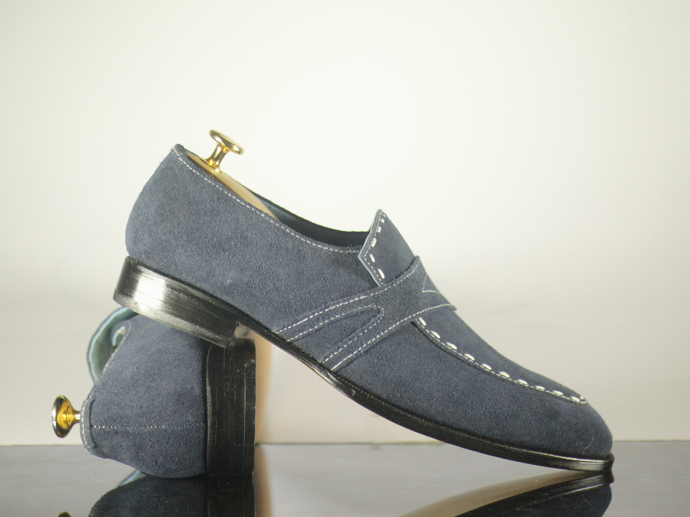 Gray Slip On Suede Round Toe Leather Loafers For Men