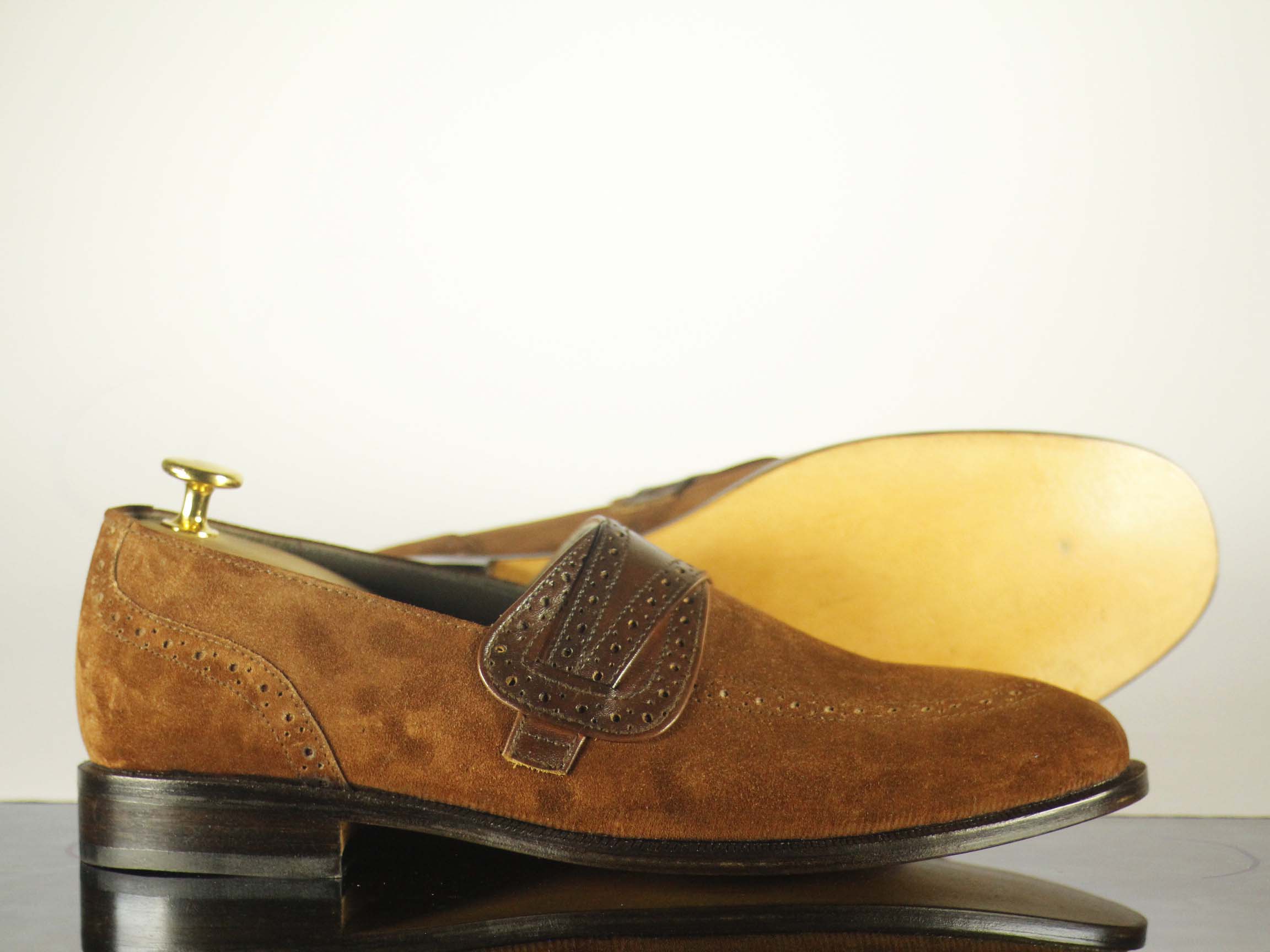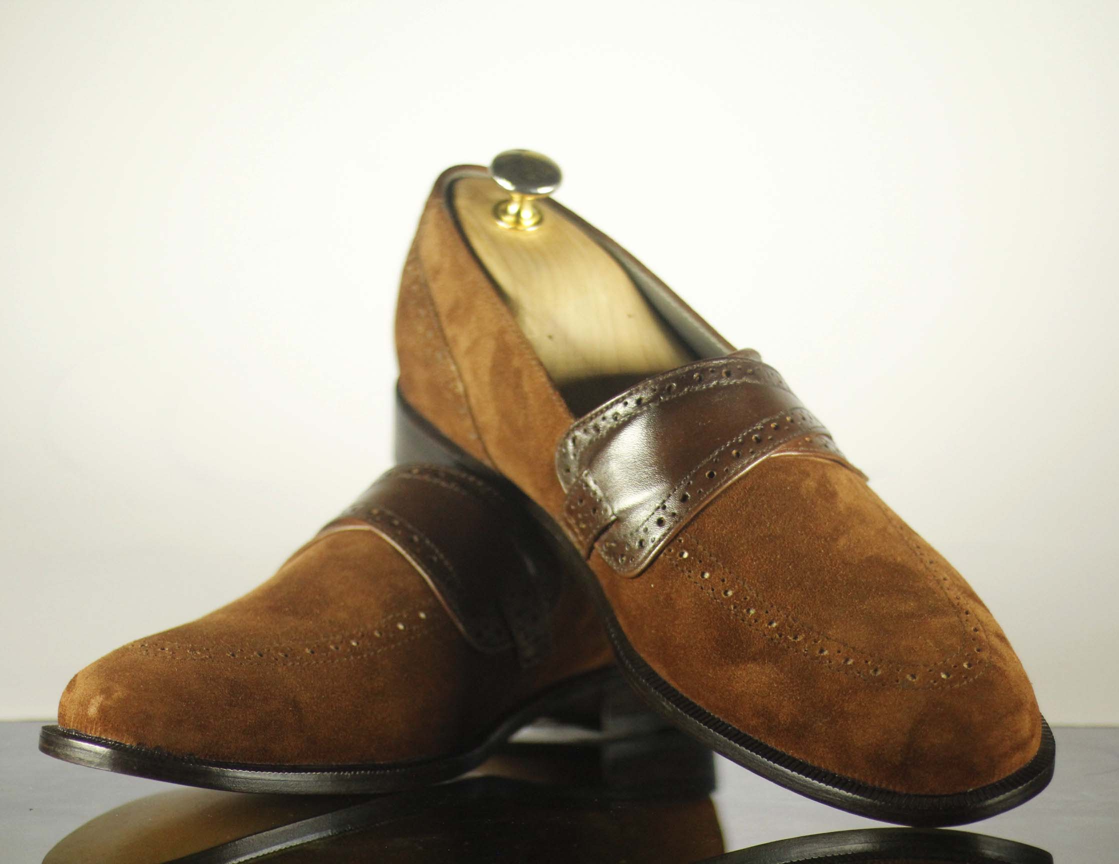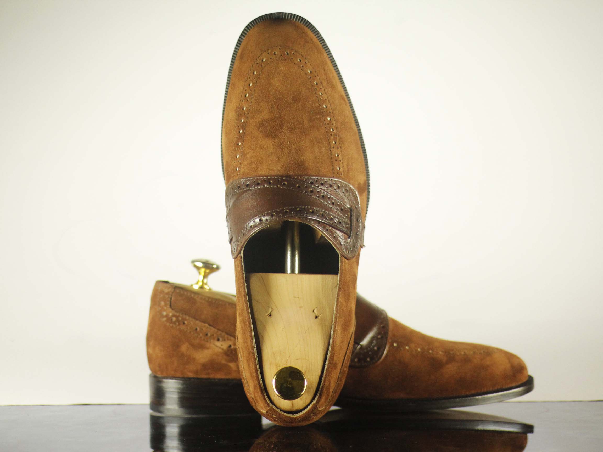 Hand Painted Tan Suede Slip On Men's Leather Loafers