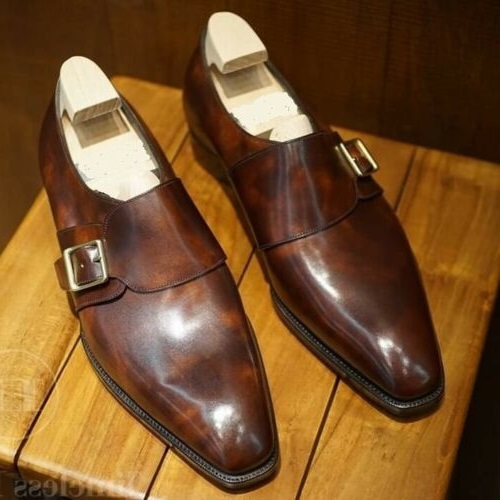 Stylish Hand Painted Cordovan Monk Strap Leather Shoes