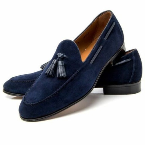 Designer Men's Foot Wear Navy Blue Tasseled Suede Leather Loafers
