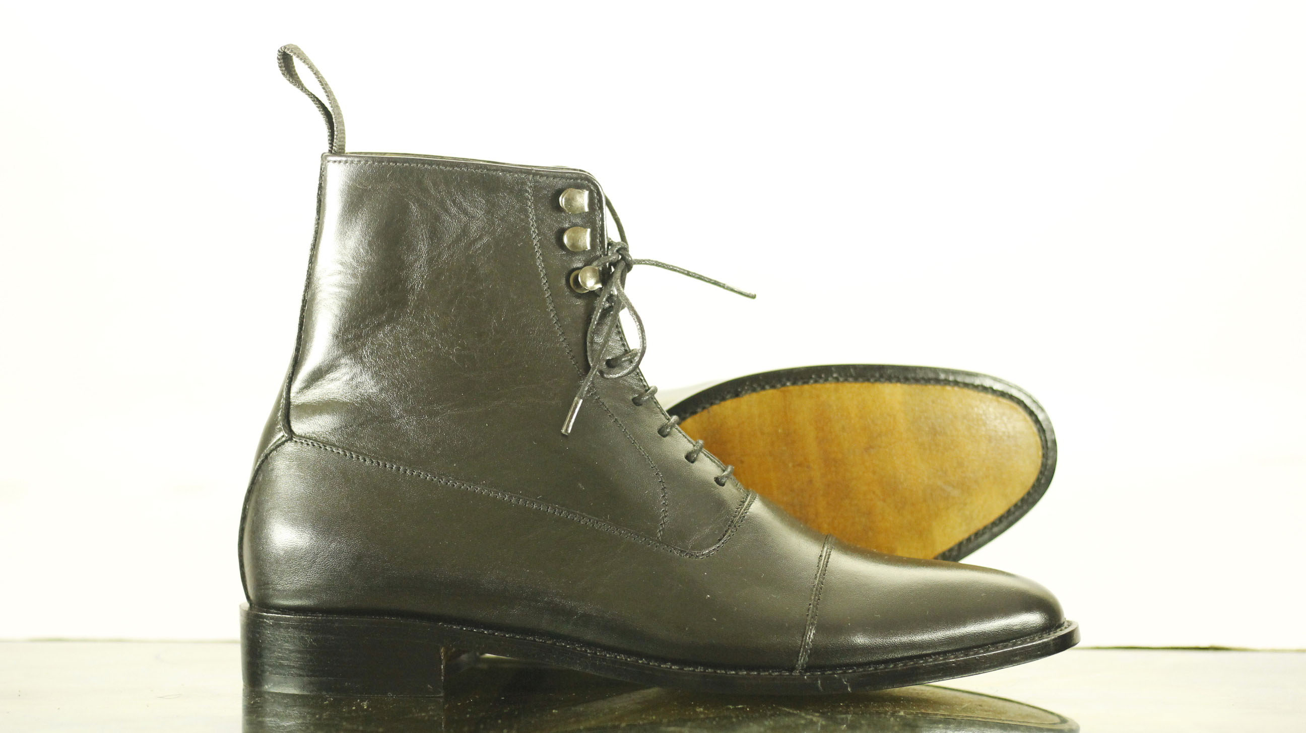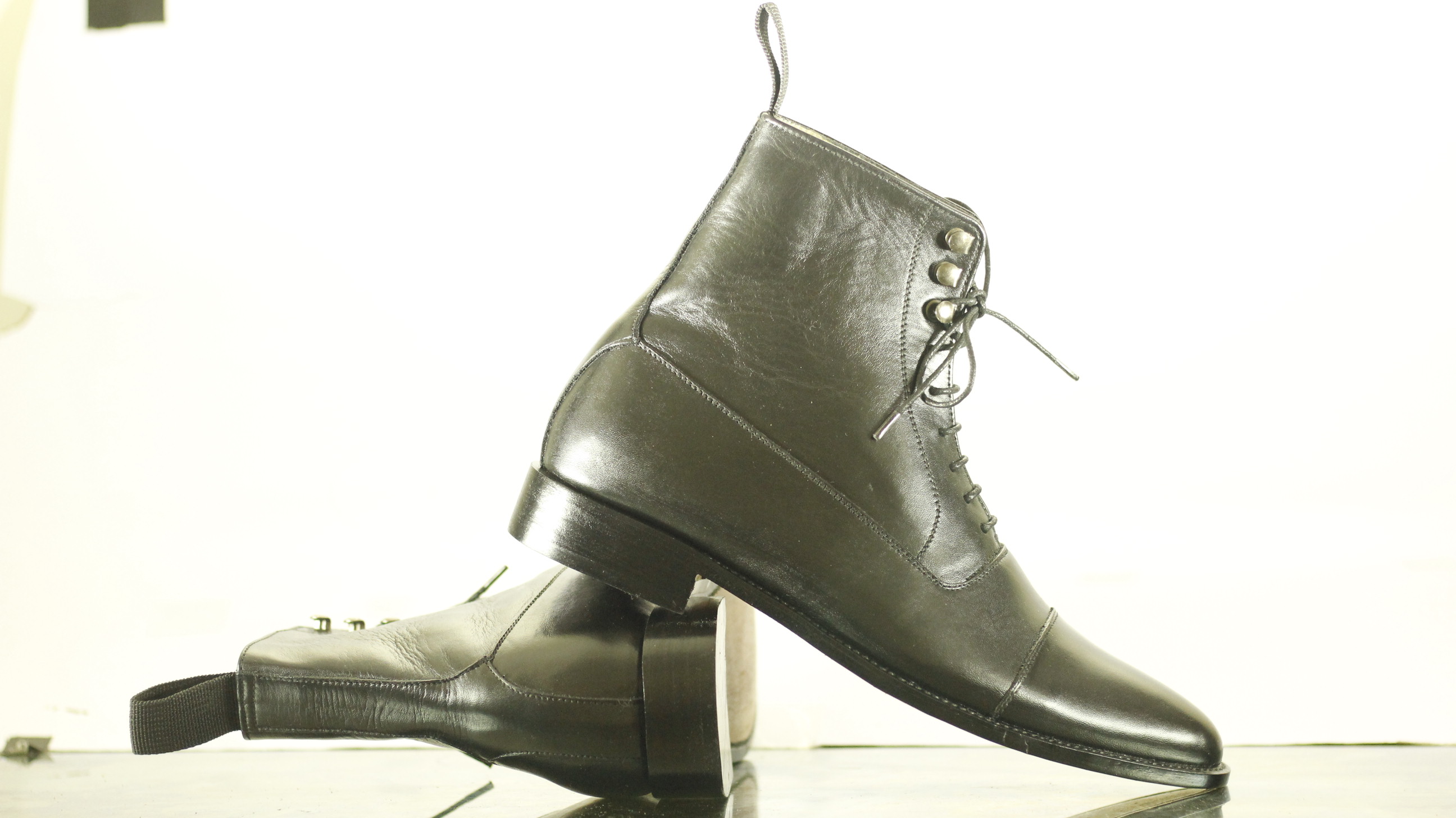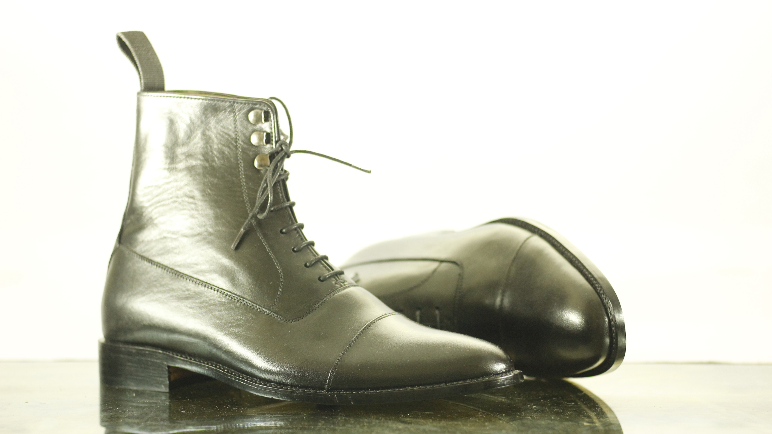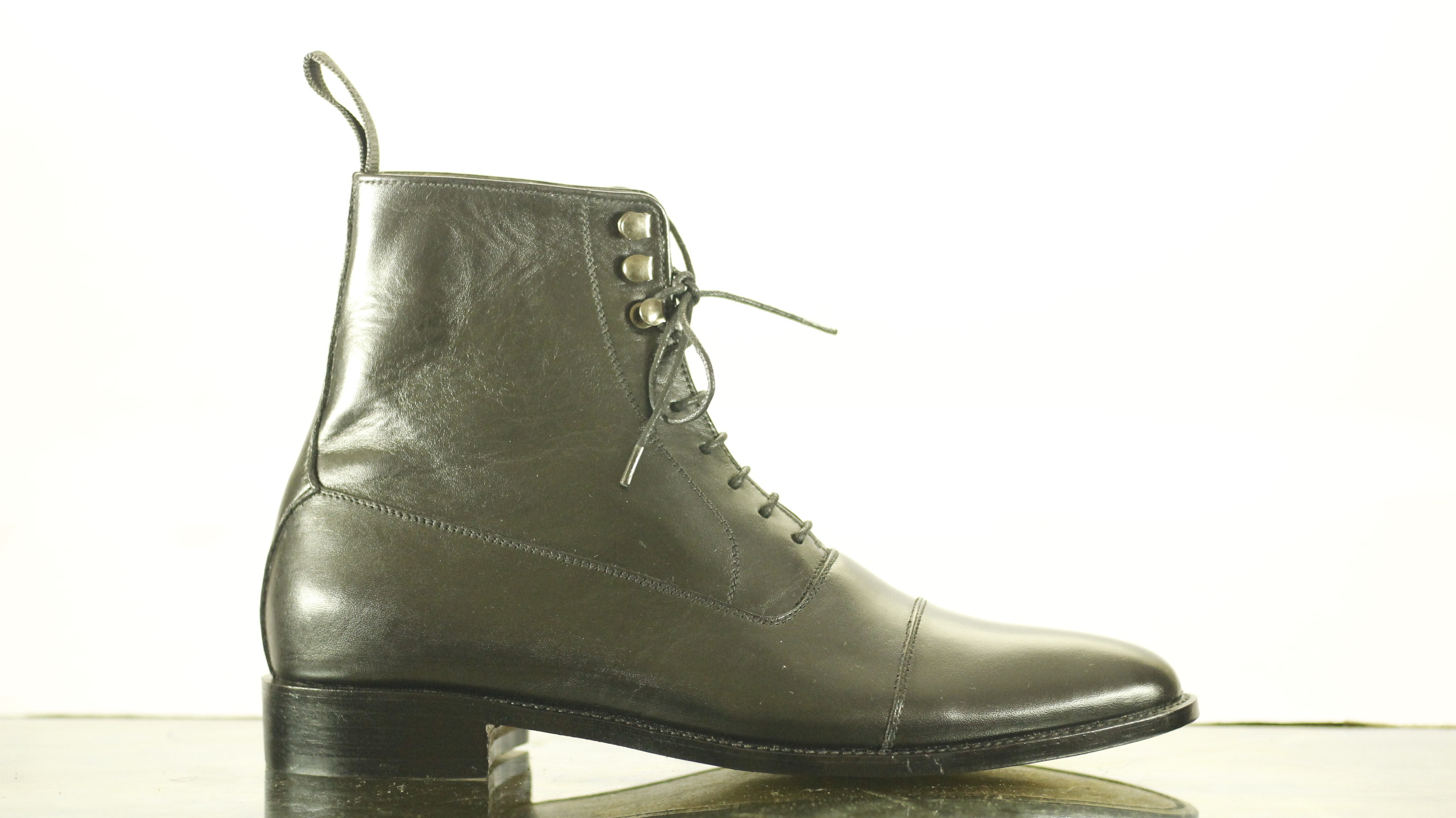 Olive Green Cap Toe Ankle High Lace UP Leather Men's Boot
