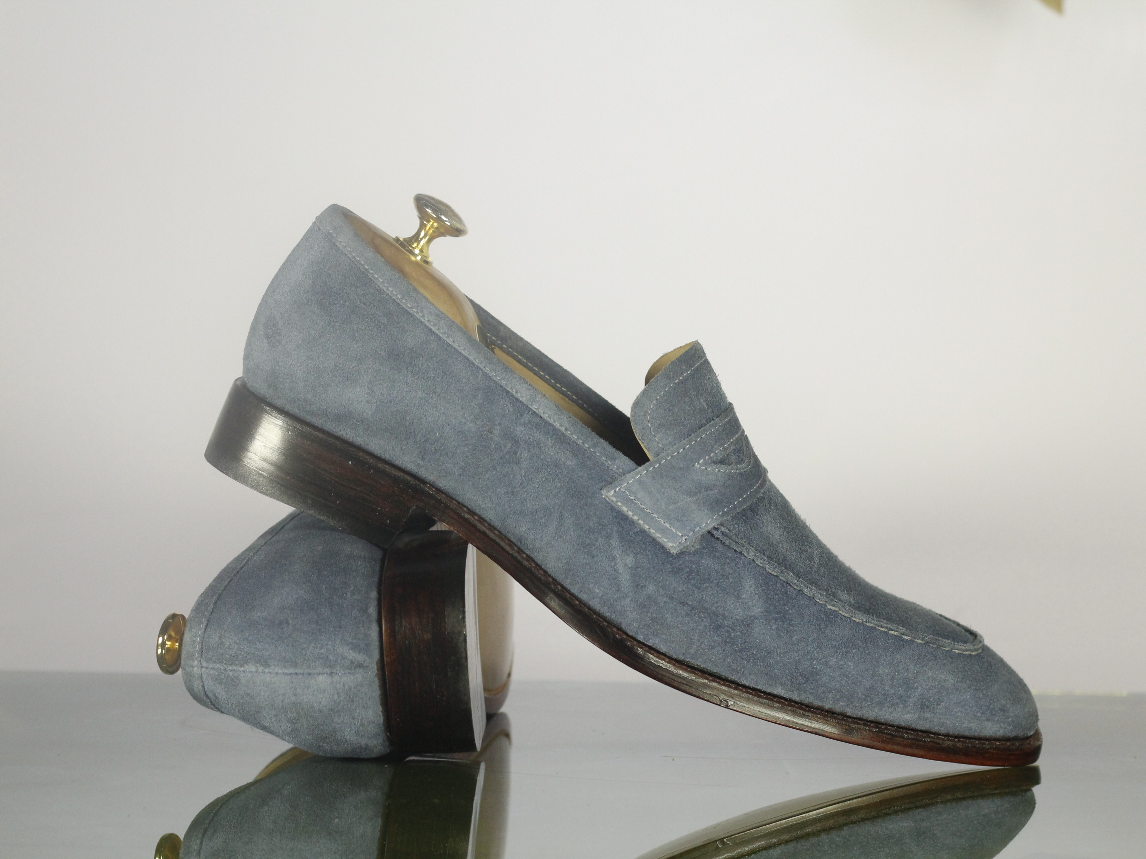 Oxford Classy Foot Wear Gray Leather Suede Slip On Loafers