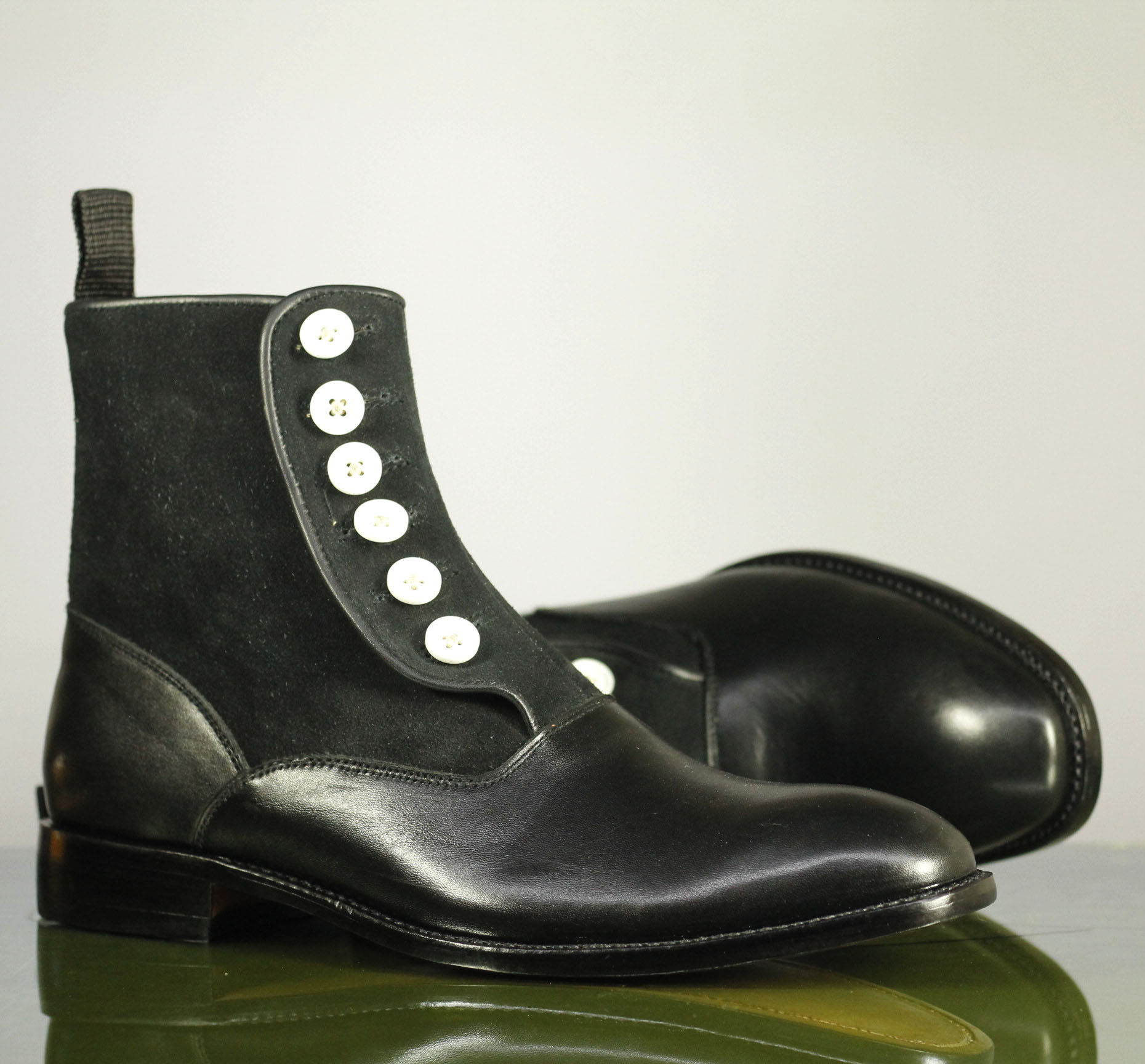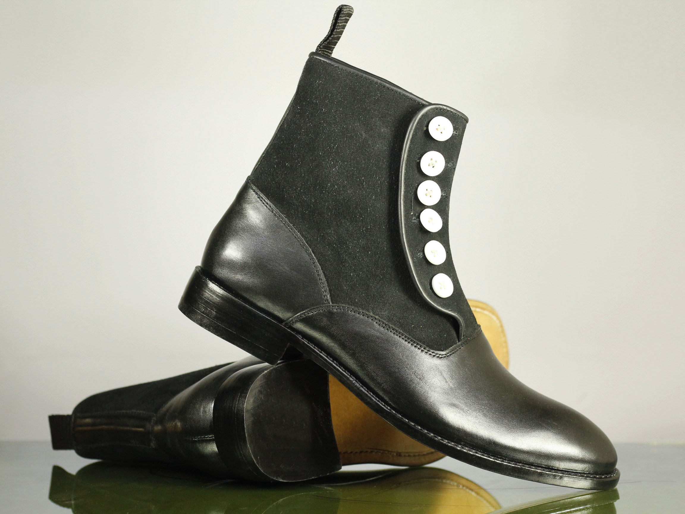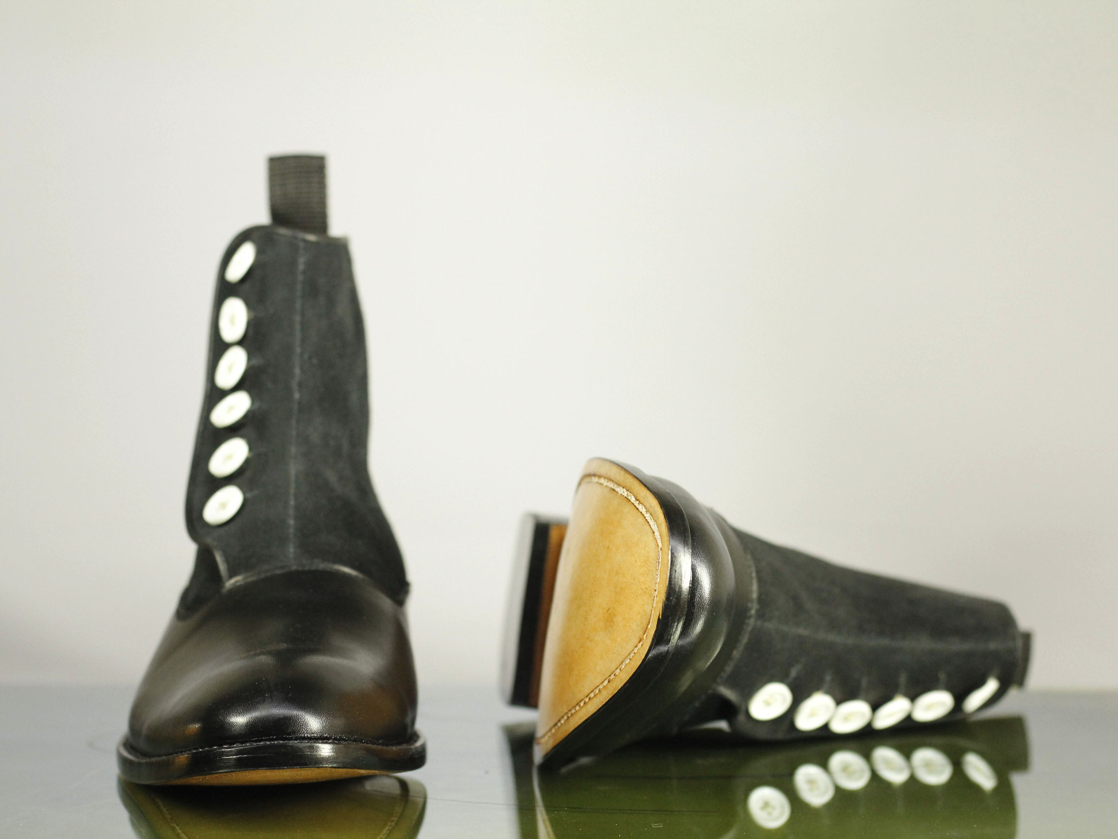 Button Top Classy Black Leather Suede Ankle High Boot For Men