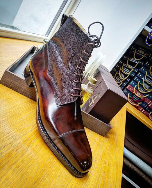 Oxford Cap Toe Lace Up Alligator Texture Leather Boot