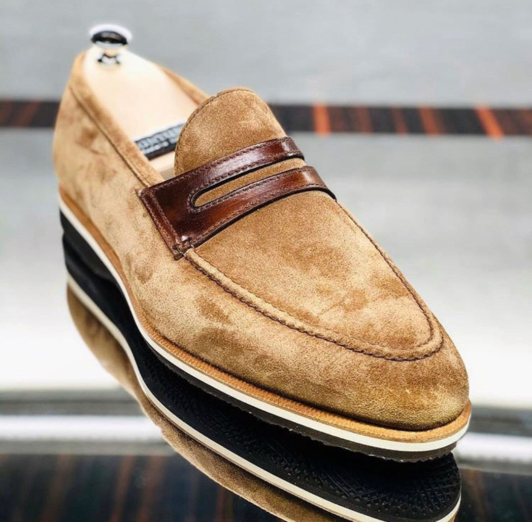 Men's Formal Foot Wear Beige Round Toe Suede Leather Slip On Loafers