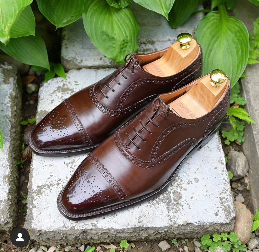 Lace Up Brogue Brown Hand Painted Cap Toe Leather Shoes