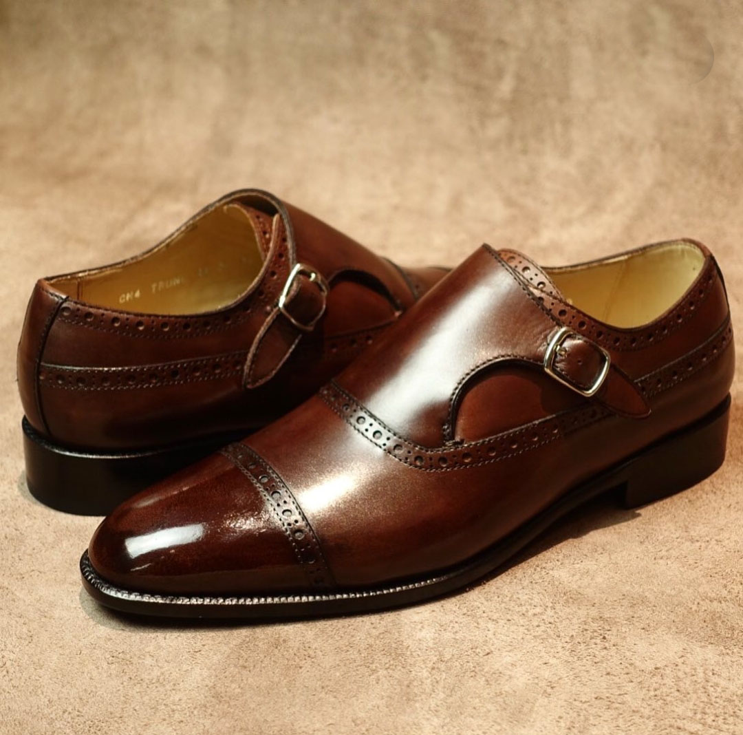 Classy Cordovan Cap Toe Buckle Strap Brogue Leather Shoes