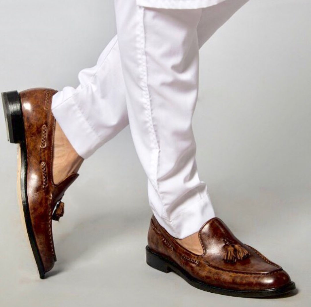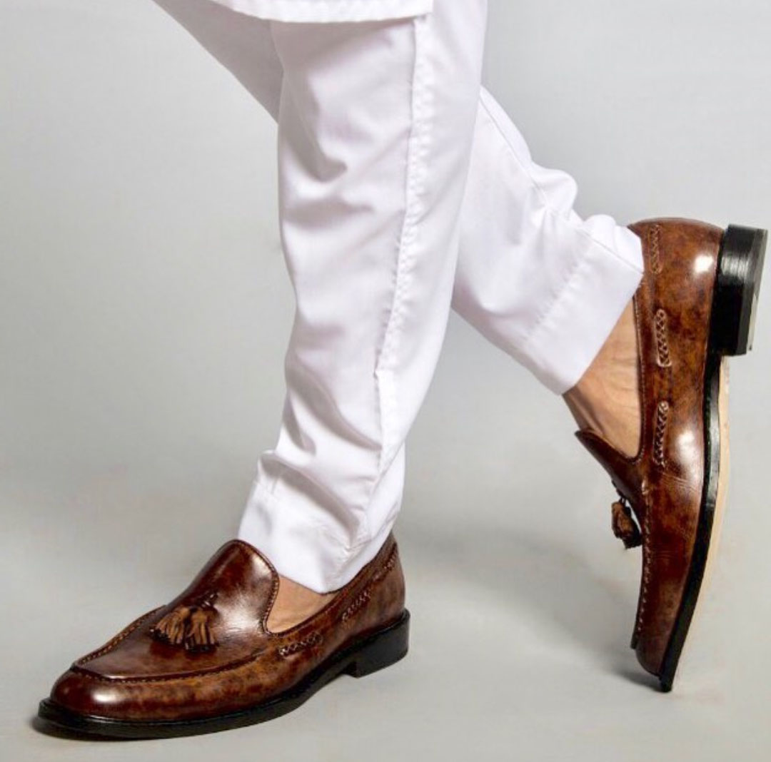 Vintage Brown Tasseled Square Toe Slip On Leather Loafers