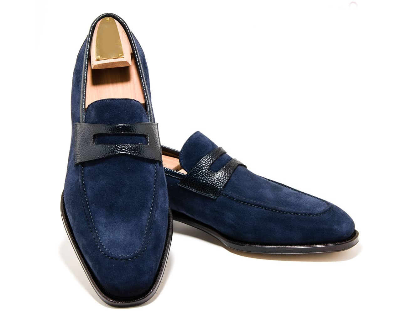 Slip On Moccasin Round Toe Blue Suede Leather Loafers