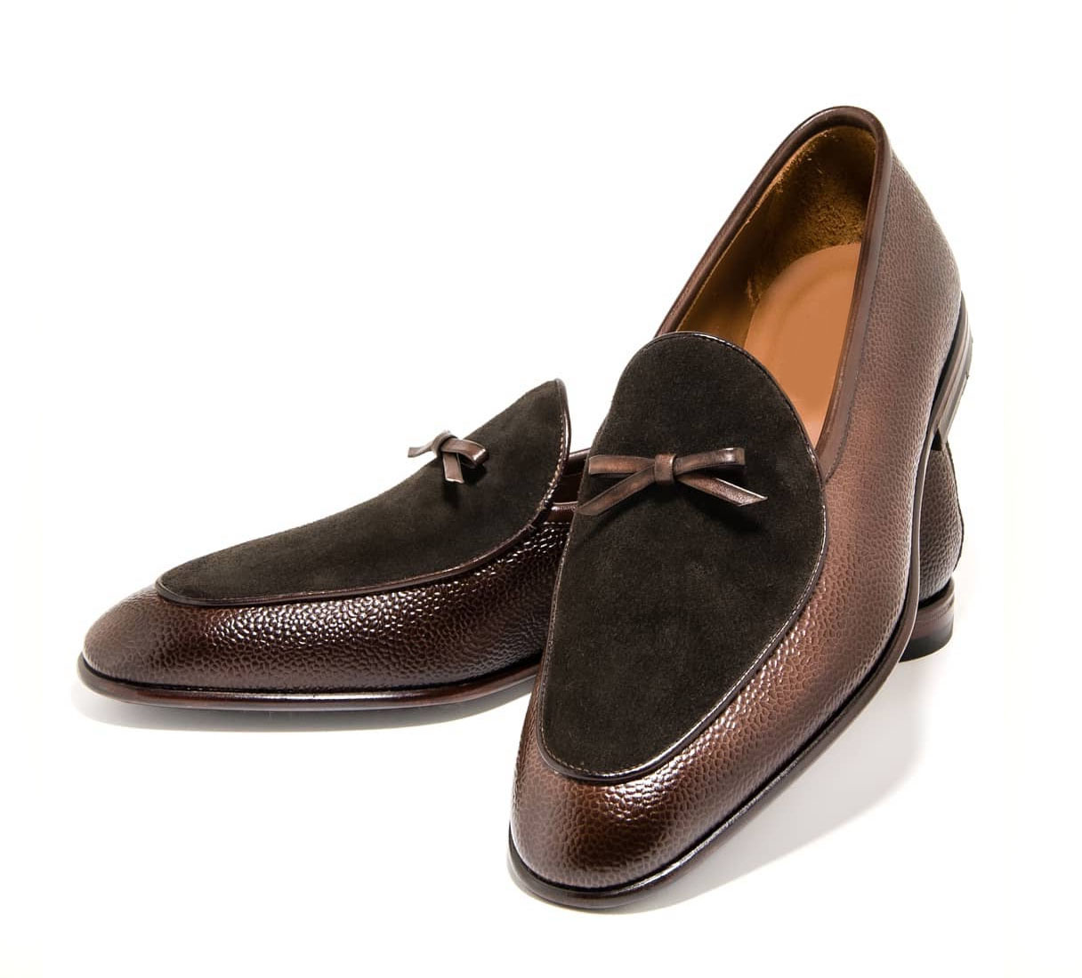 Attractive Cordovan Bow Style Slip On Leather Suede Loafers