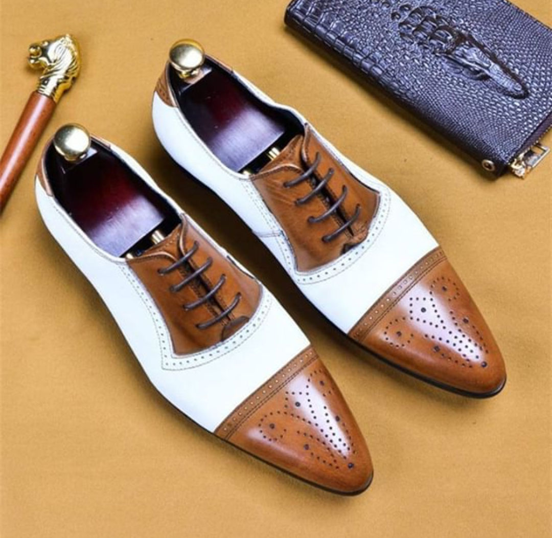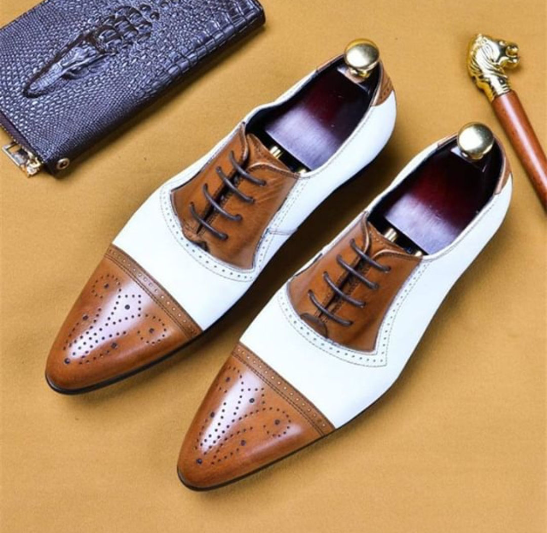 Cap Toe Two Tone Brown & White Lace Up Leather Shoes